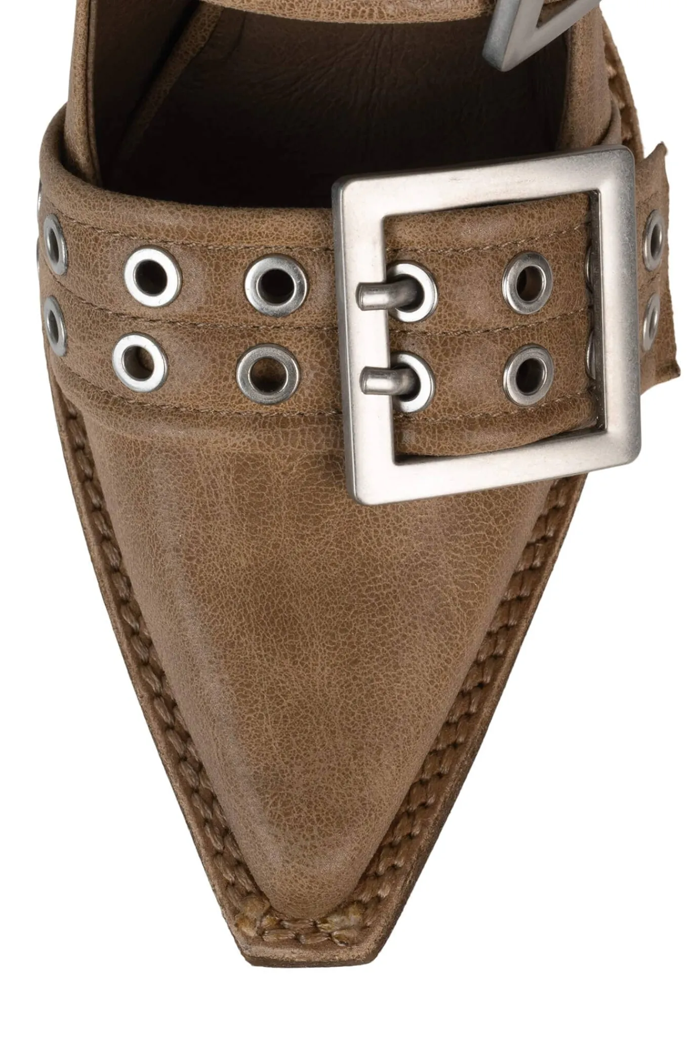 Western-inspired slingback pump with oversized buckles Fits true to sizeMeasurements taken from a size 7 3.5″ Heel, 0….