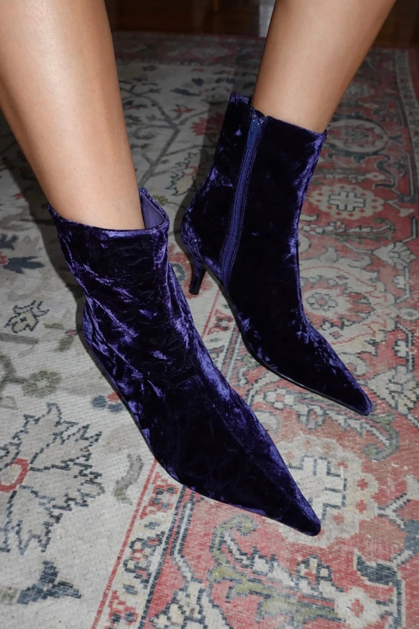 Pointed-toe velvet heel boot