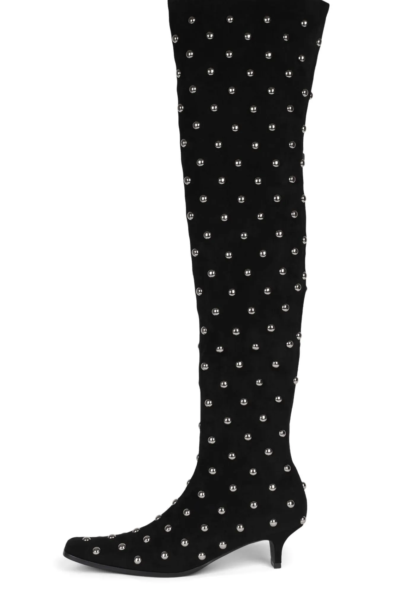 Over-the-knee kitten heel boot with pearl detailing