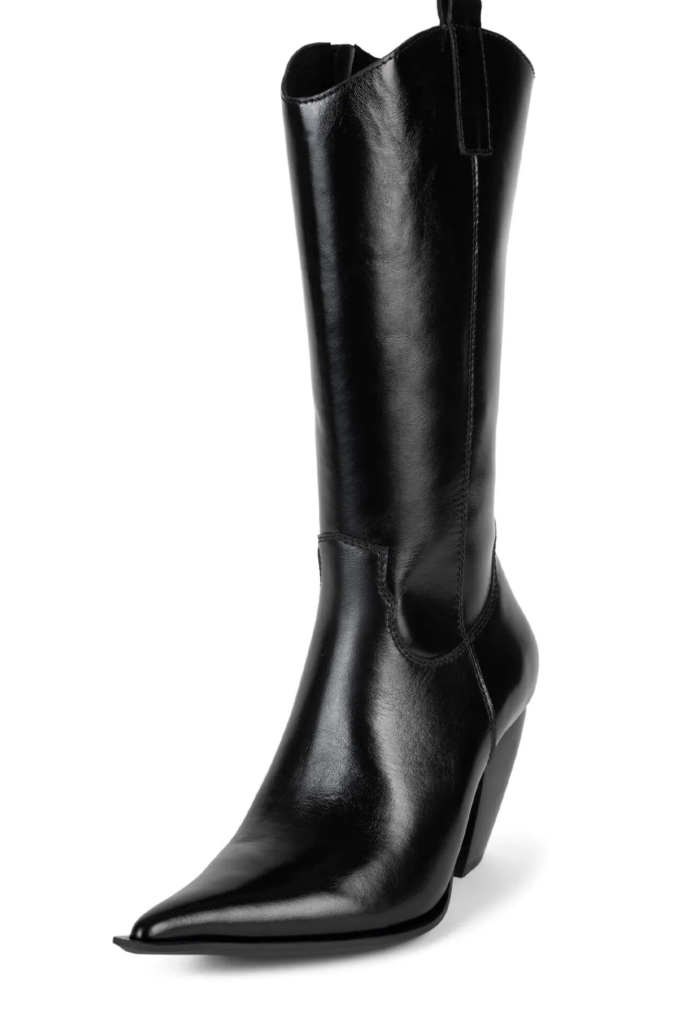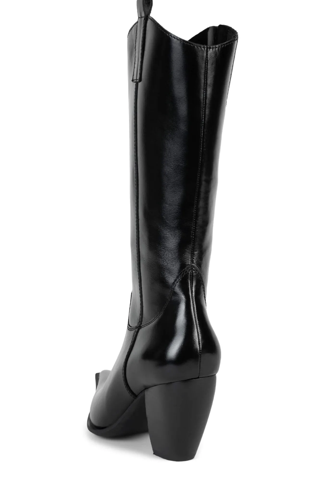 Knee-high western pointed-toe heeled bootFits true to sizeMeasurements taken from a size 7 3″ Heel, 0.25″ Platform11″ S…