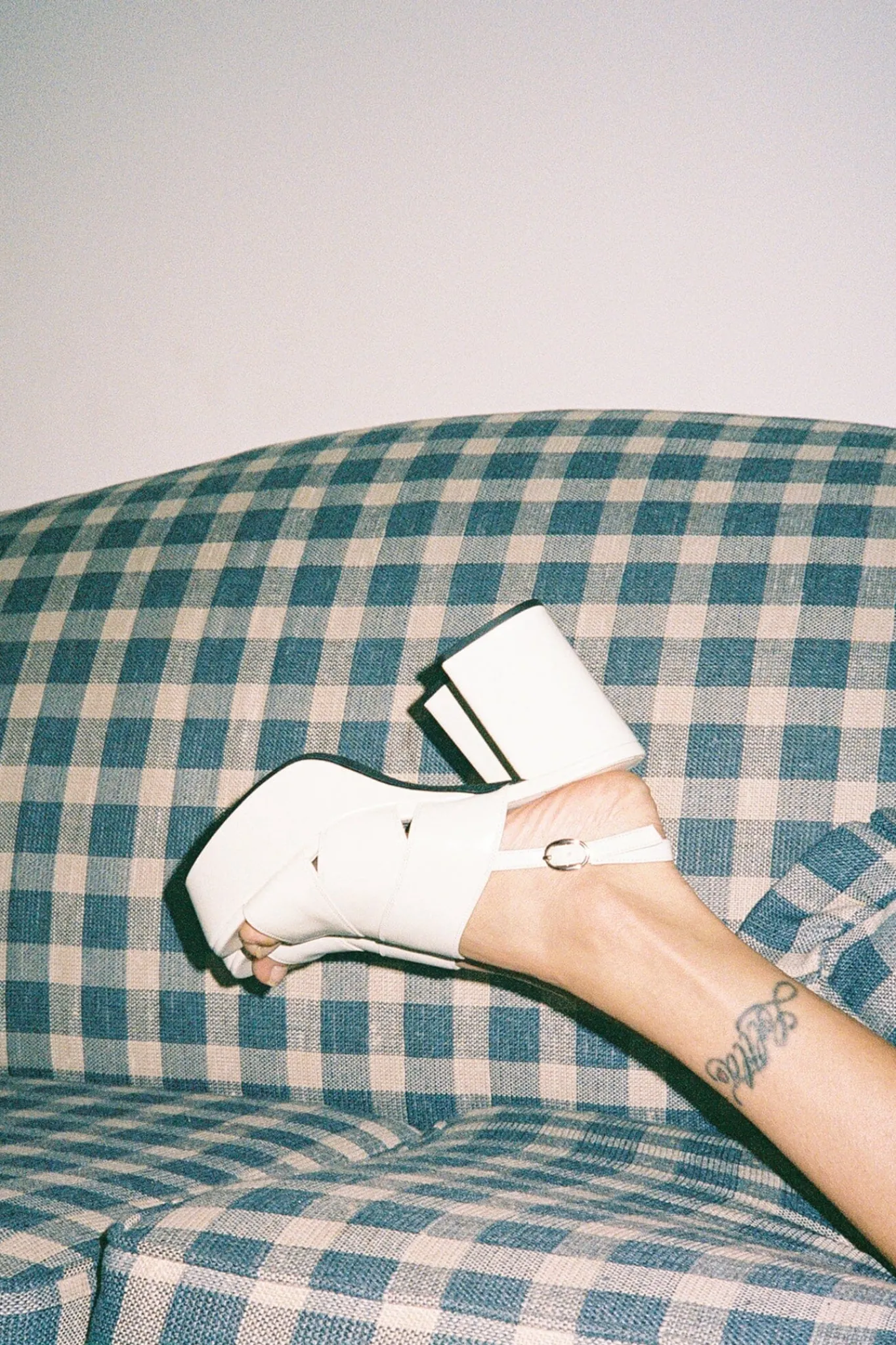 Peep-toe slingback wooden platform Fits true to sizeMeasurements taken from size 7 3.5″ Heel, 1.75″ PlatformLeather/ S…
