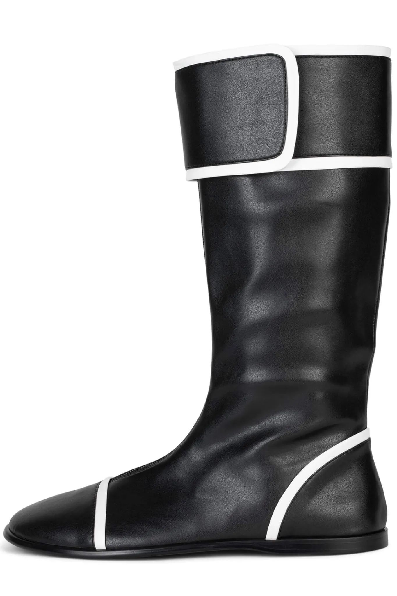 Mid-calf boxing-inspired boots Fits true to sizeMeasurements taken from a size 7 0.5″ Heel, 0.25″ Platform12″ Shaft, 1…