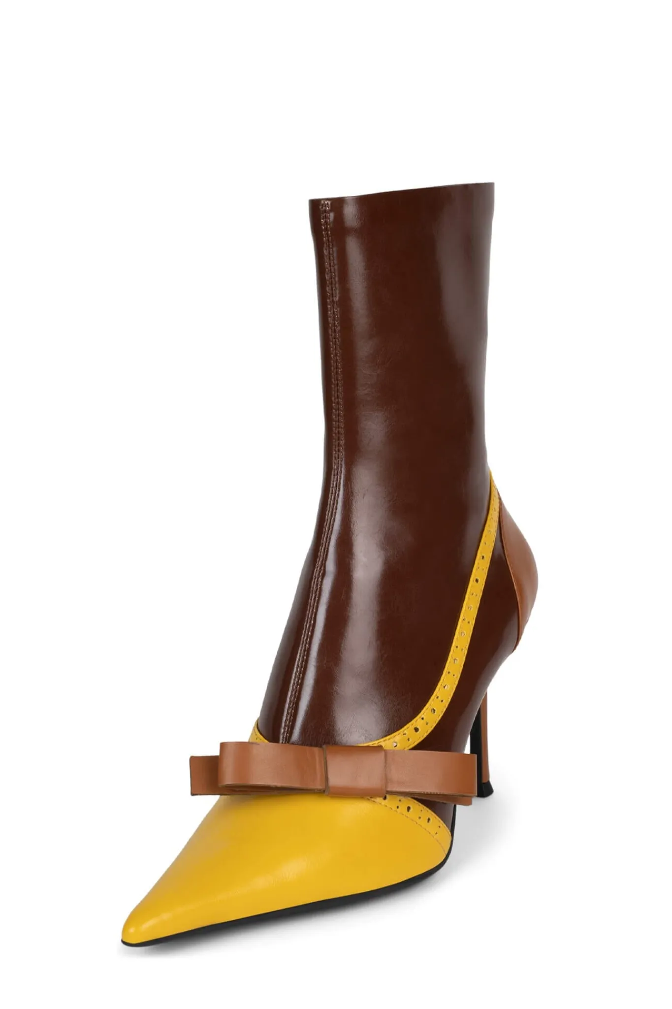 Color-blocked pointed-toe stiletto boot with bow detail