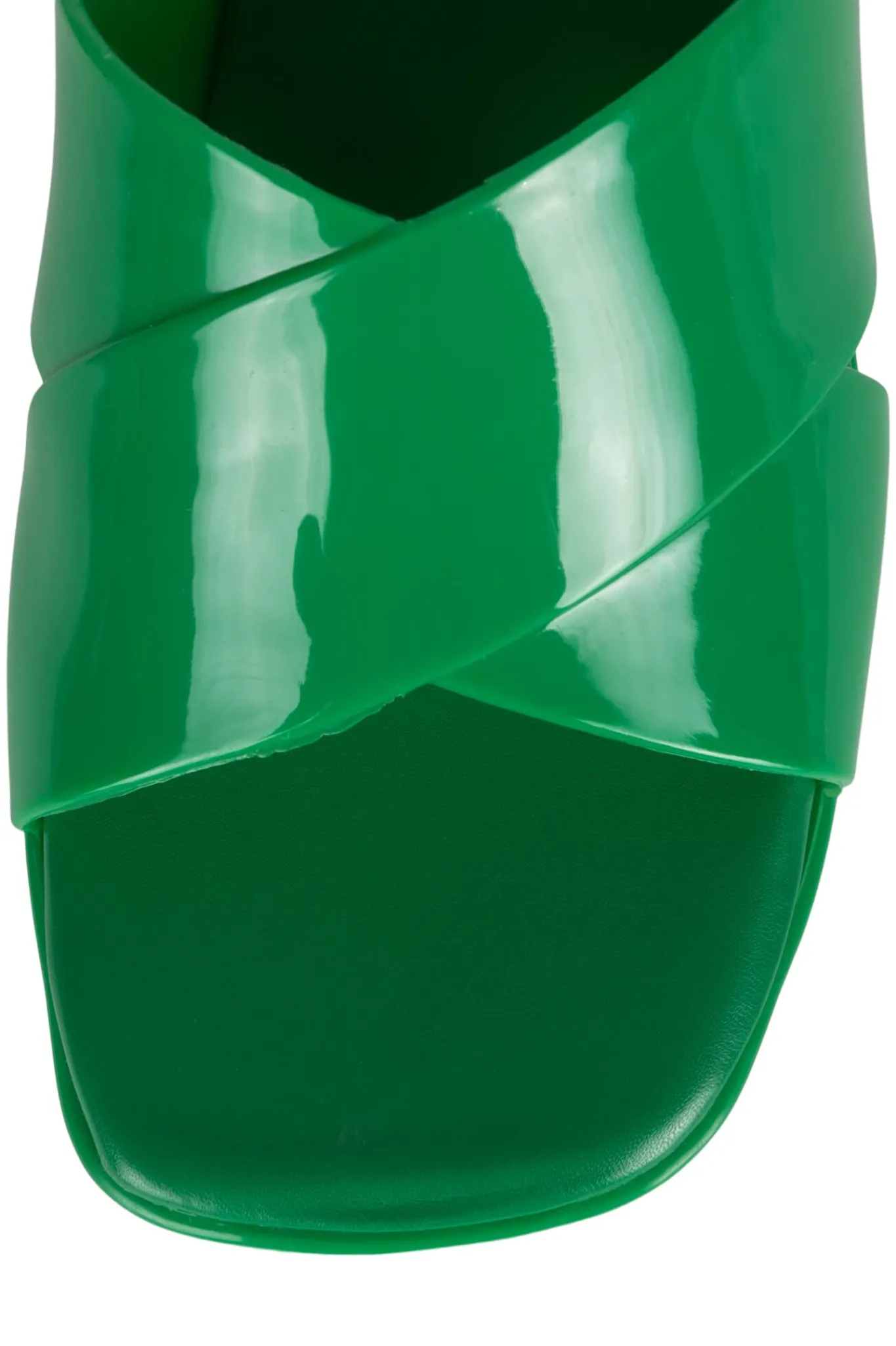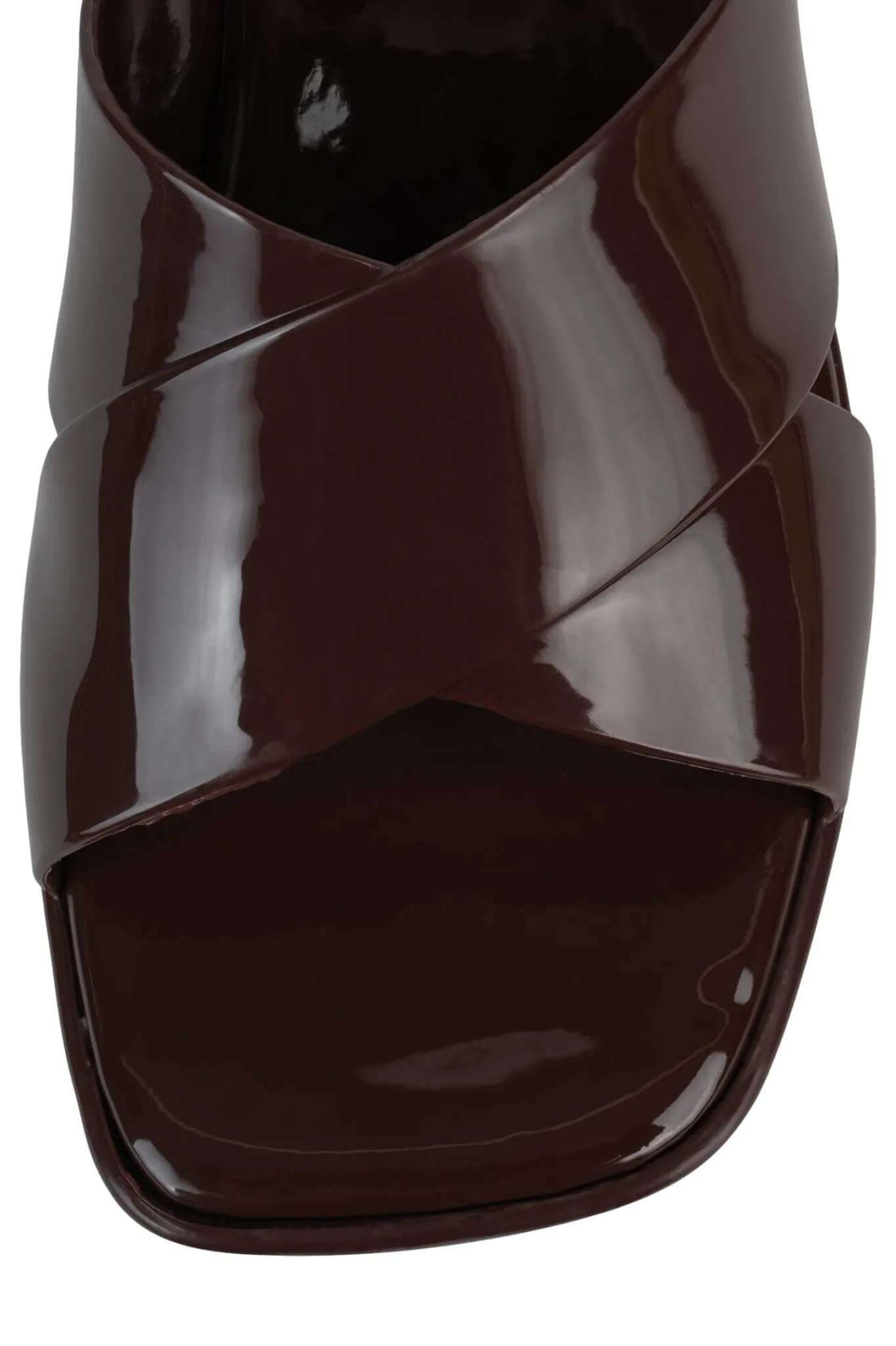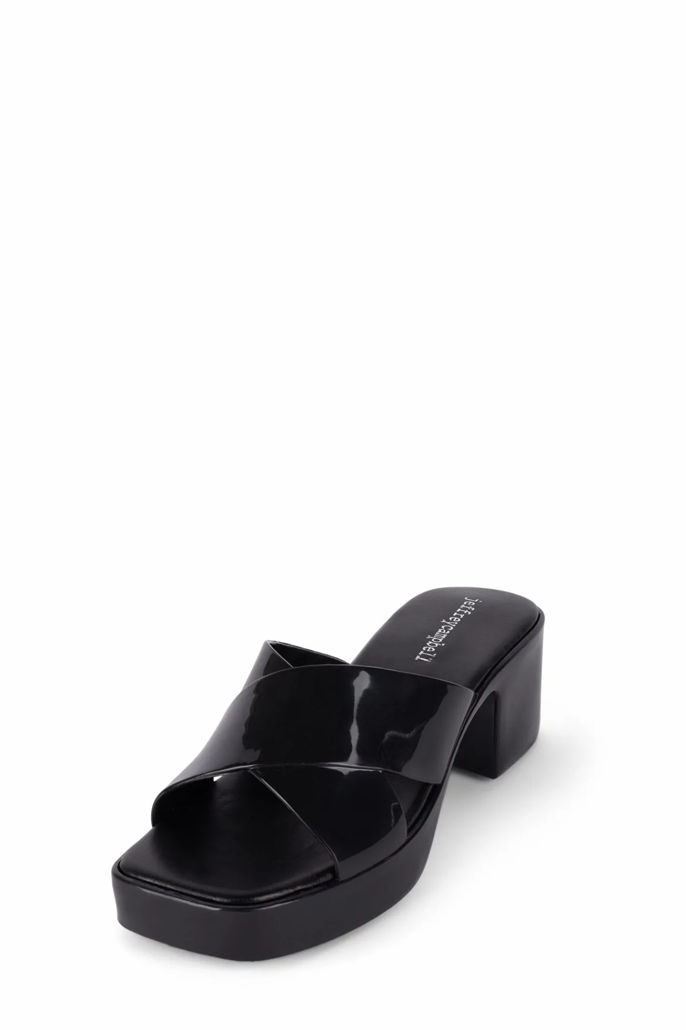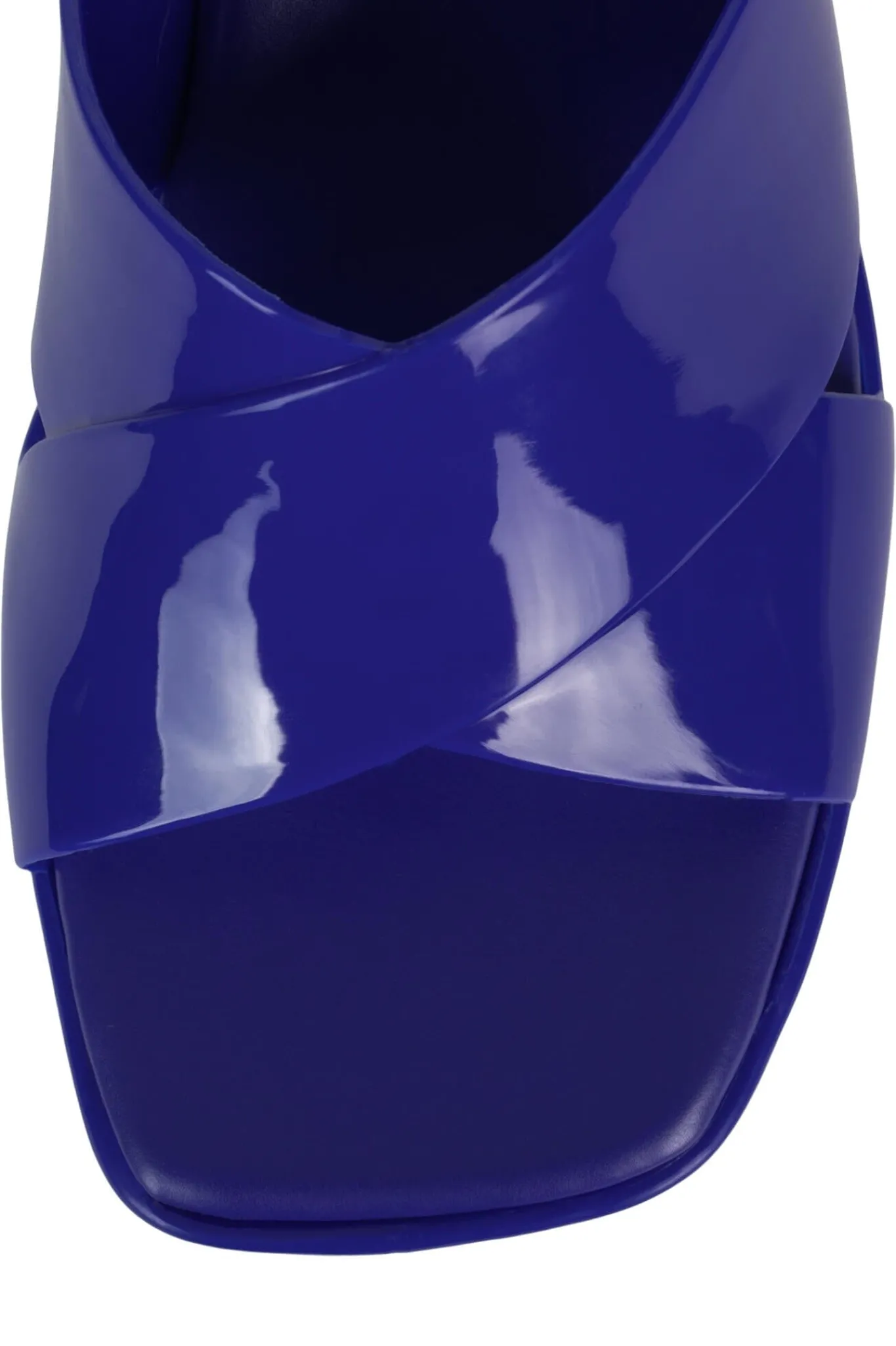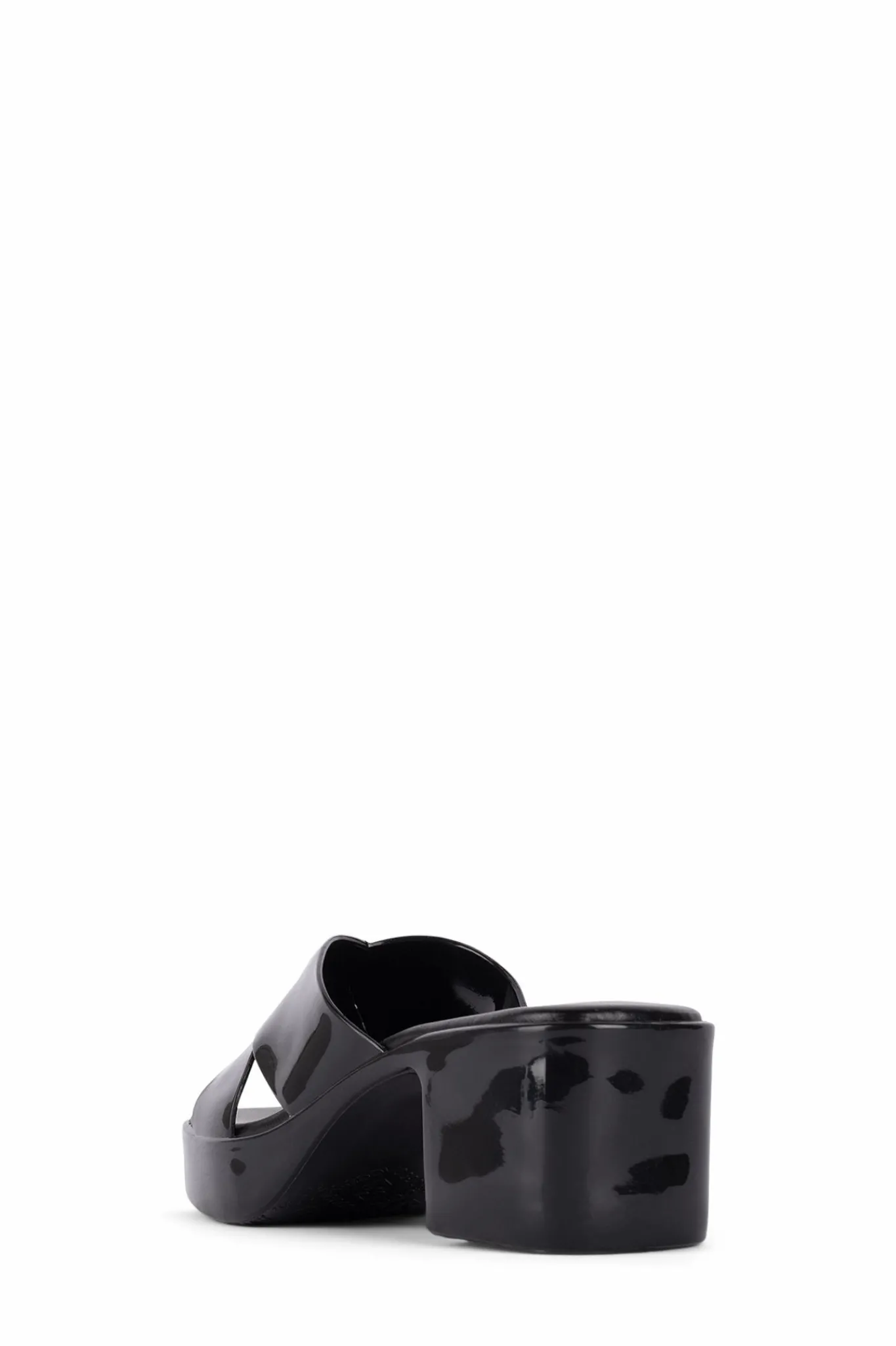 Square toe platform jelly sandal with cross band straps.