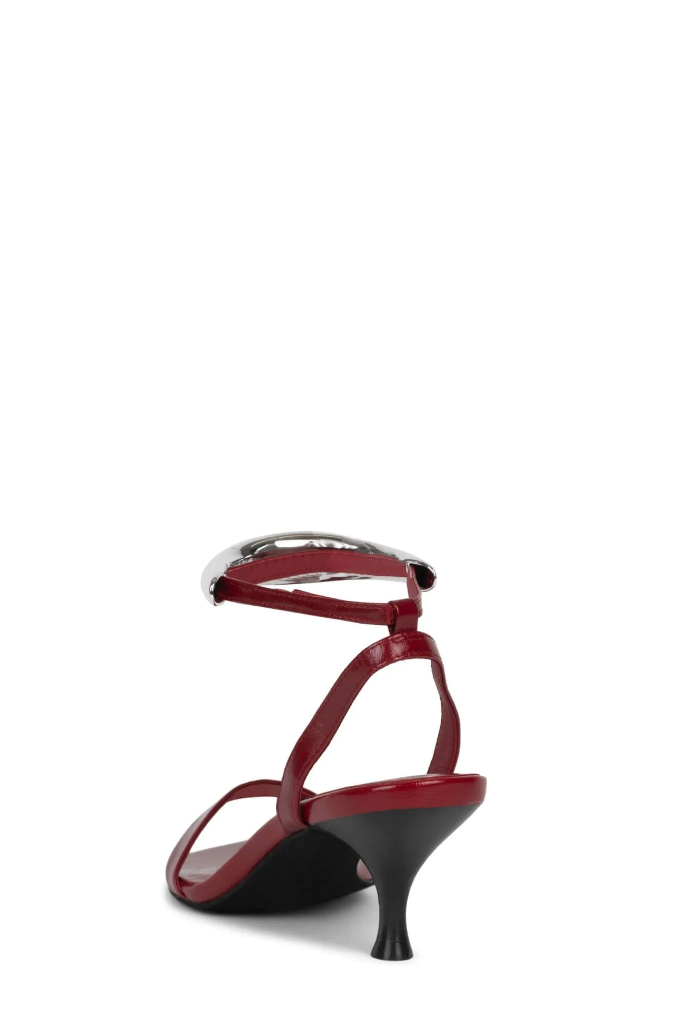 Minimal kitten-heel sandal with metal half-moon anklet detail