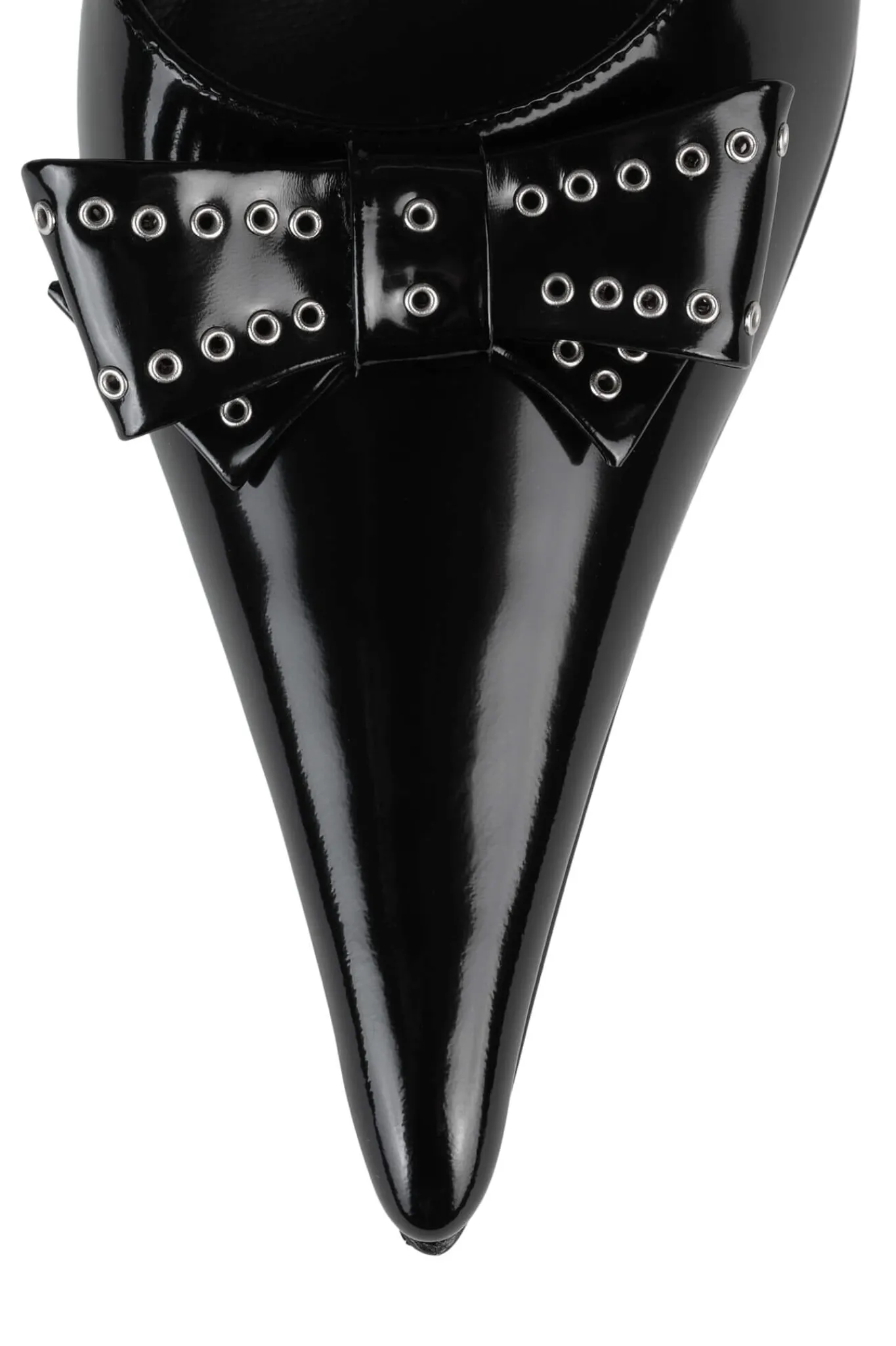 Pointed-toe stiletto pump with bow and eyelet detail