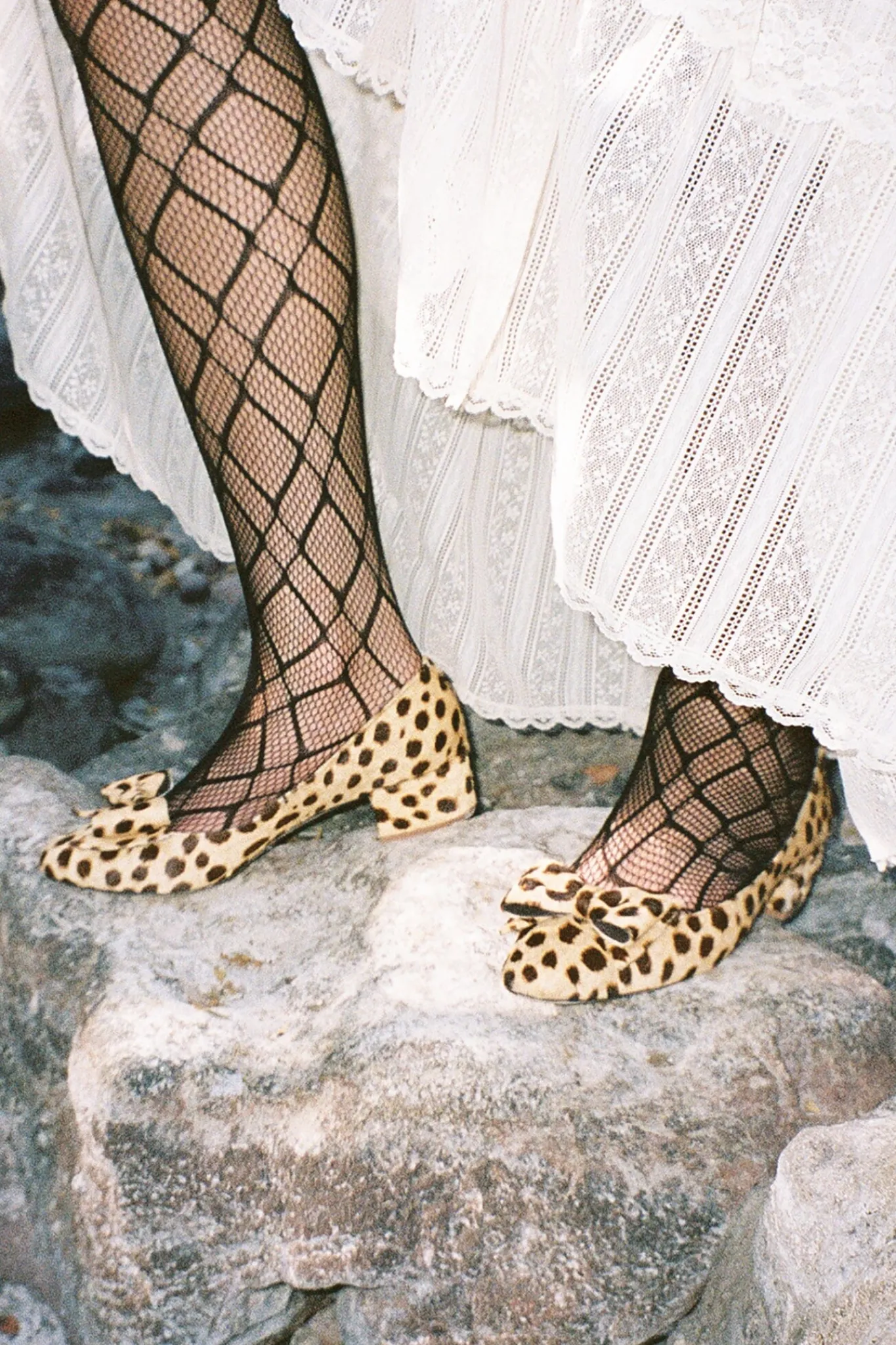 Calf-hair kitten block heel pump with bow detail
