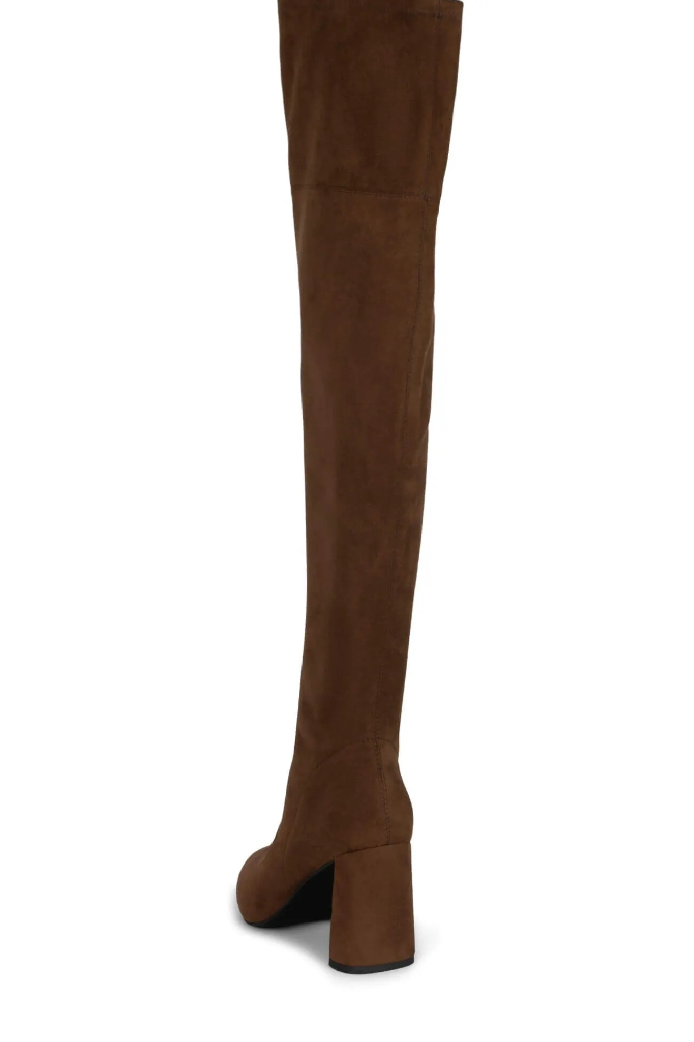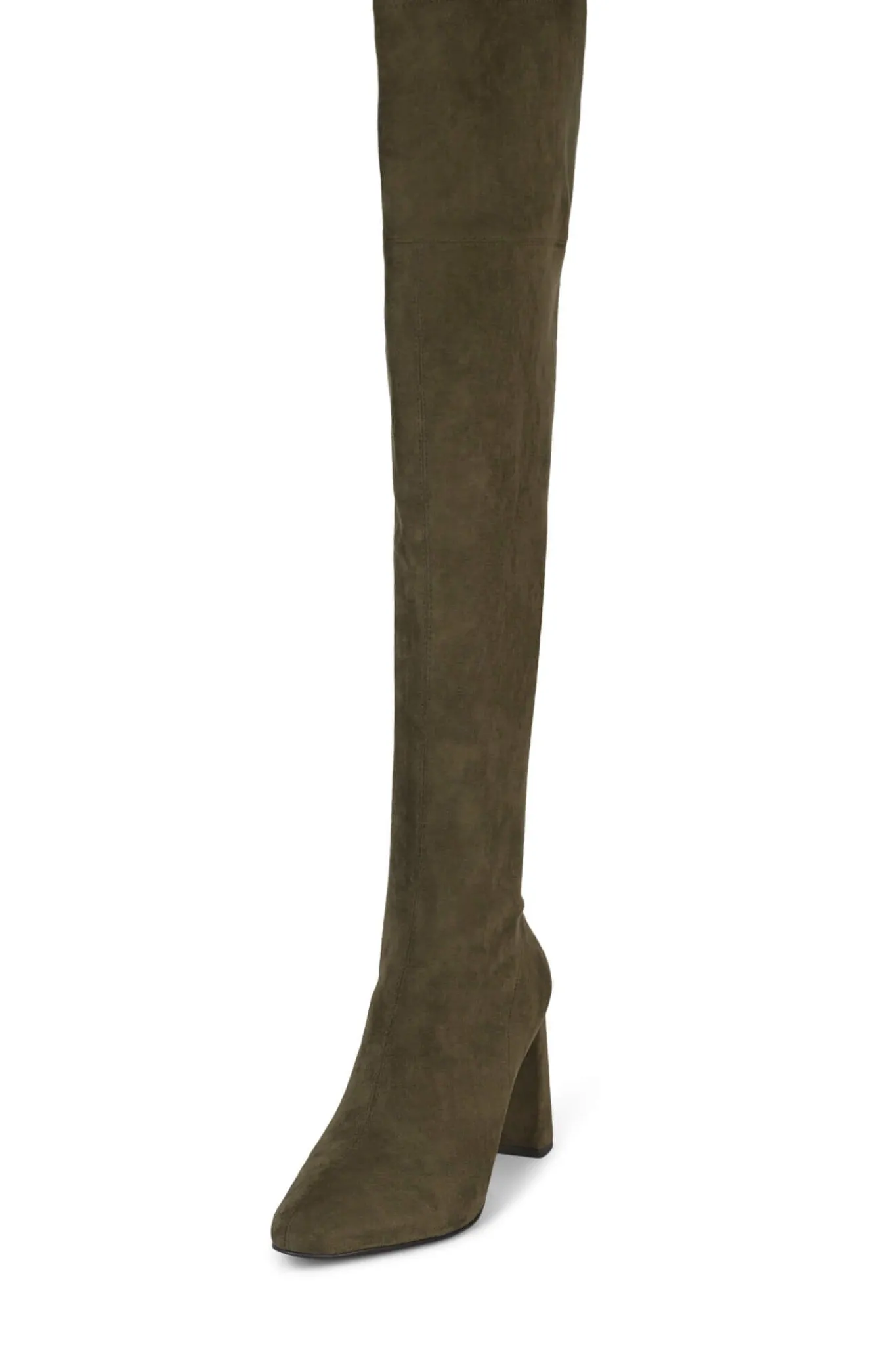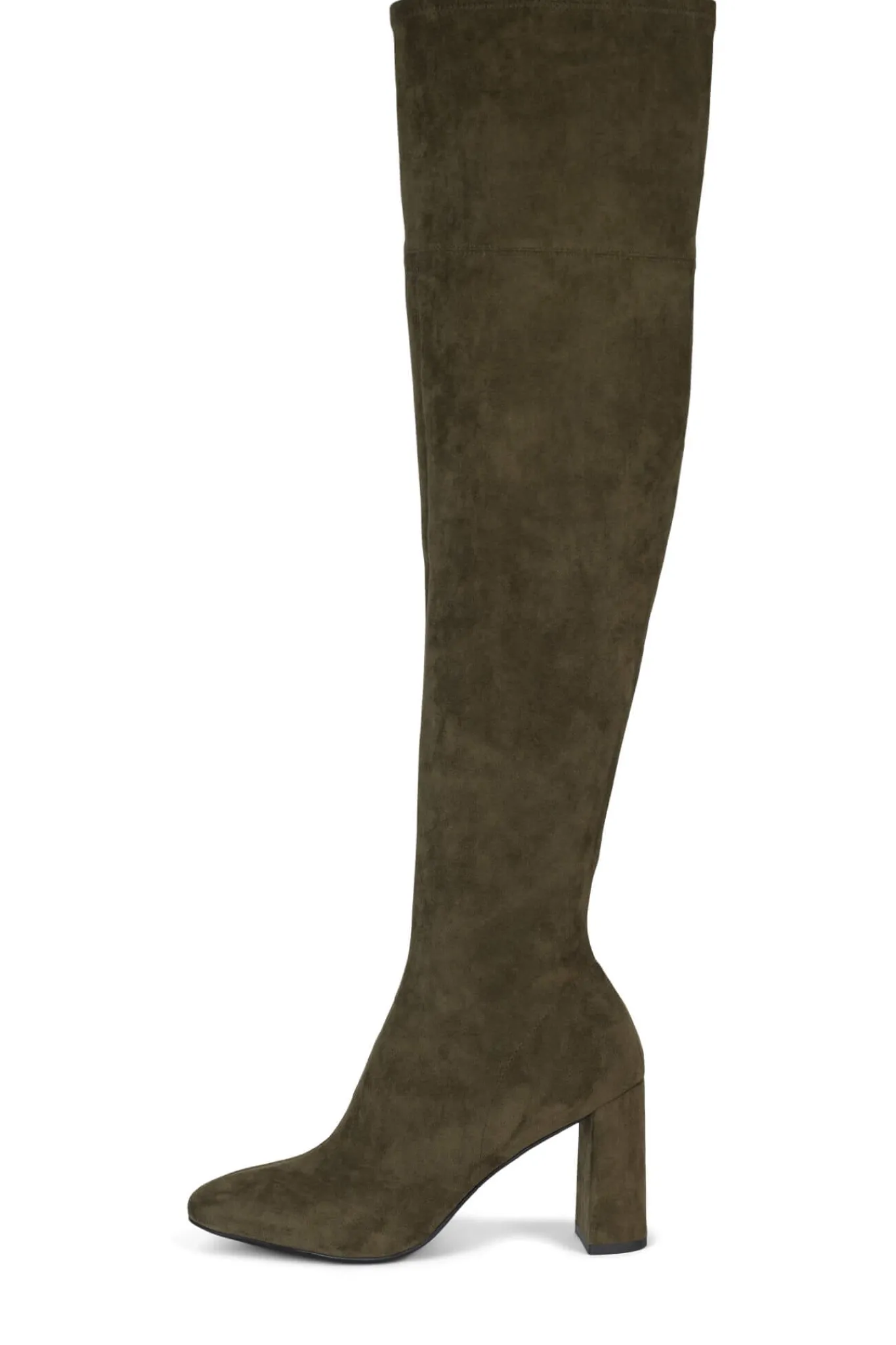Almond toe over-the-knee heeled bootFits true to sizeMeasurements taken from a size 73.25″ Heel21.5″ Shaft, 16″ OpeningF…
