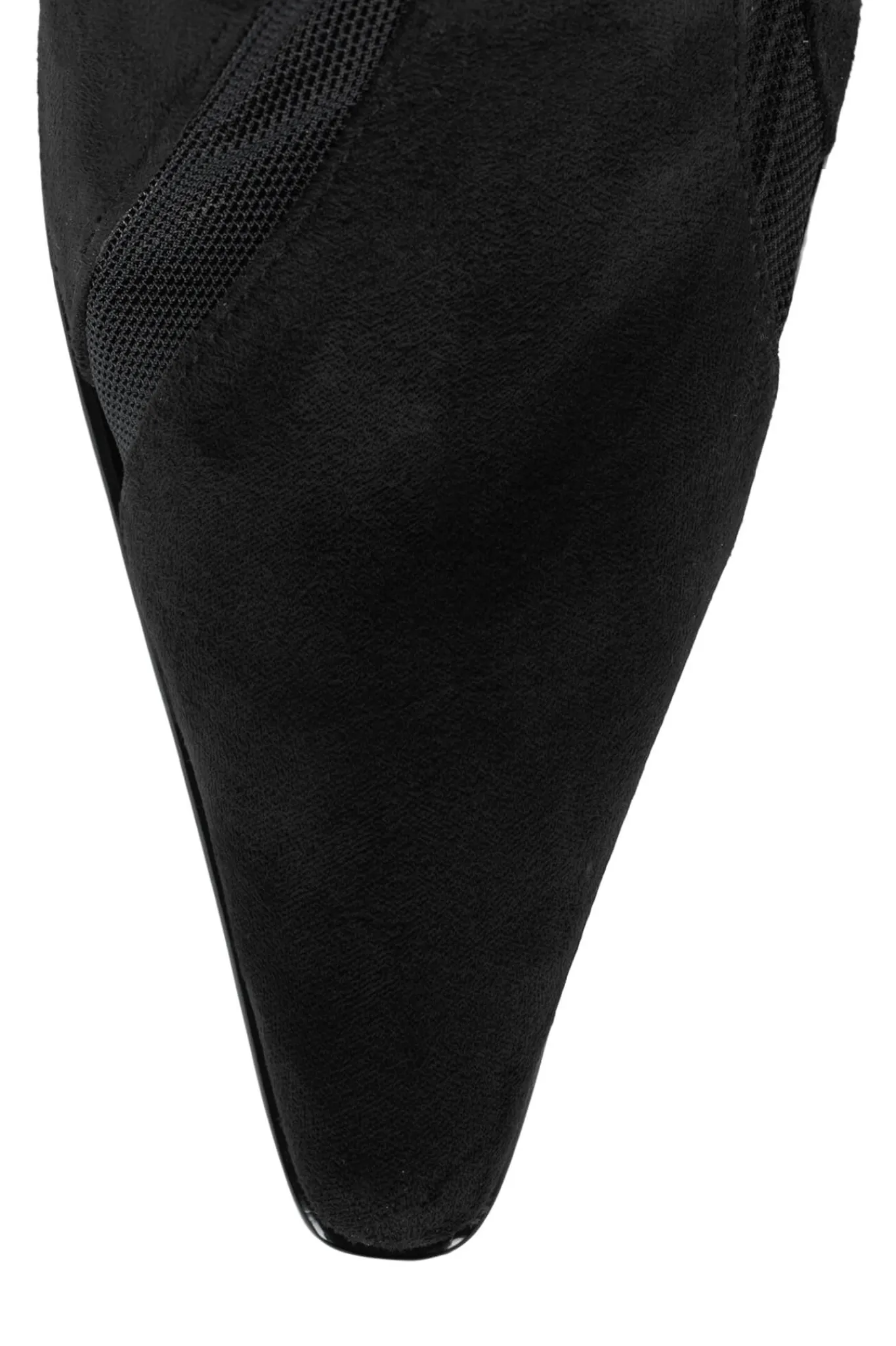 Mid-calf stiletto heeled bootie with mesh inlay