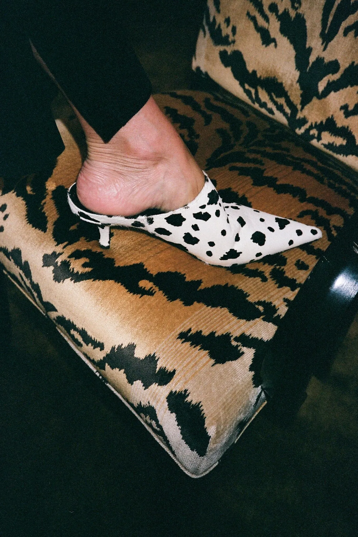 Calf-hair pointed-toe heeled mule
