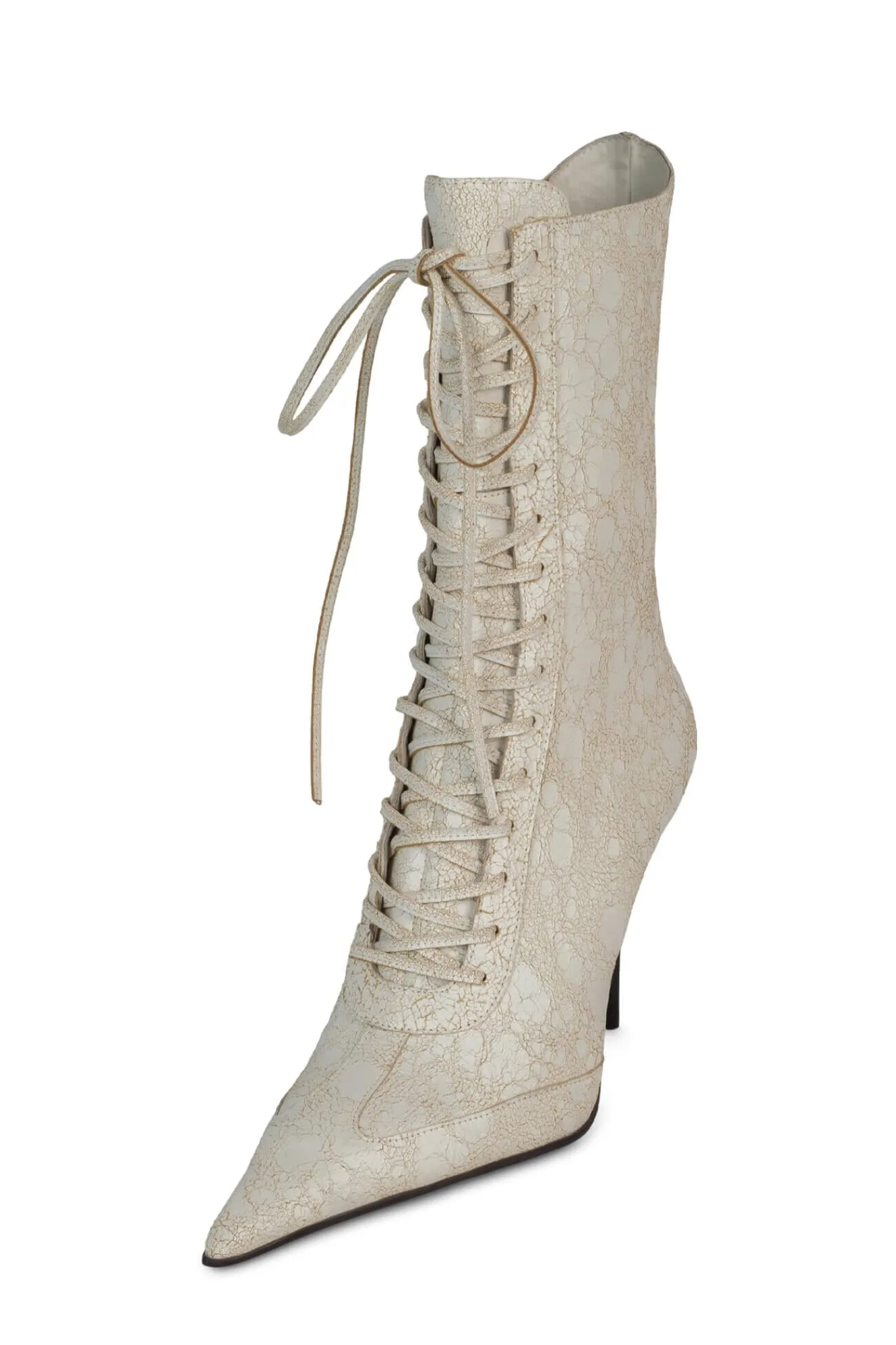 Pointed-toe stiletto lace-up boot