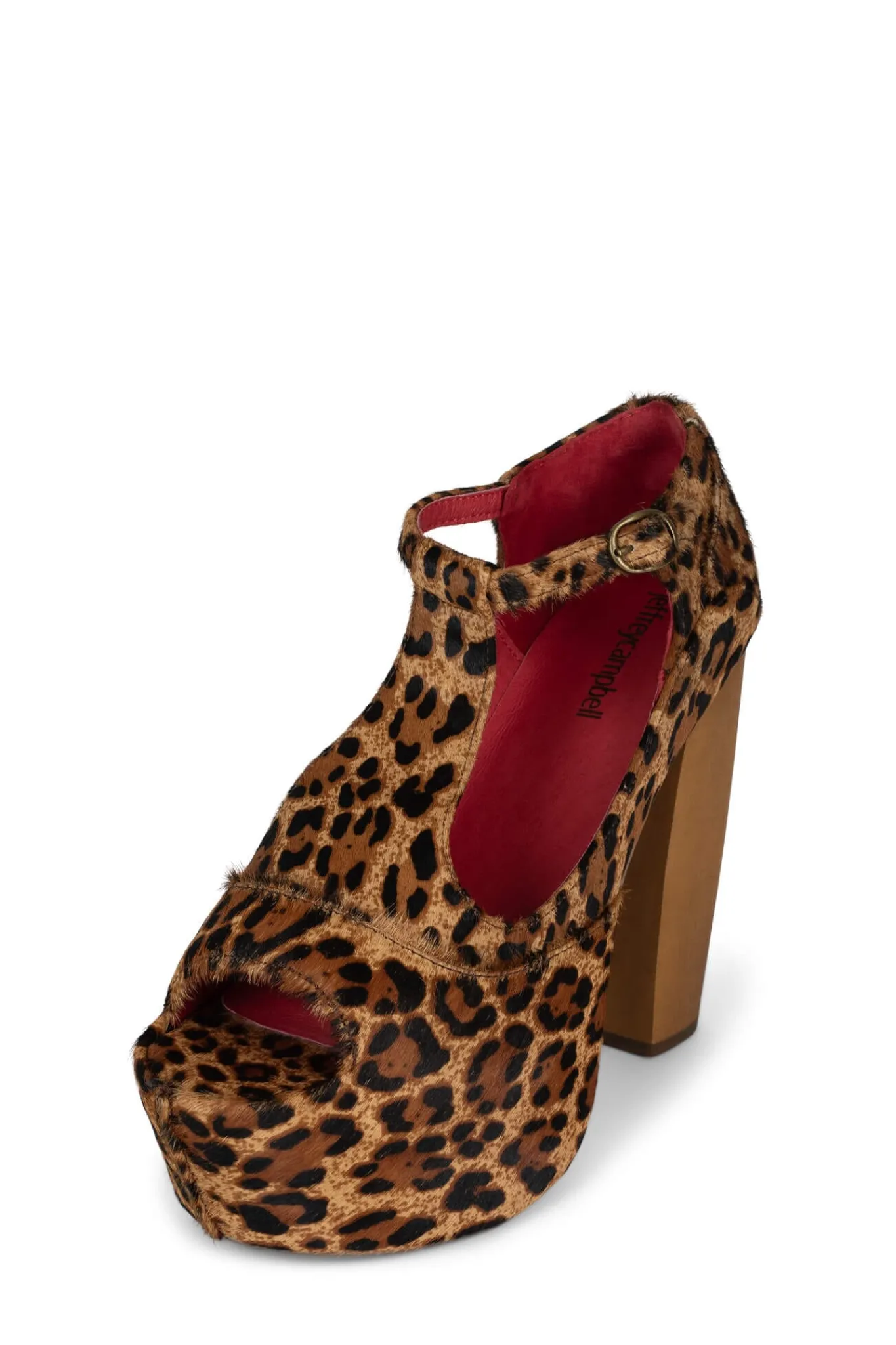 T-strap wooden platform with peep-toe.Fits true to sizeMeasurements taken from a size 7 5.25″ heel, 2″ platformCalf-hai…