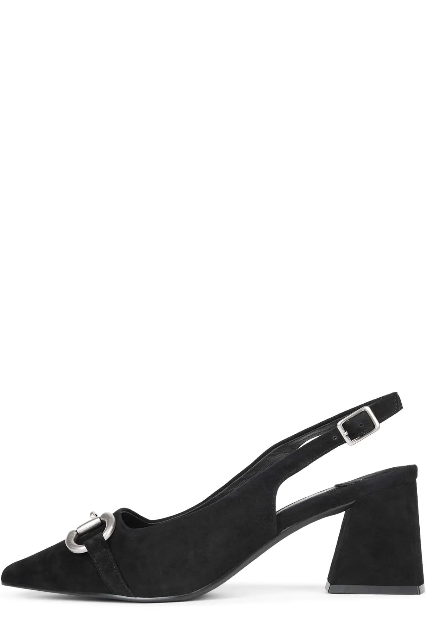Pointed-toe heeled slingback with metal-bit