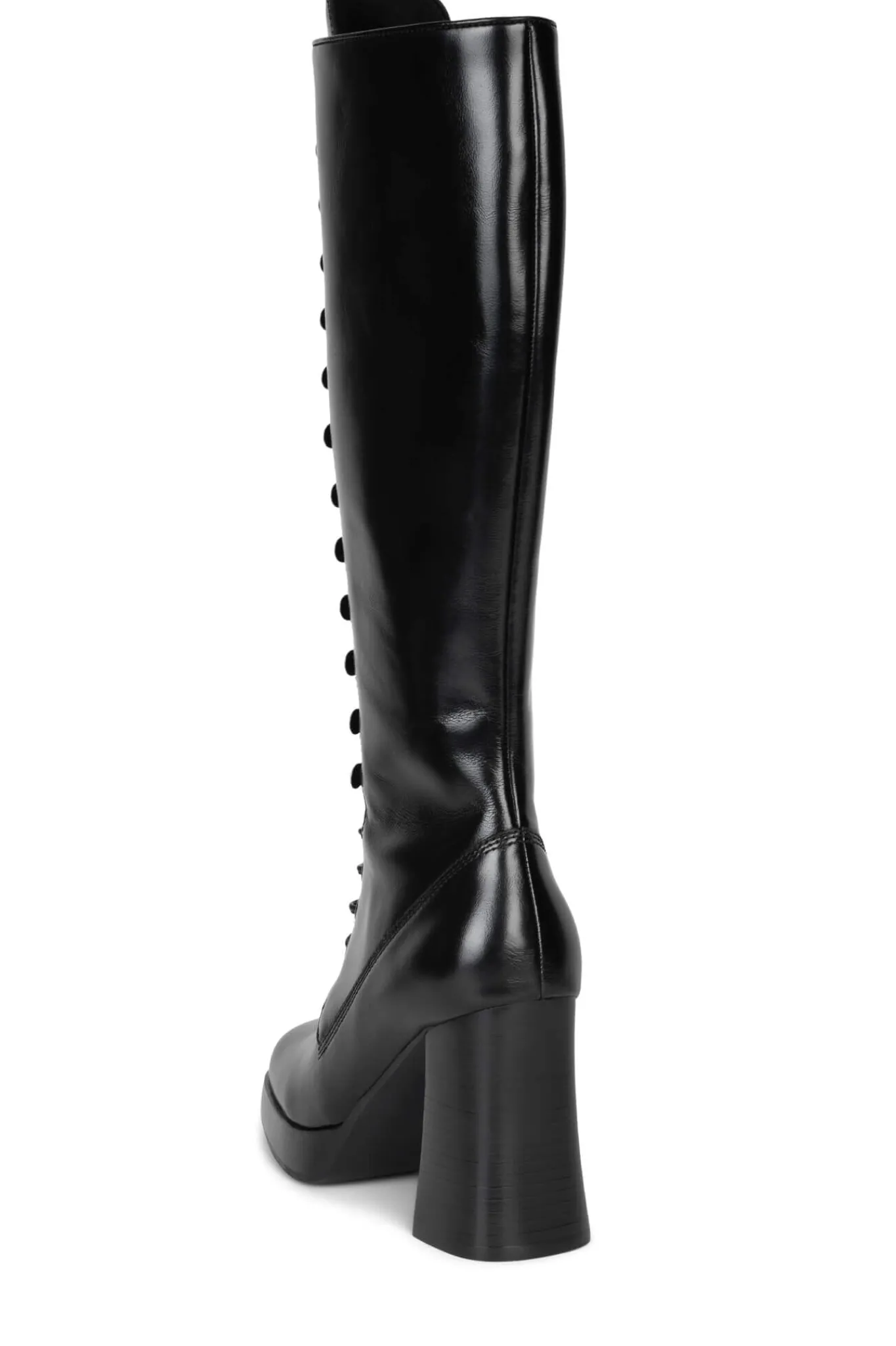Lace-up knee-high chunky heeled boot Fits true to sizeMeasurements taken from a size 7 3.5″ Heel, 0.75″ Platform14″ Sh…