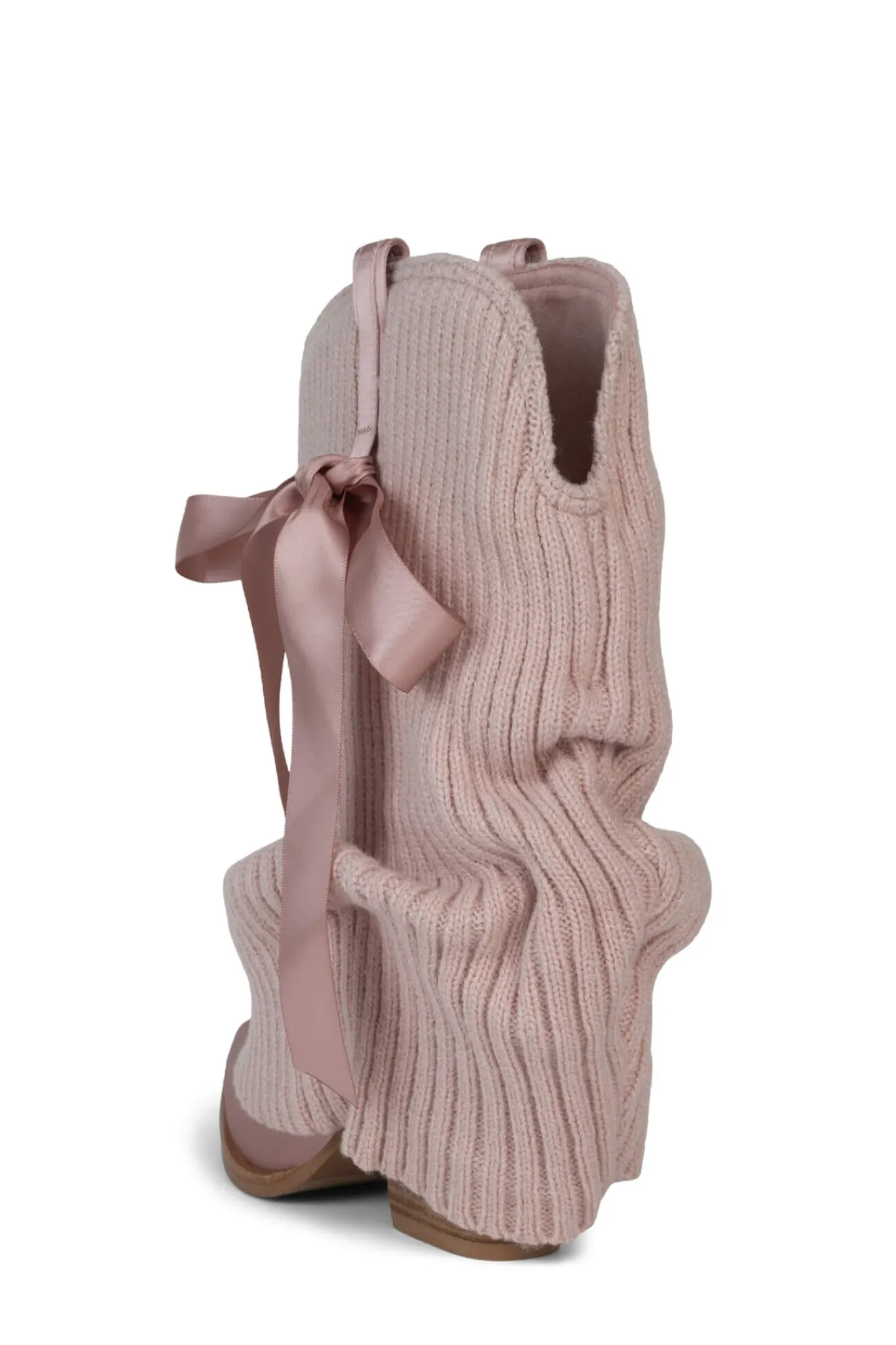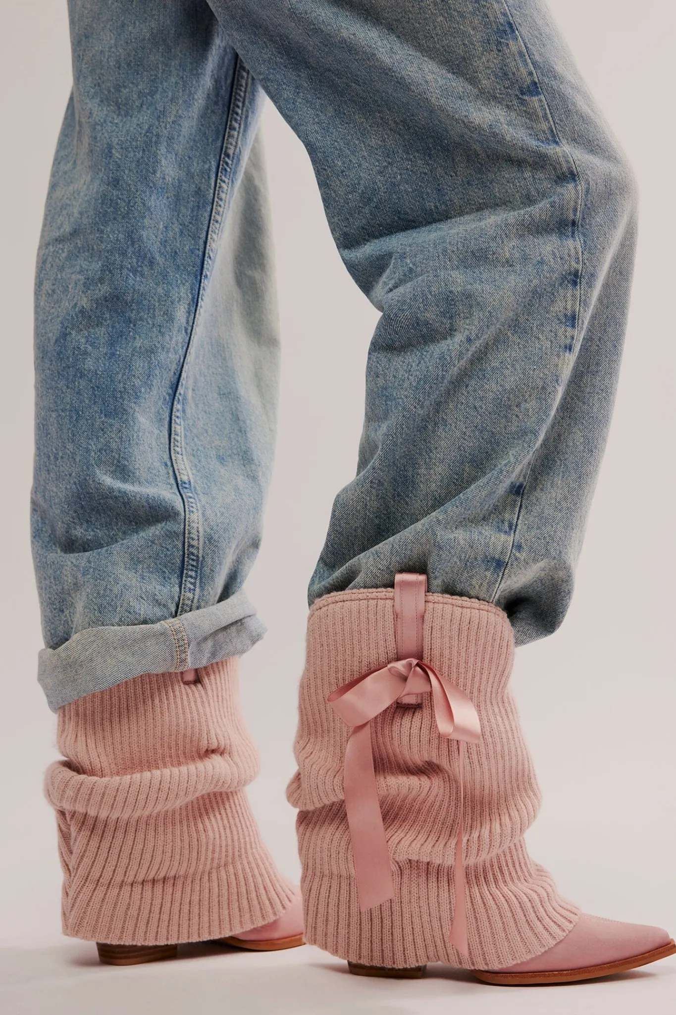 Taking inspiration from dancers’ leg warmers, these unique boots are featured in a foldover style and effortless pull-on design with a soft ribbed cuff, leather upper, and removable bow detail.