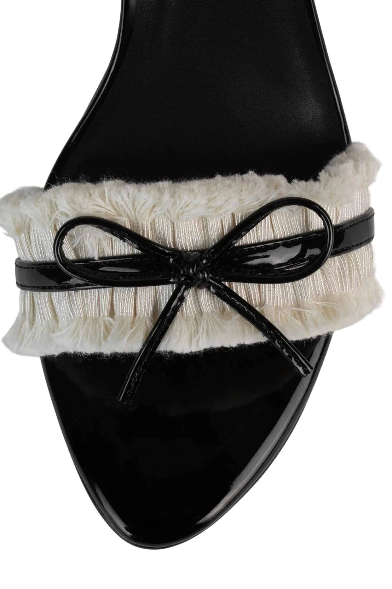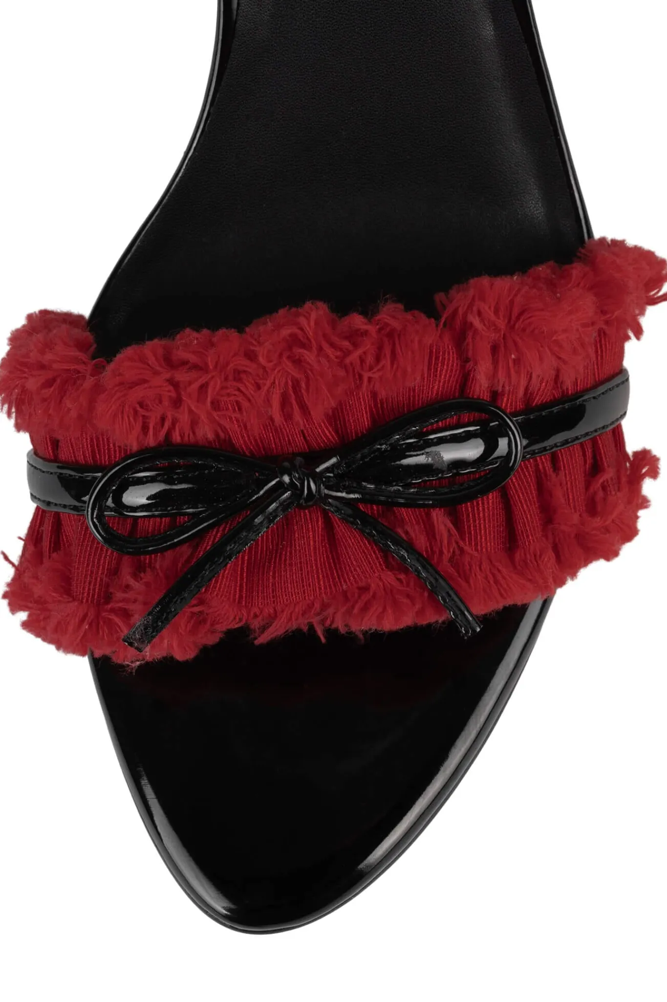 Stiletto sandal with ruffle and bow detail Fits true to sizeMeasurements taken from a size 7 3.75″ Heel, 0.25″ Platfor…