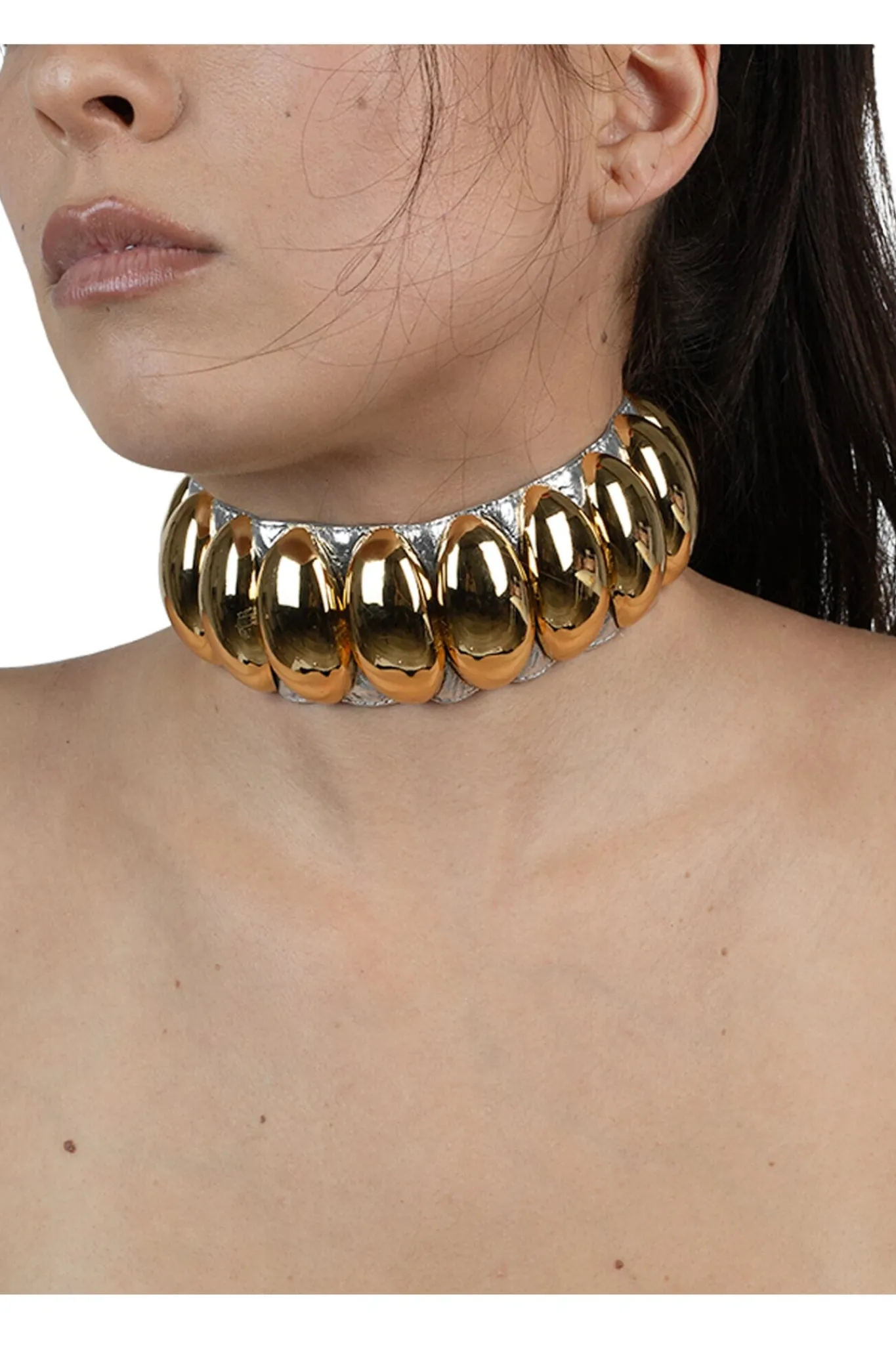 Choker necklace with metal dome studs
