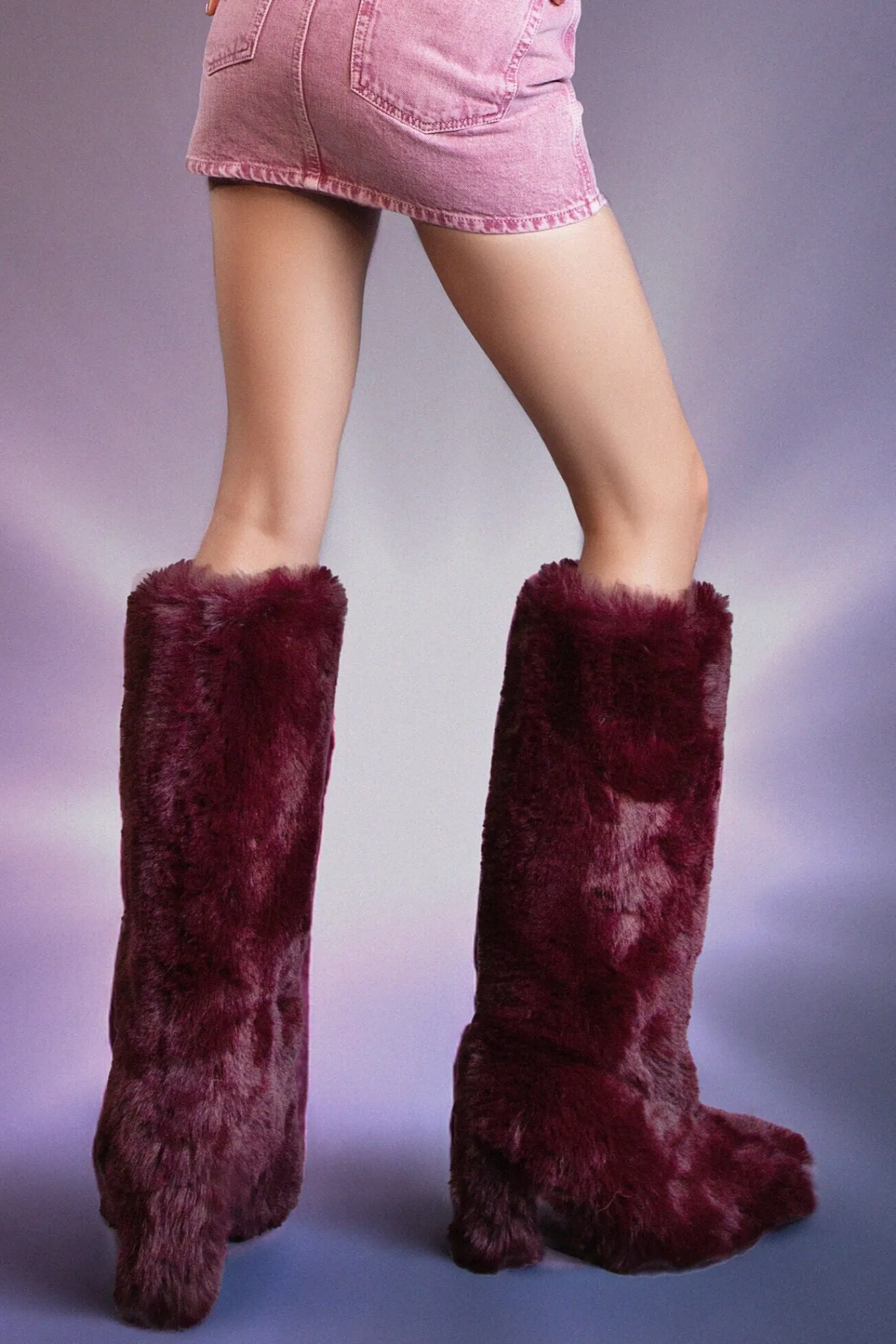 Faux-fur knee-high heeled boot