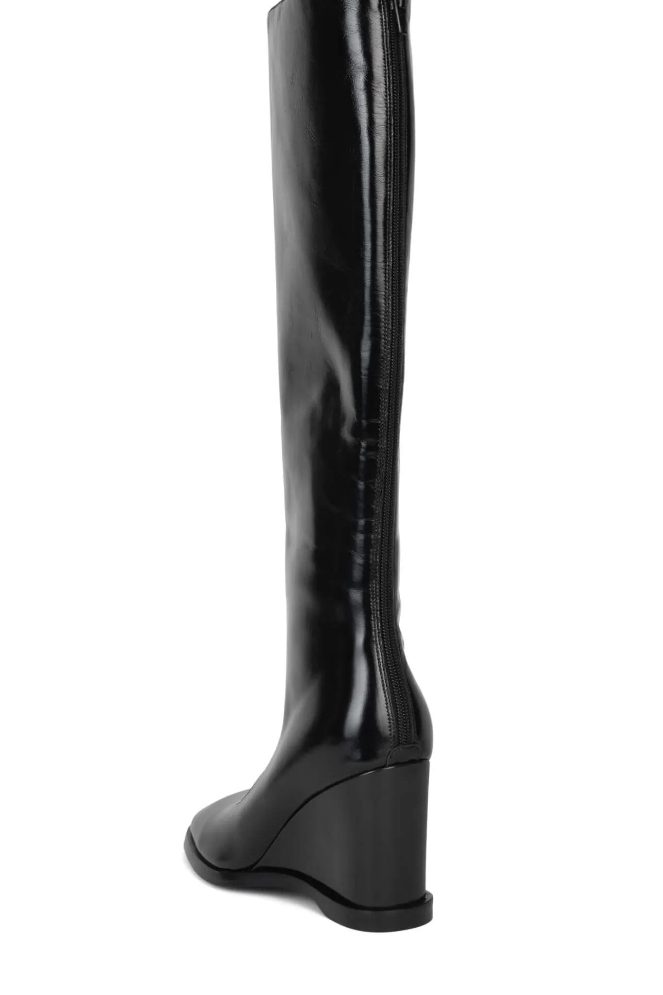Cut-out knee-high wedged boot