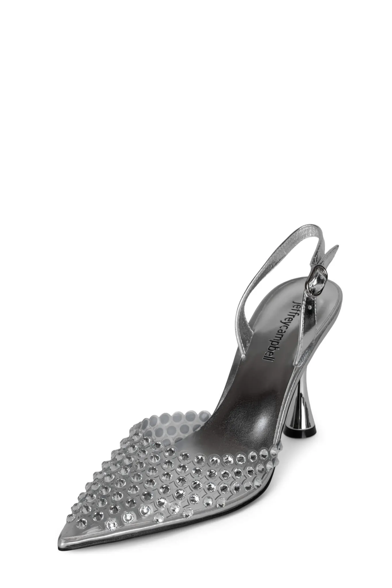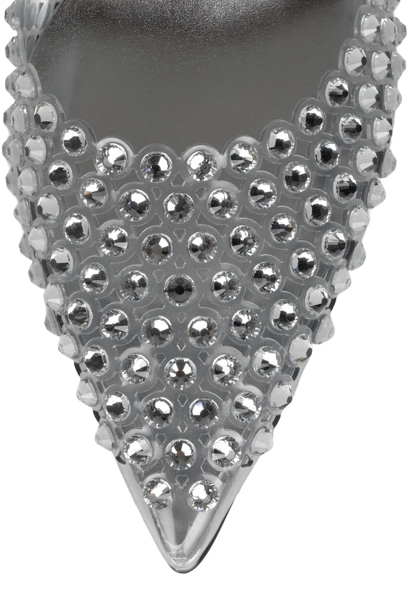 Embellished pointed-toe slingback mule with trumpet heelFits half a size small. Order next half size up. Measurements t…