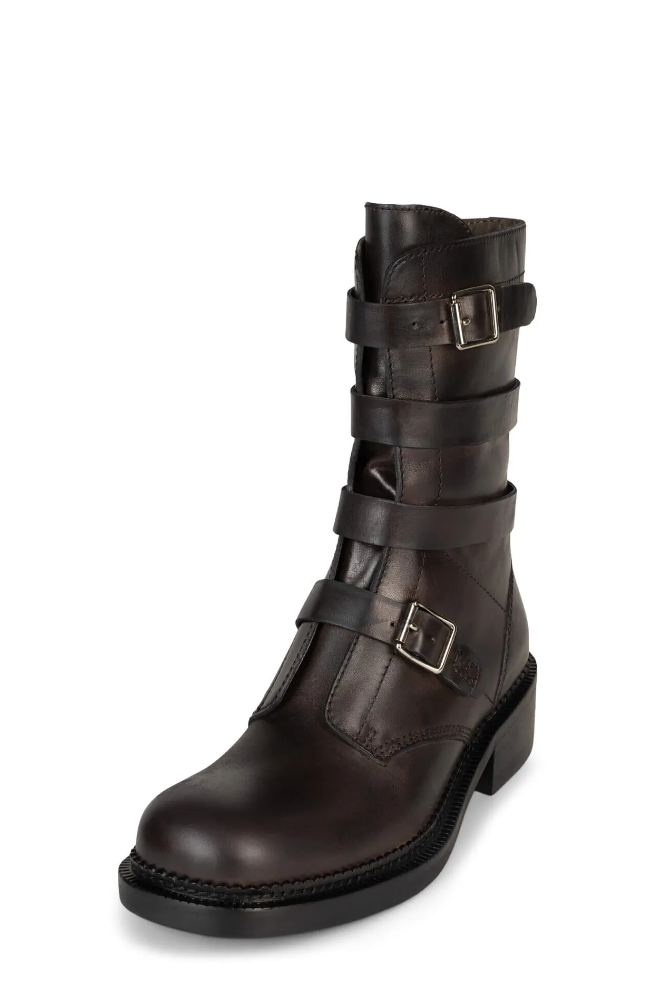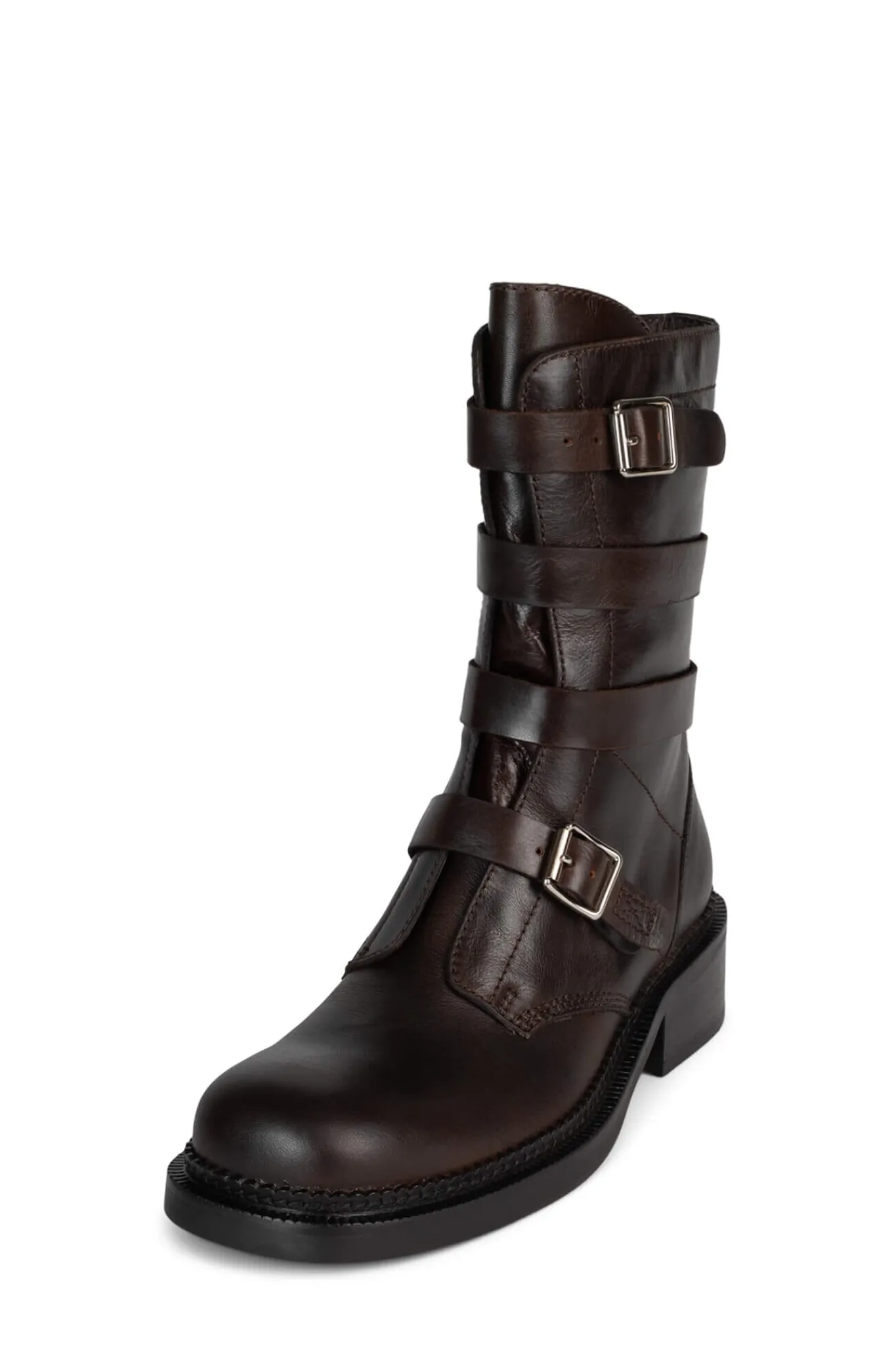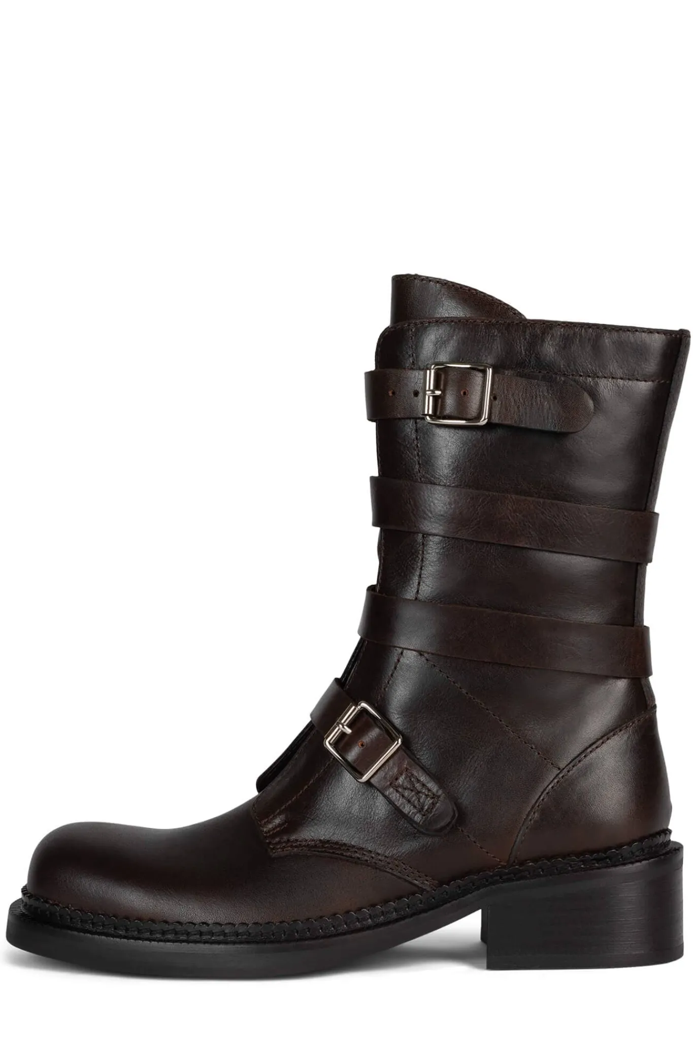 Mid-calf moto-inspired boot