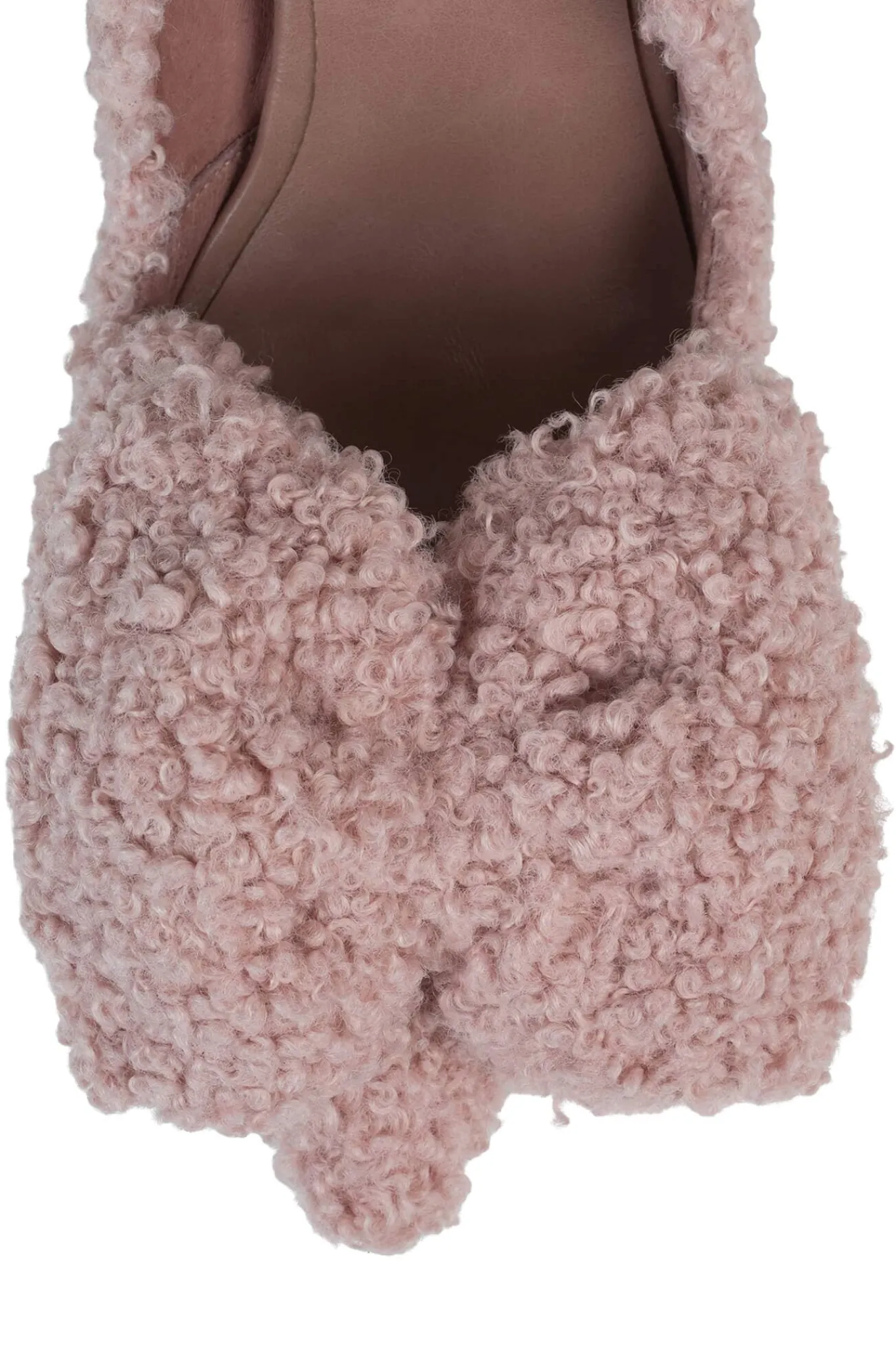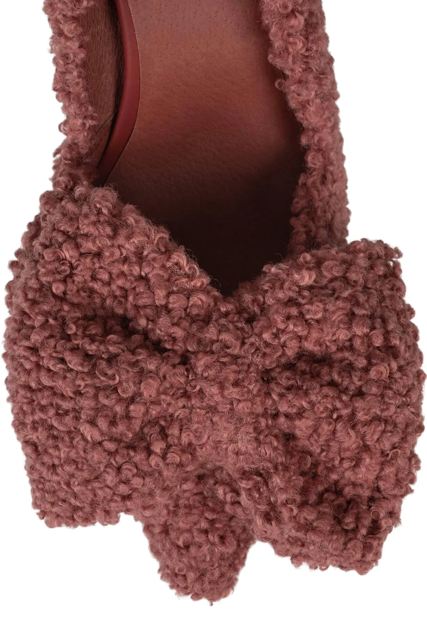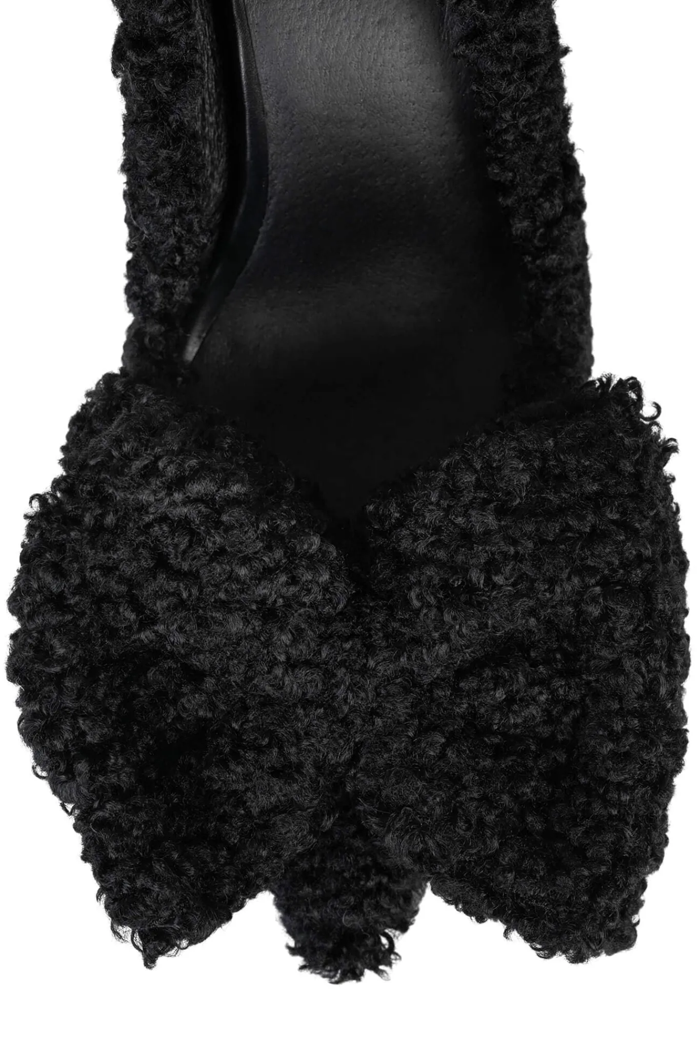 Curly faux-fur pump with bow detail