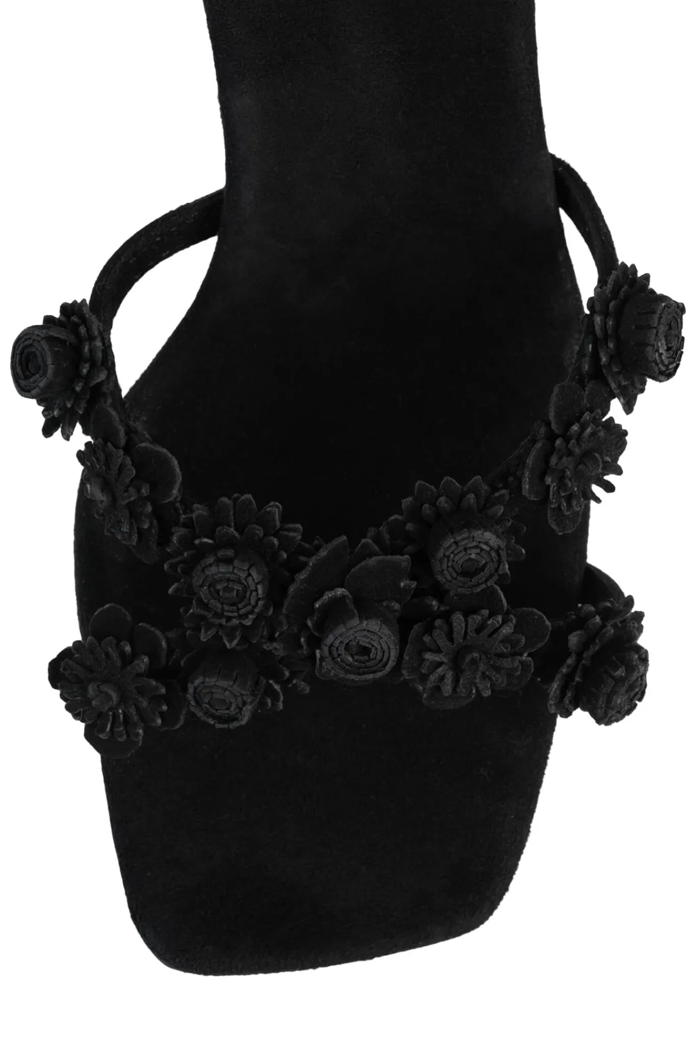 Block-heeled cross-band sandal with floral detailsFits true to sizeMeasurements taken from a size 73″ Heel, 0.25″ Platfo…