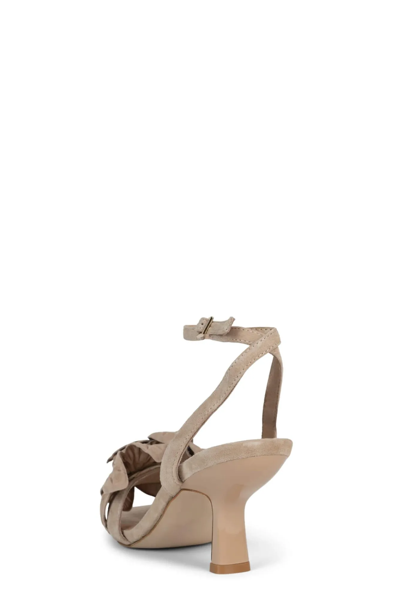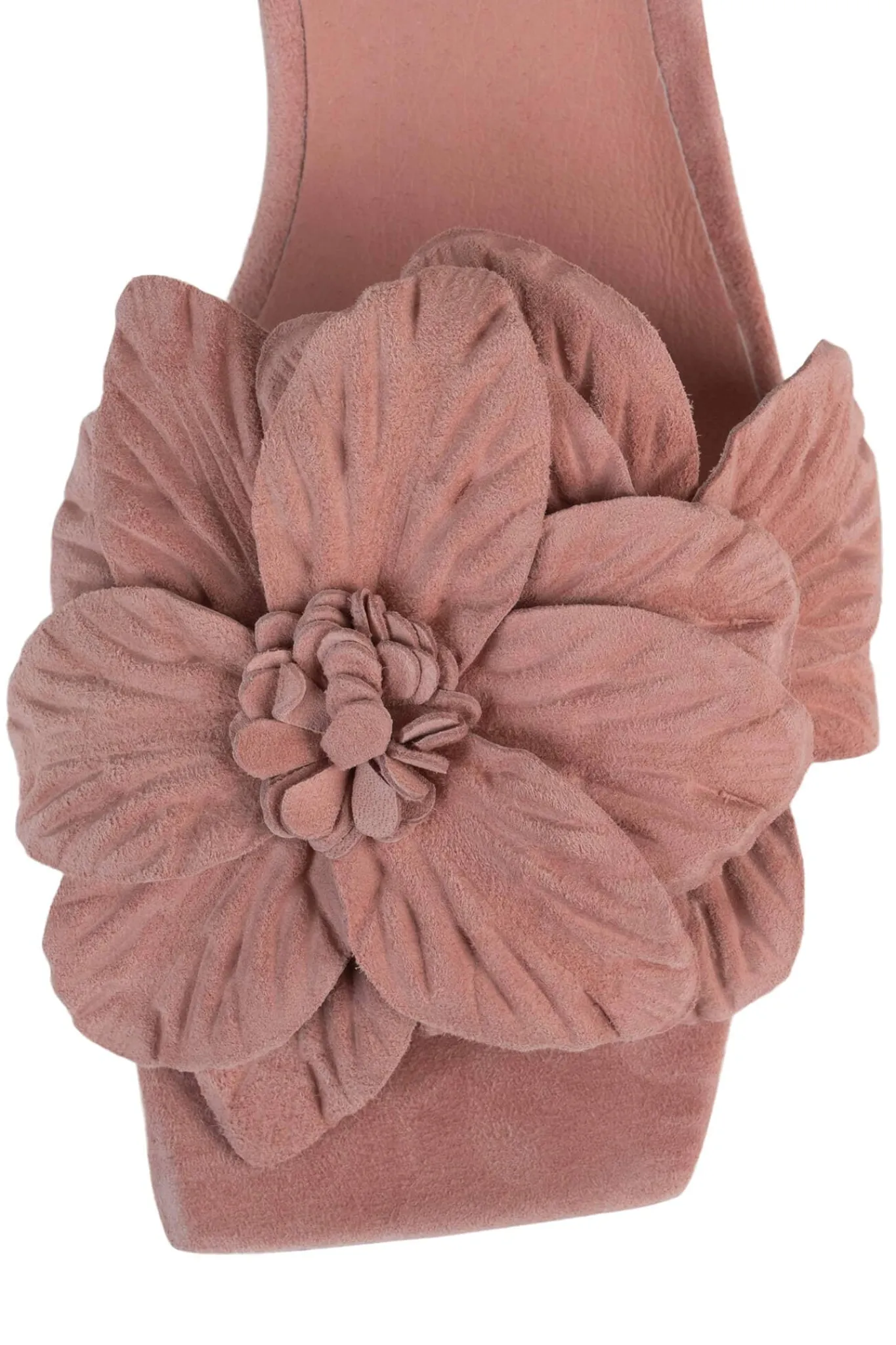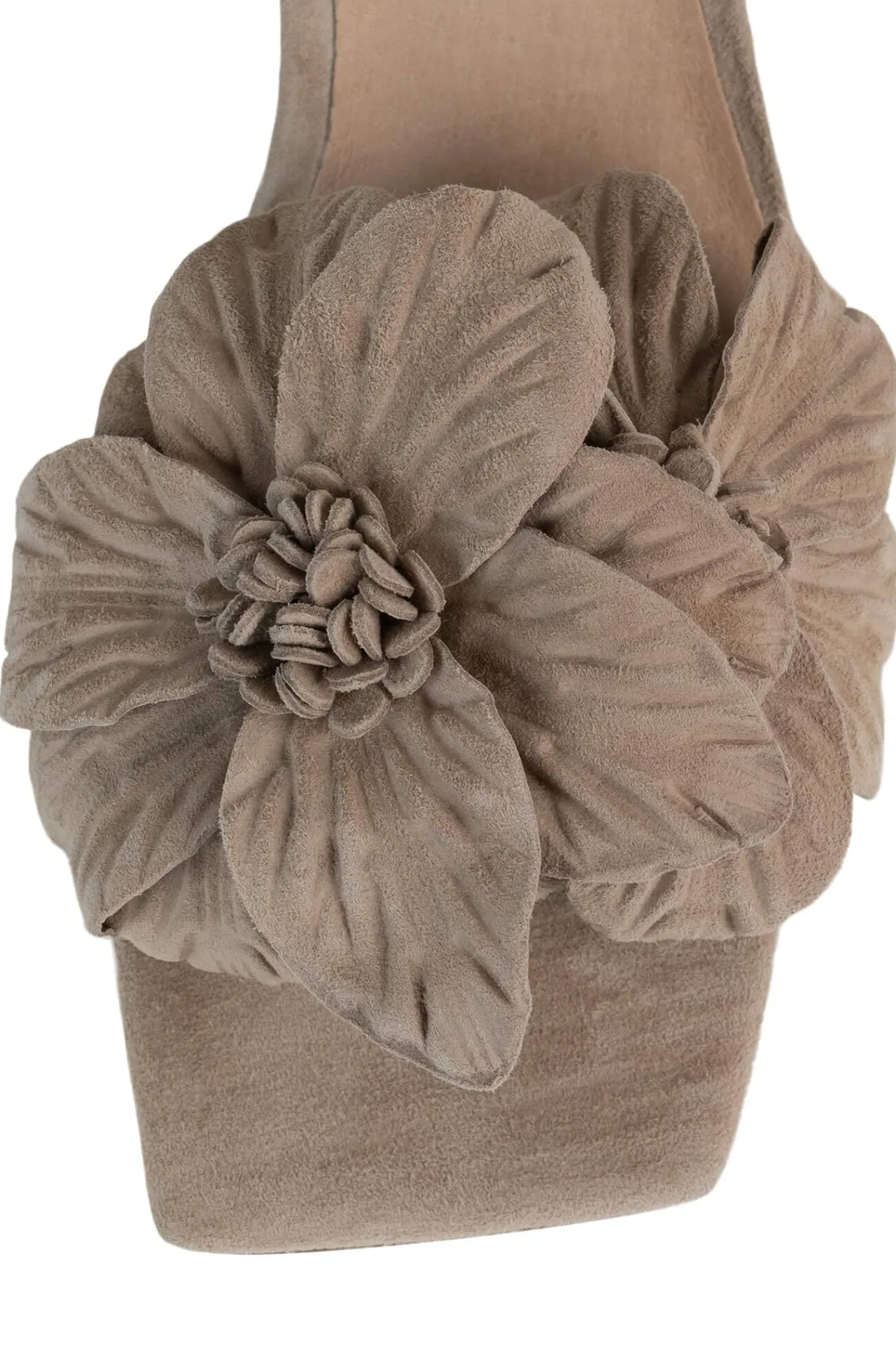 Heeled sandal with ankle strap and floral detailFits half a size small. Order next half size up.Measurements taken from…