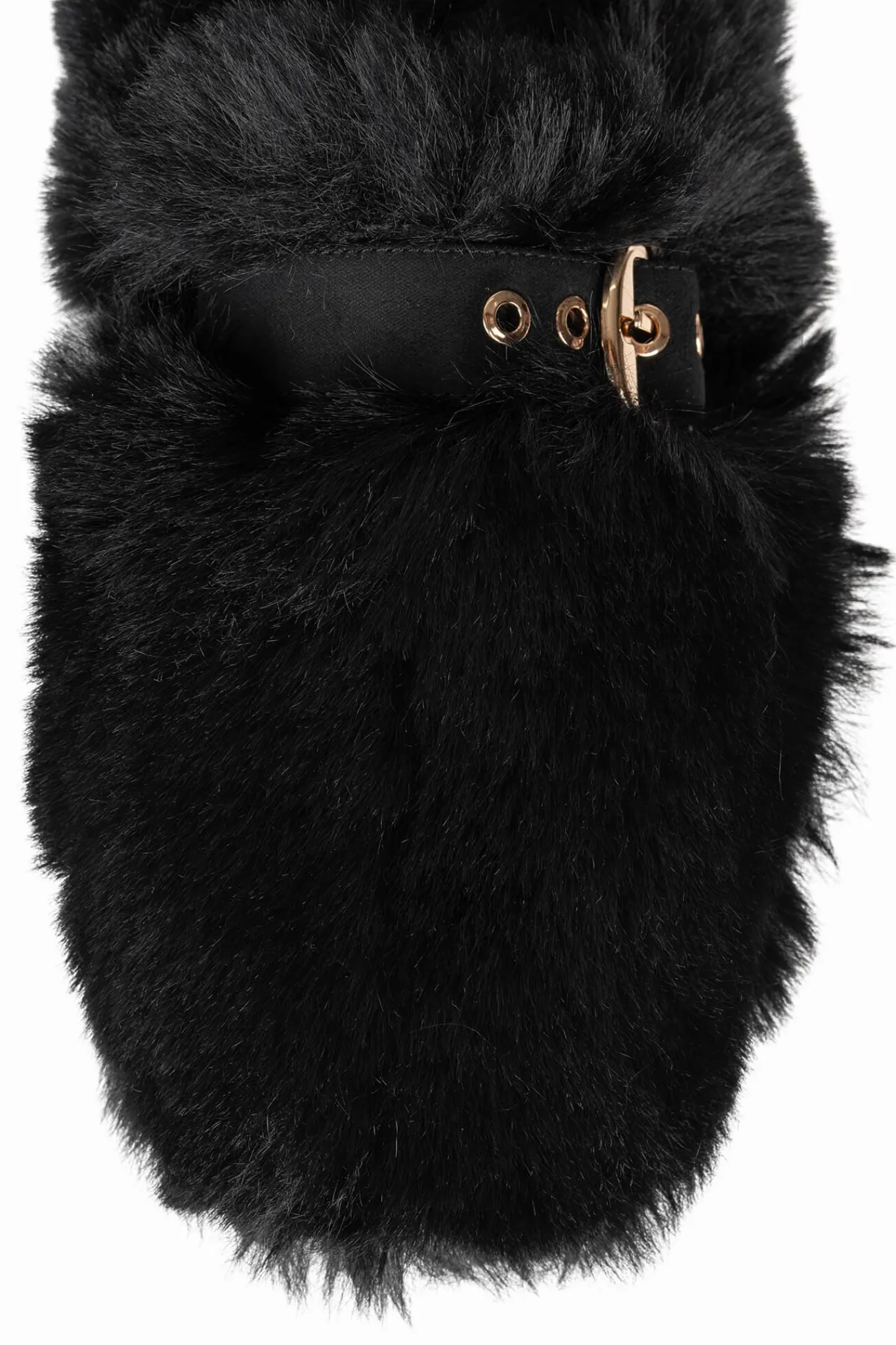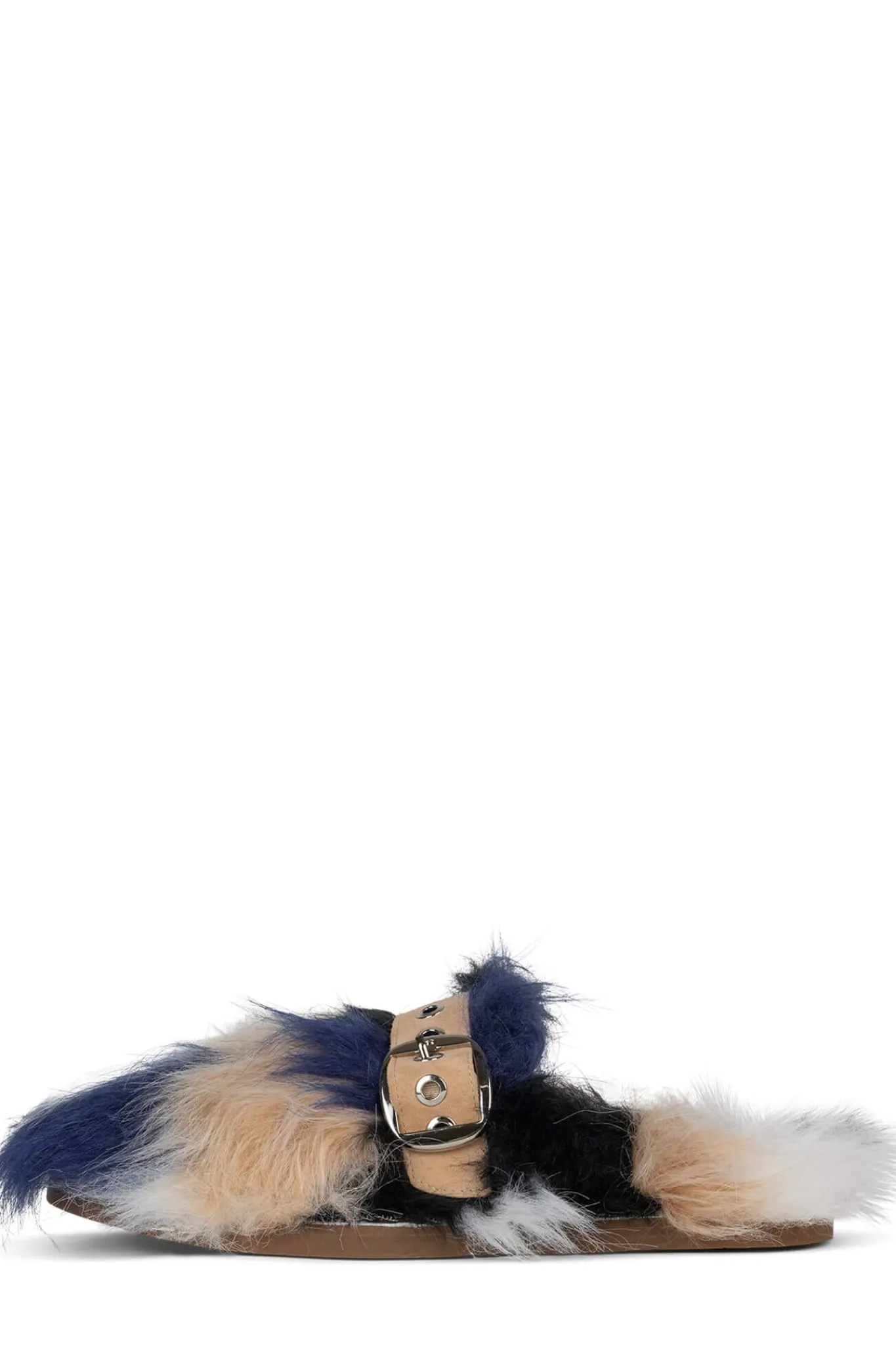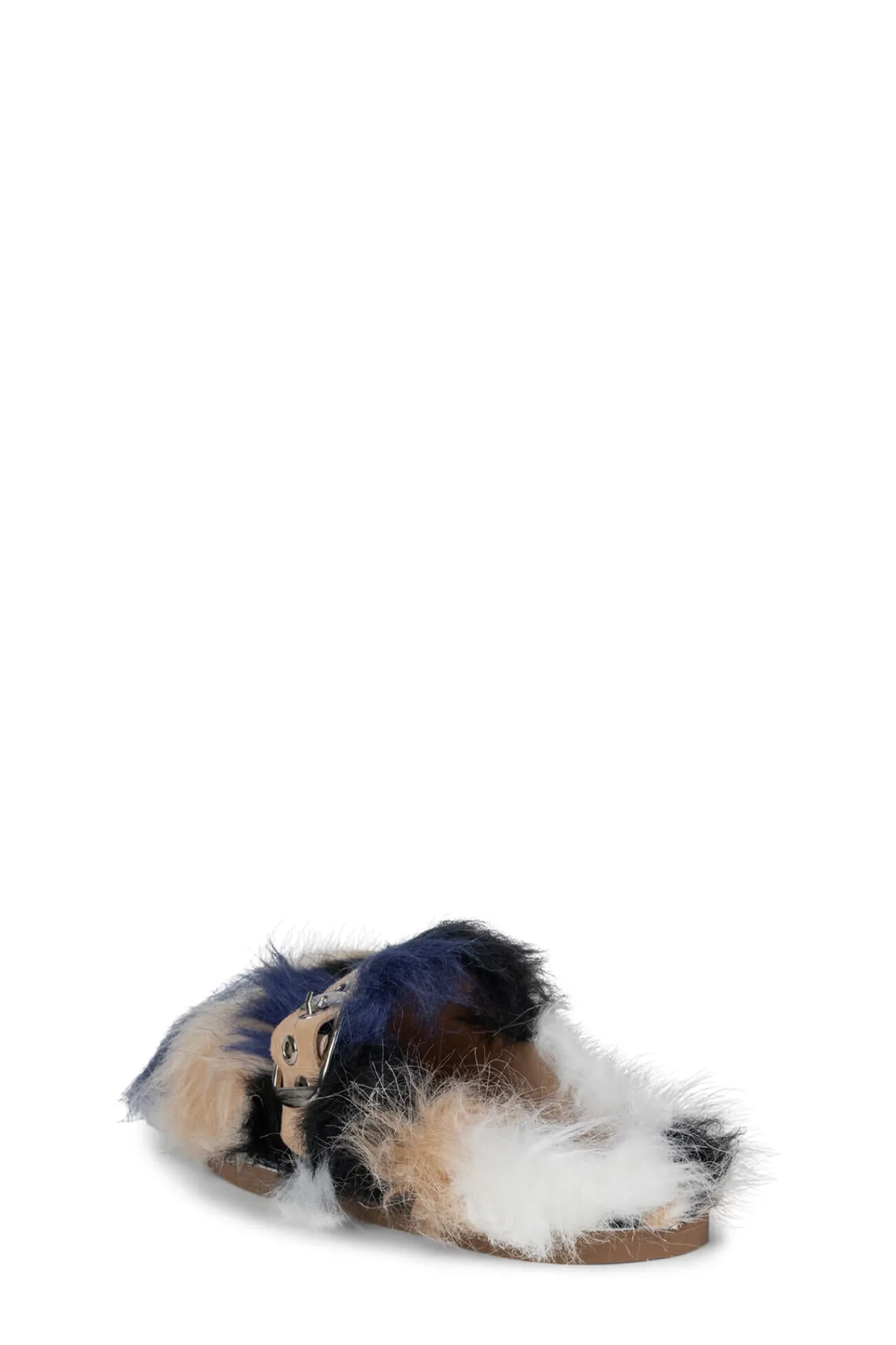 Faux-fur mule slide with buckle detail