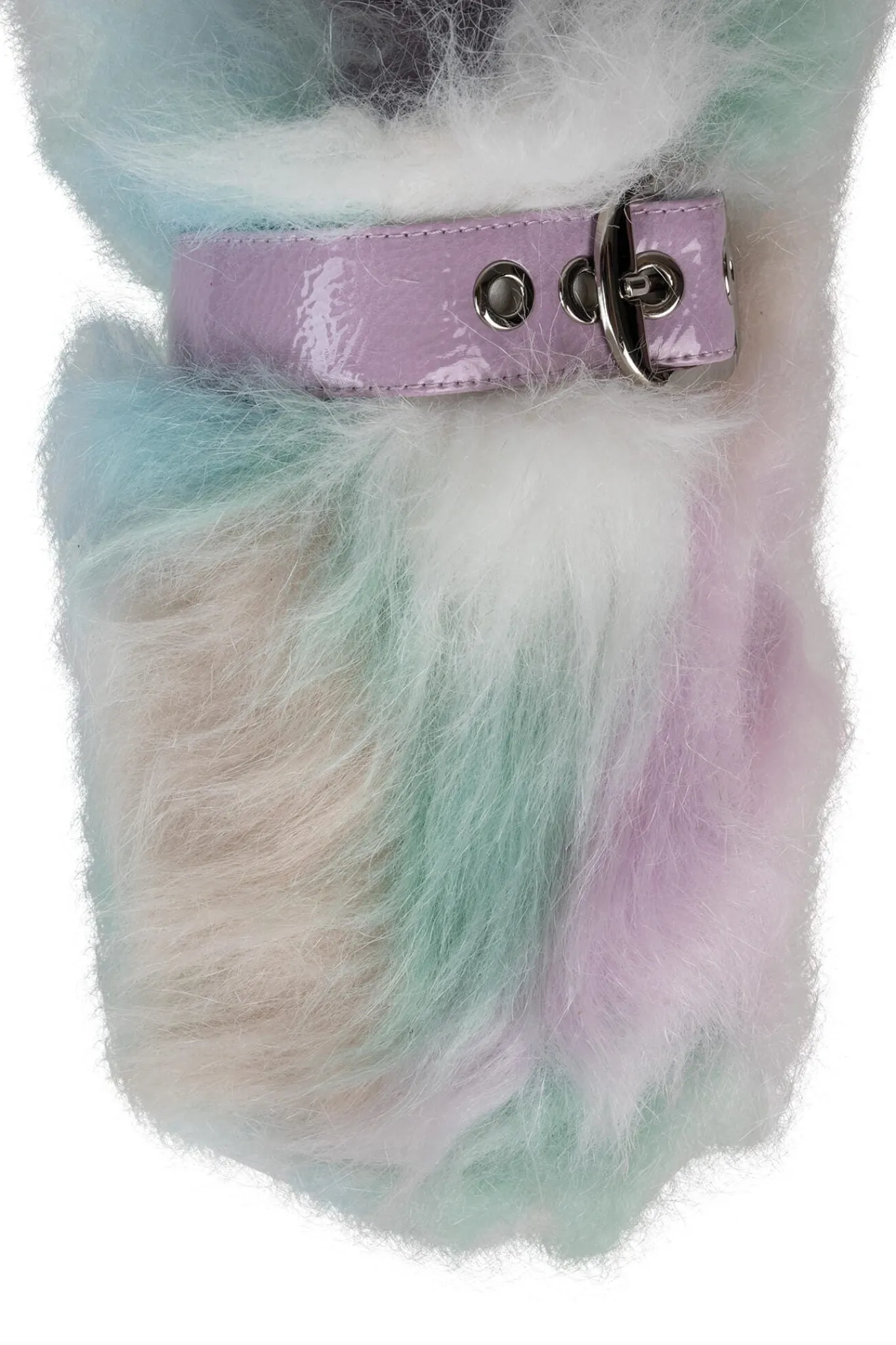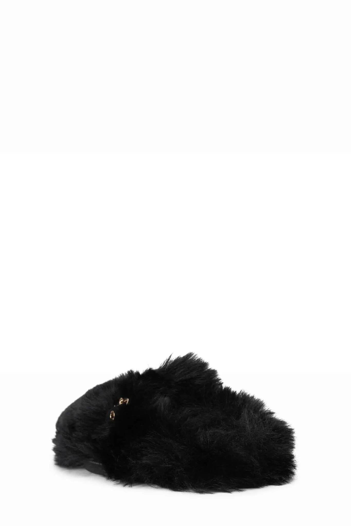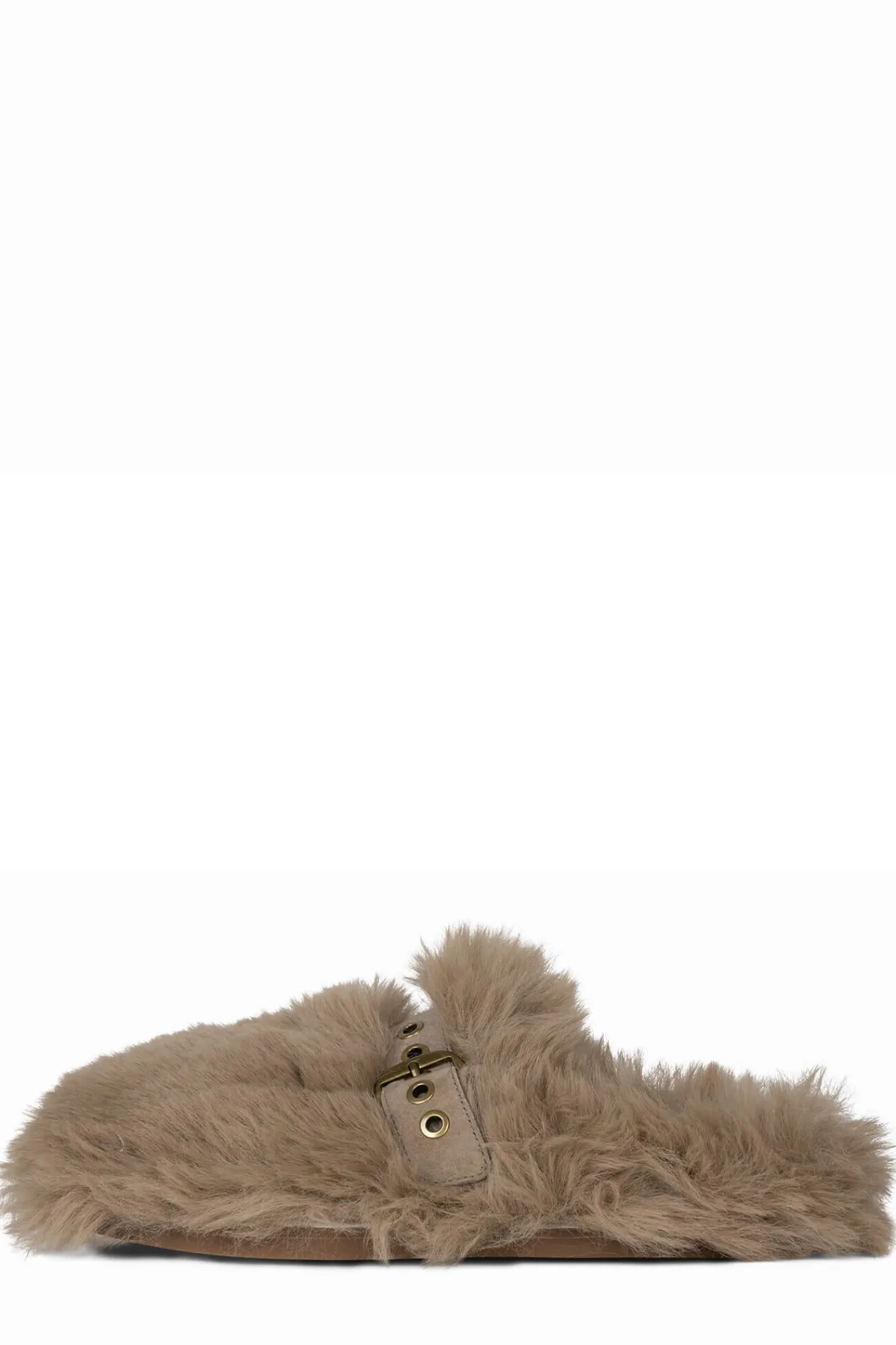 Faux-fur mule slide with buckle detail