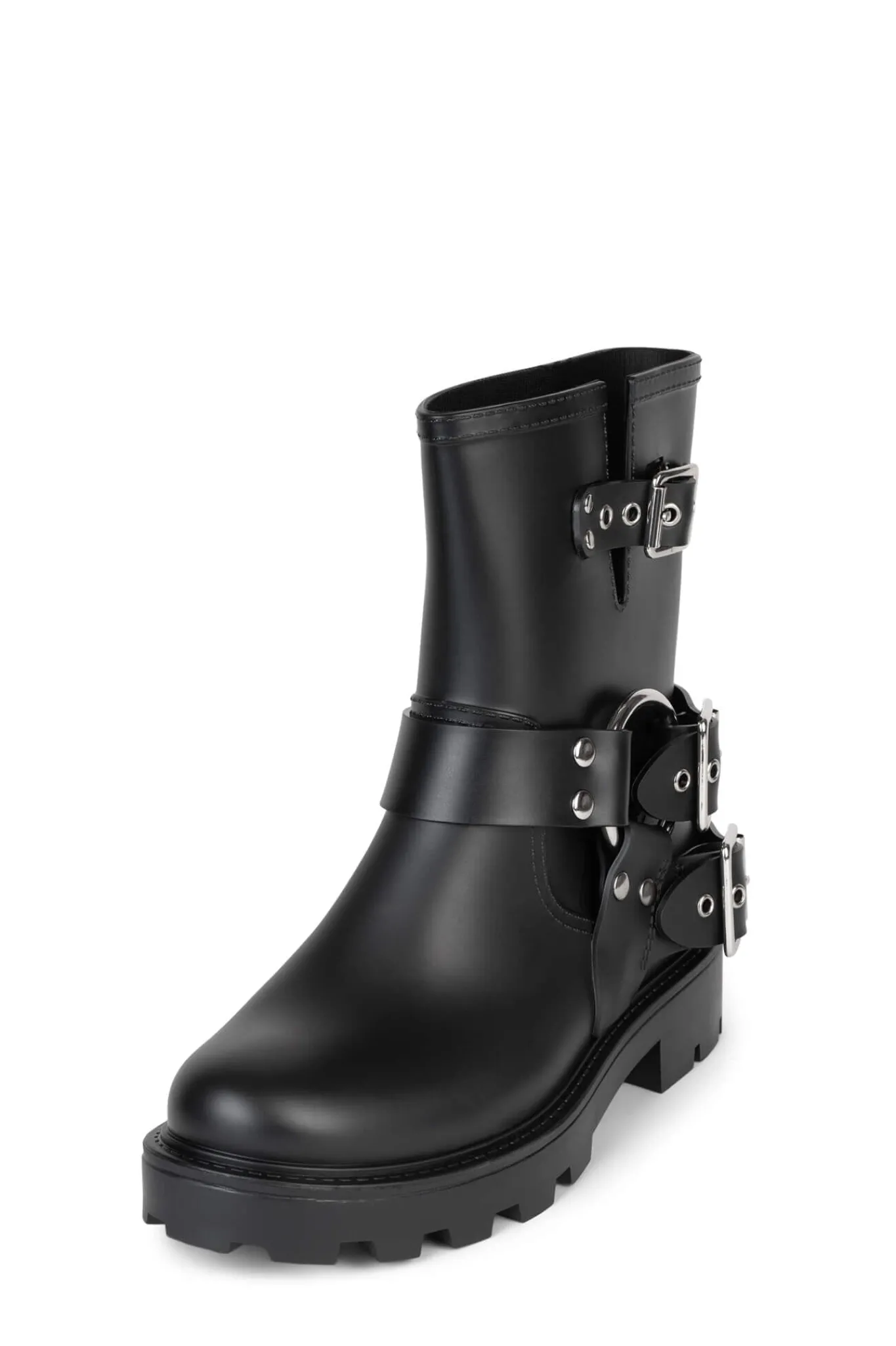 Moto-inspired water-resistant rain boot