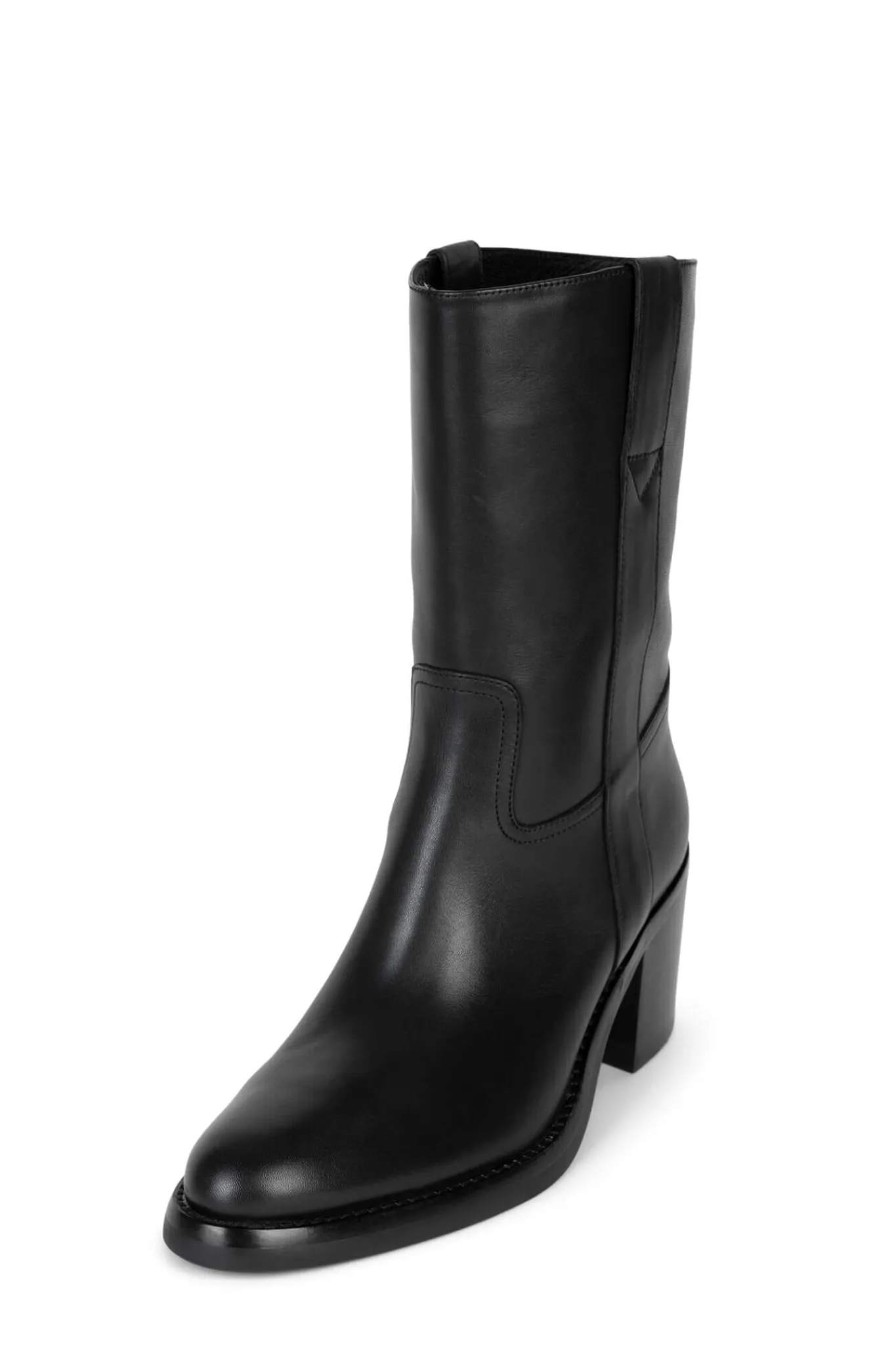Stacked block-heeled western-inspired mid-calf boot