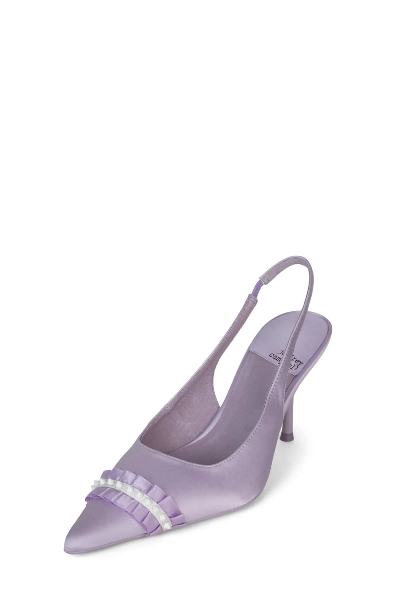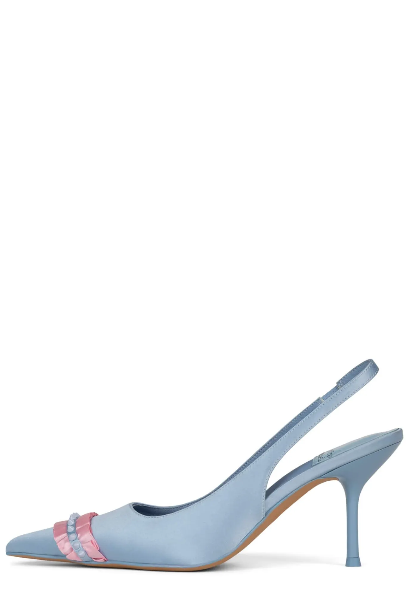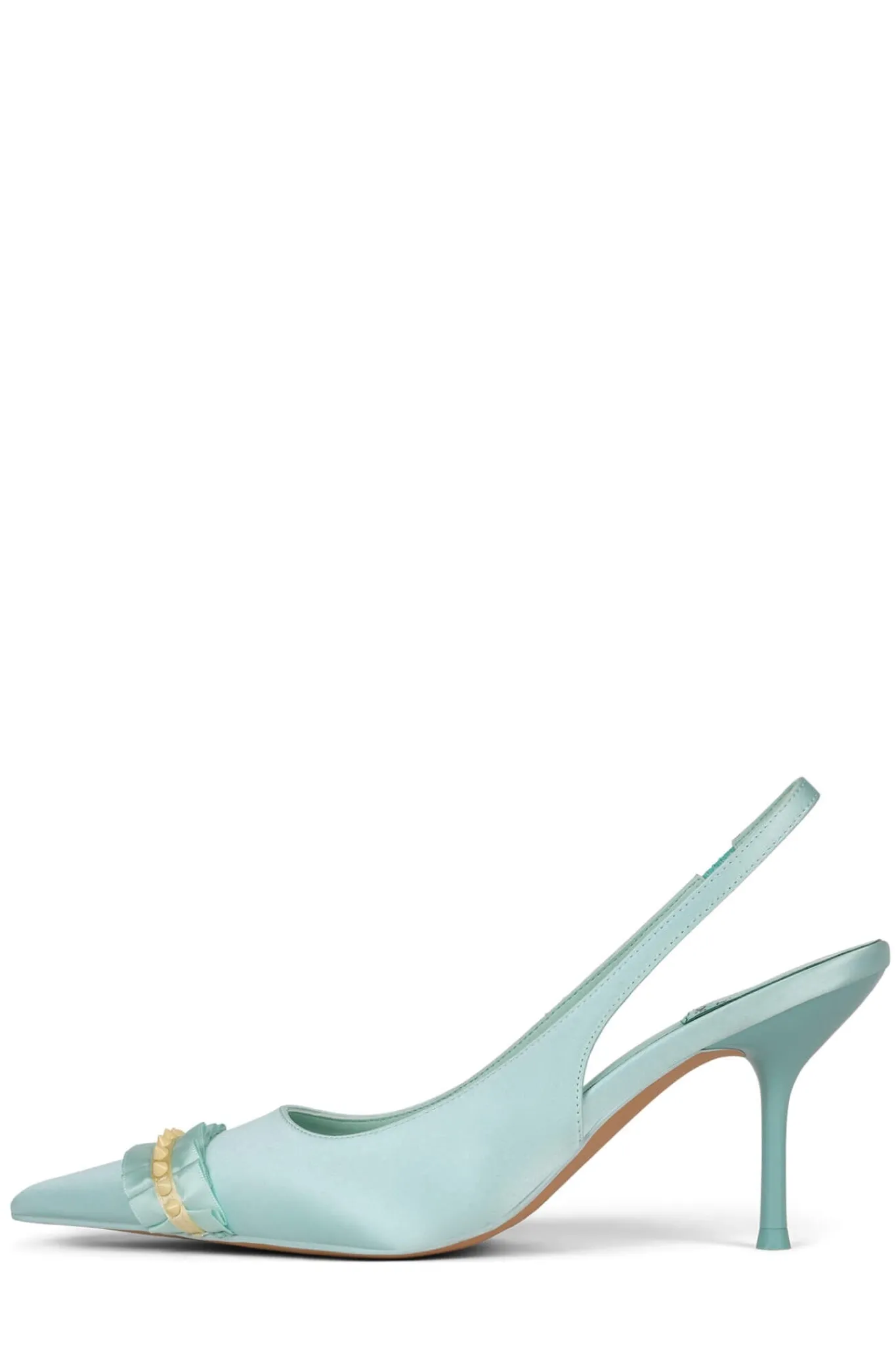 Pointed-toe slingback pump with ruffle and spike detail Fits true to sizeMeasurements taken from a size 7 2.5″ heelFab…