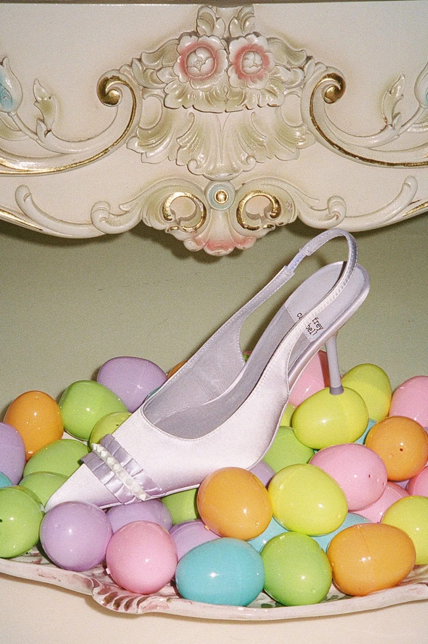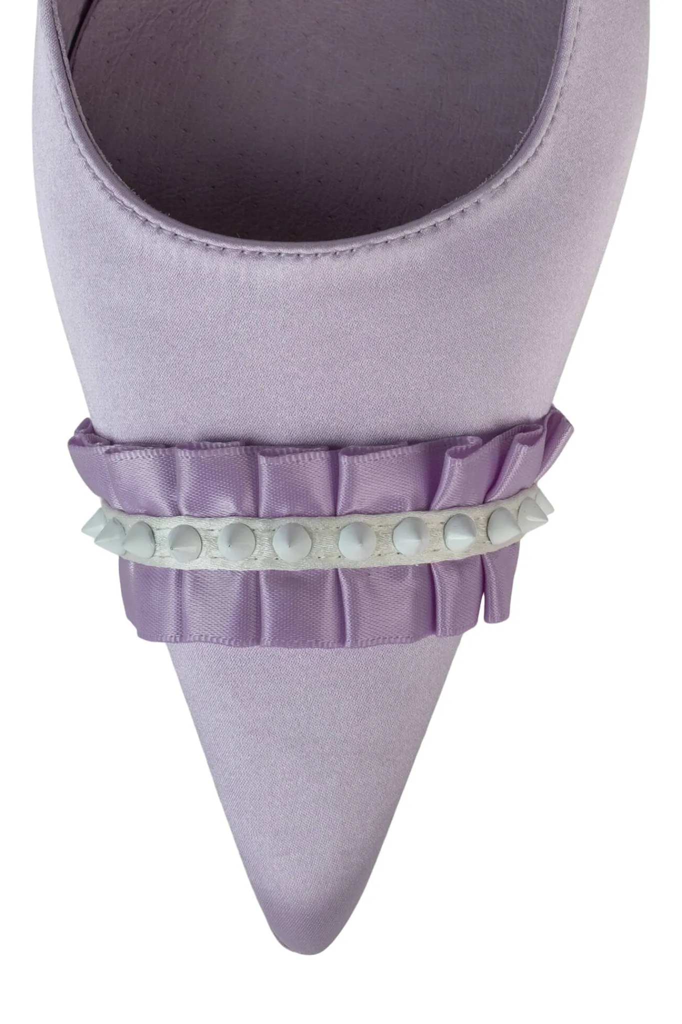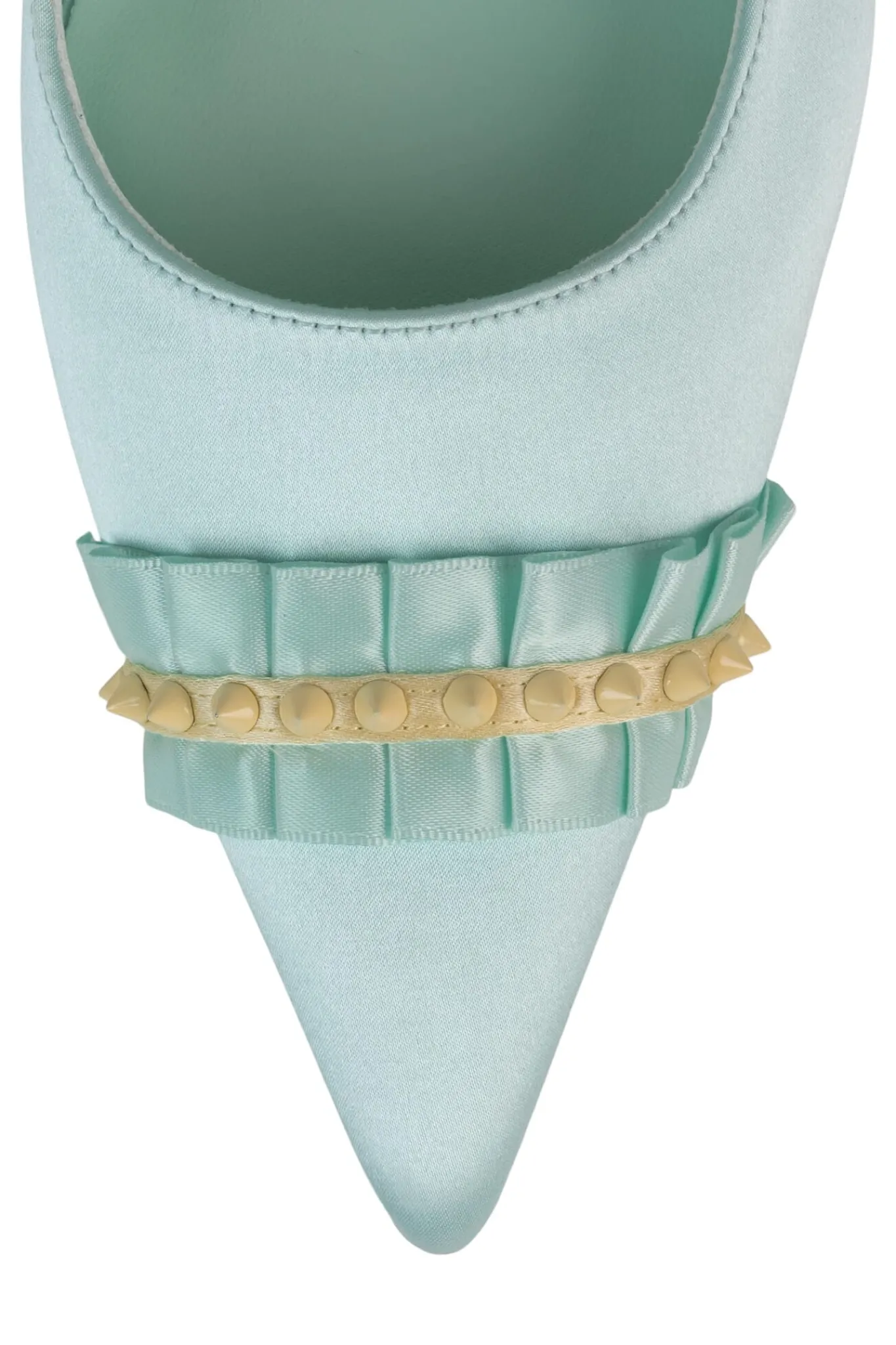 Pointed-toe slingback pump with ruffle and spike detail