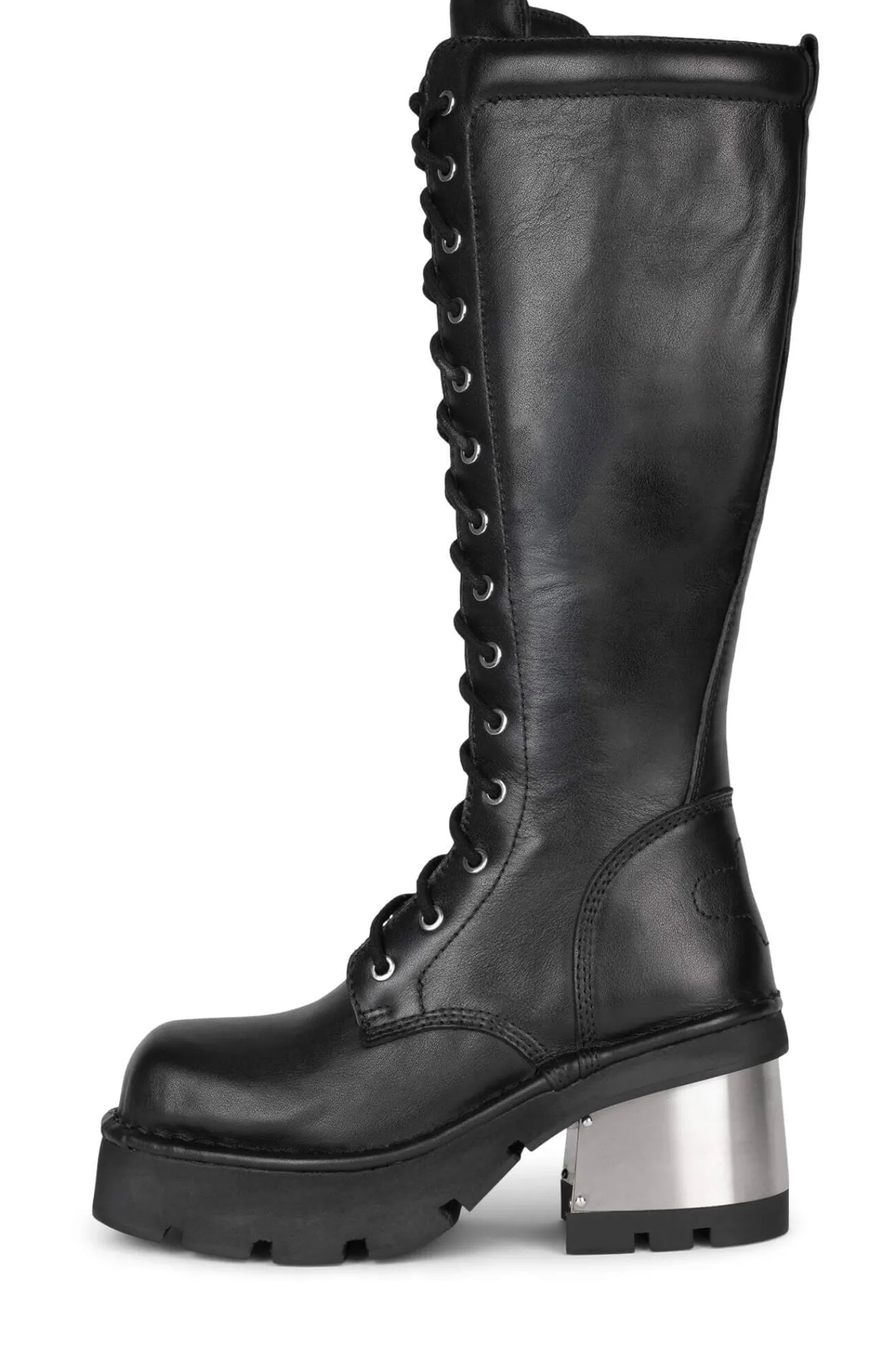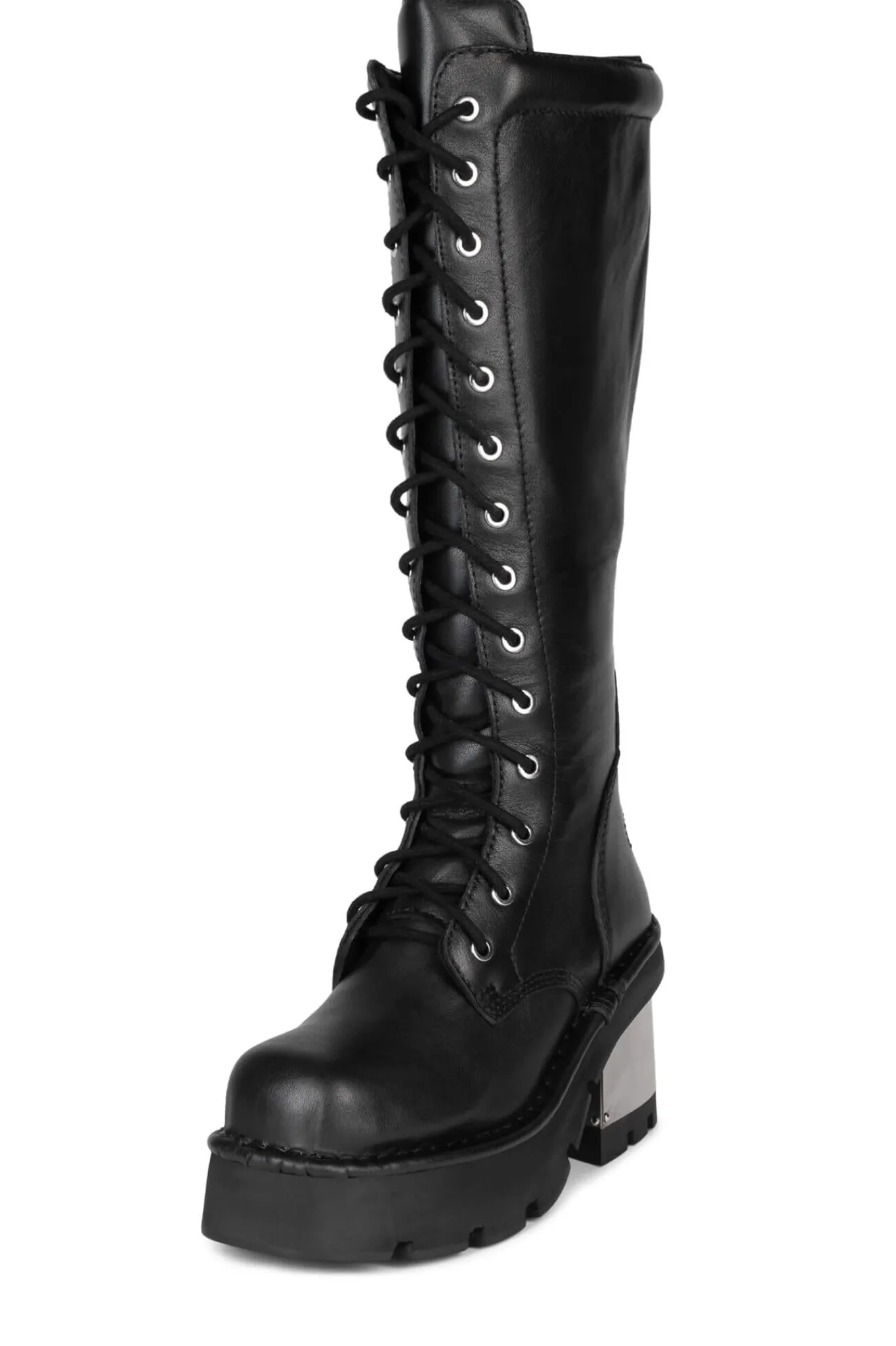 Knee-high lace-up boot with capped metal heel