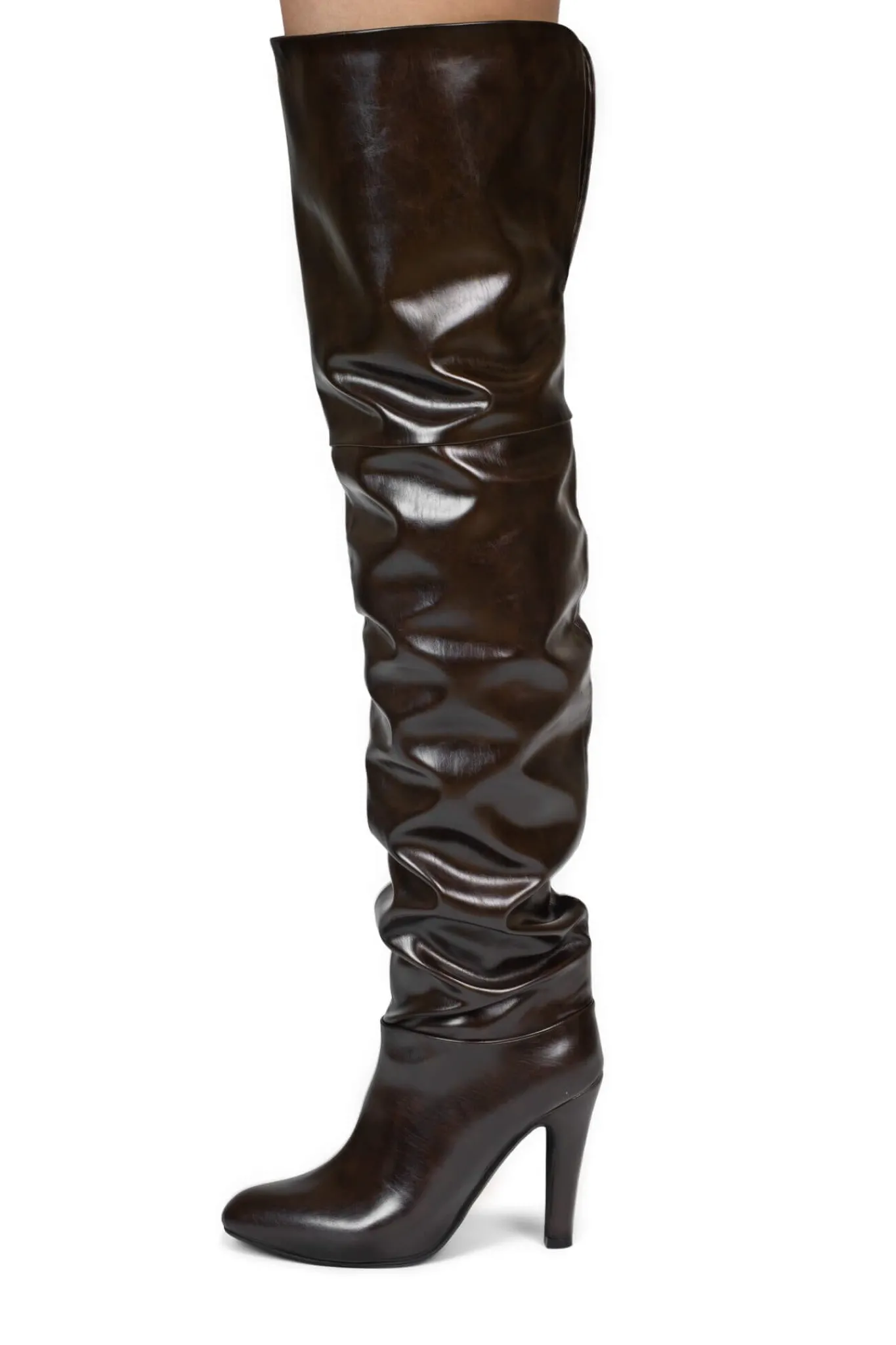 Almond-toe thigh-high heeled slouch boot