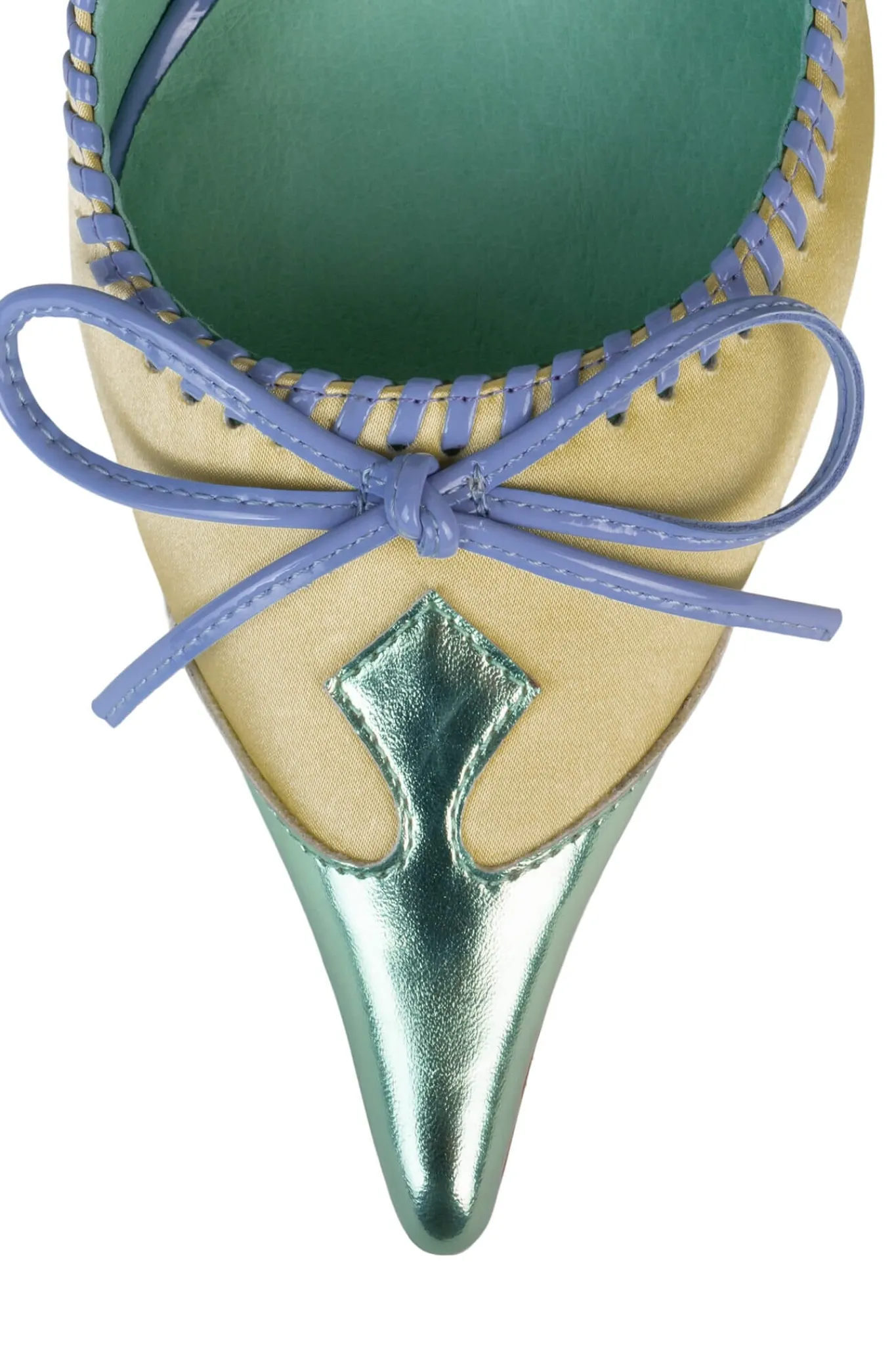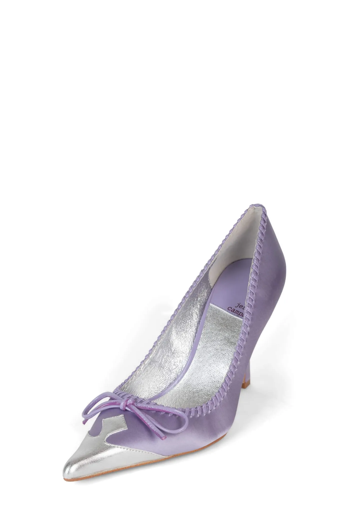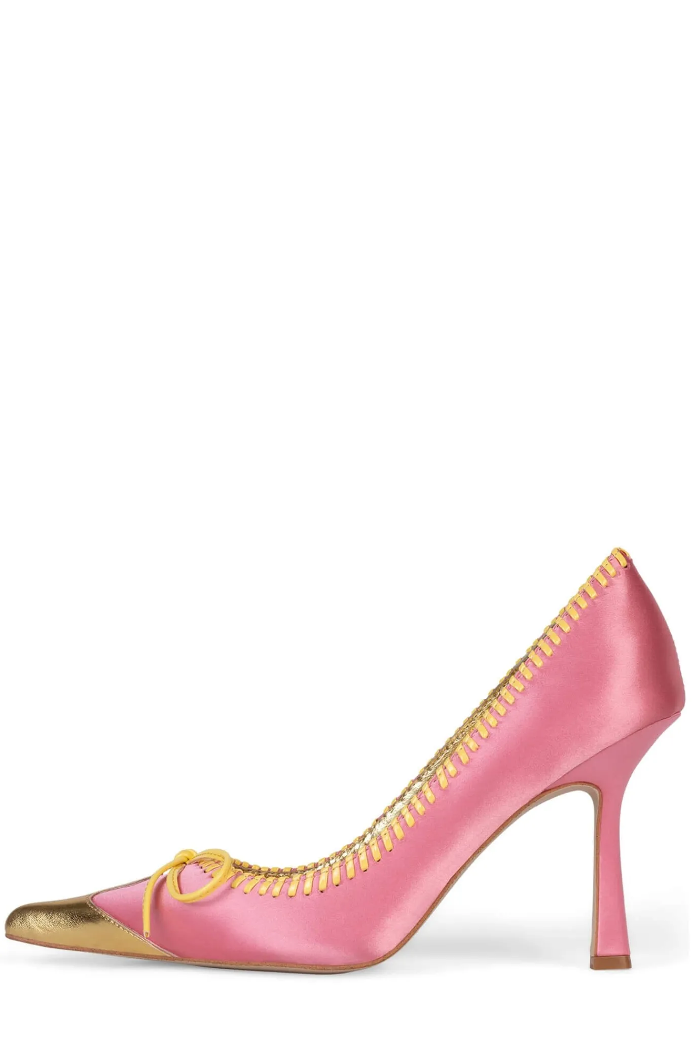 Pointed-toe pump with eyelet and bow detail