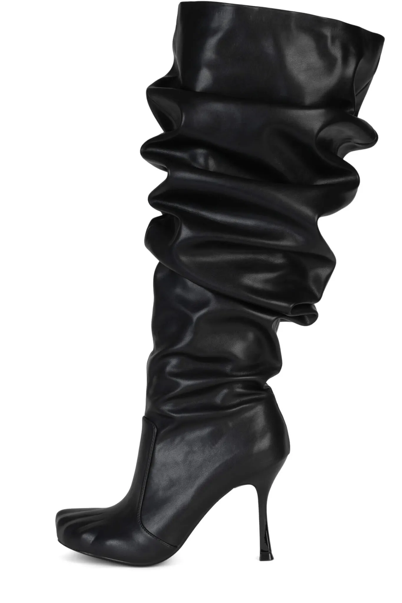 Over-the-knee slouched stiletto boot with embossed toes