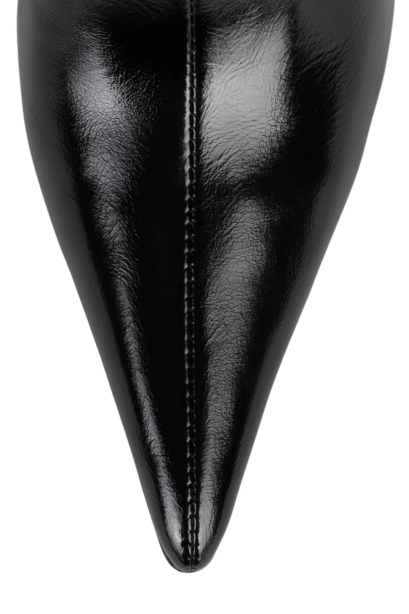 Pointed-toe knee-high stiletto boot with a wide shaft