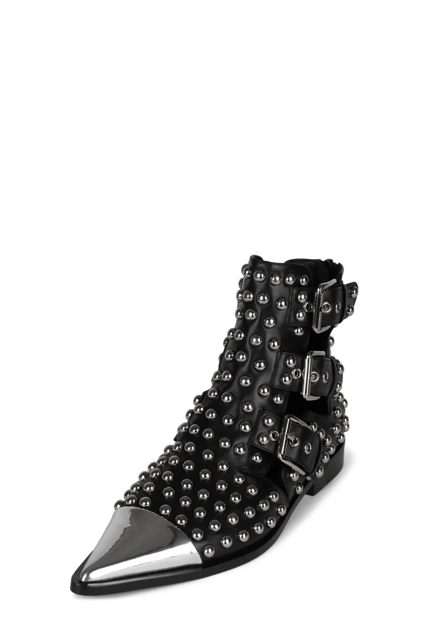 Metal-capped pointed-toe cut-out bootie with stud and buckle detail