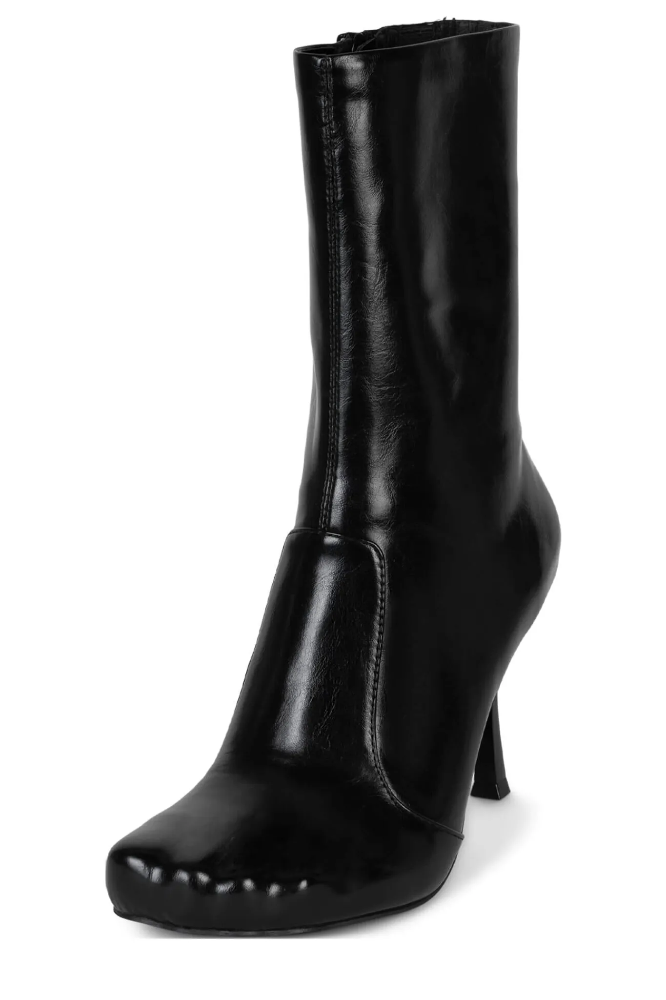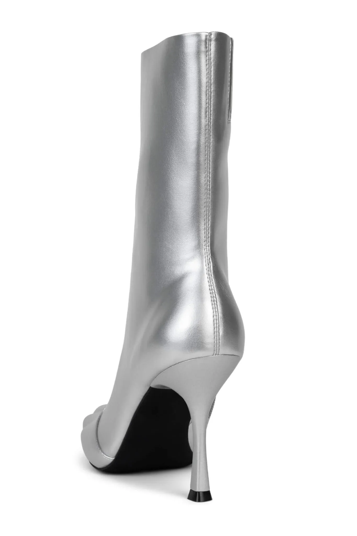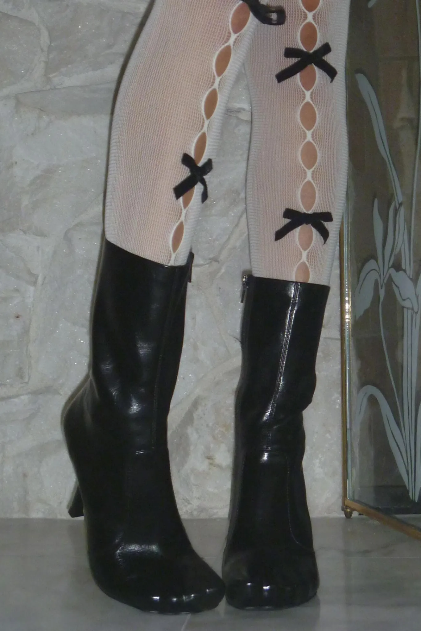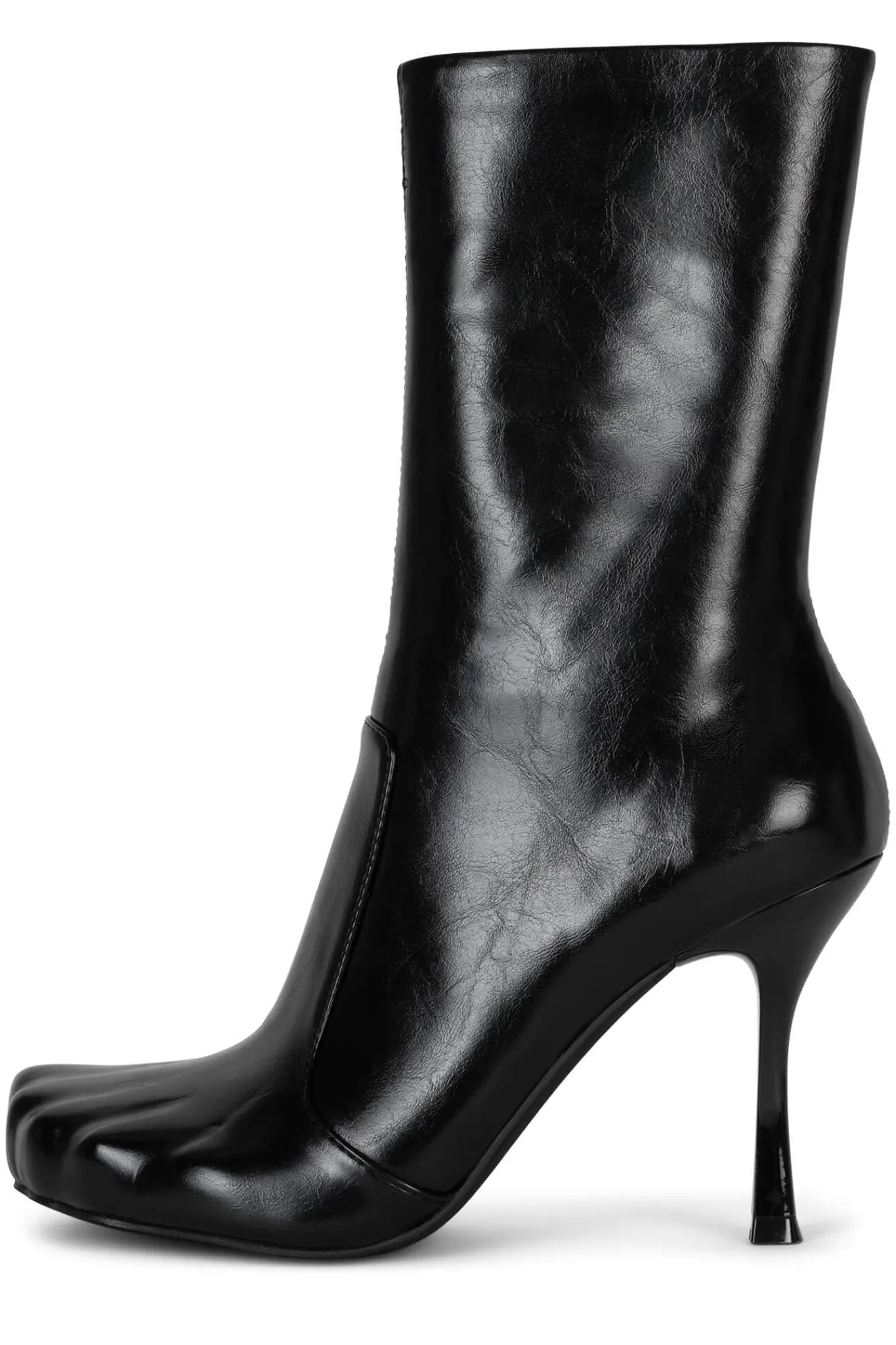 Mid-calf stiletto boot with embossed toesFits true to sizeMeasurements taken from a size 7 3.5″ Heel, 0.25″ Platform7.7…