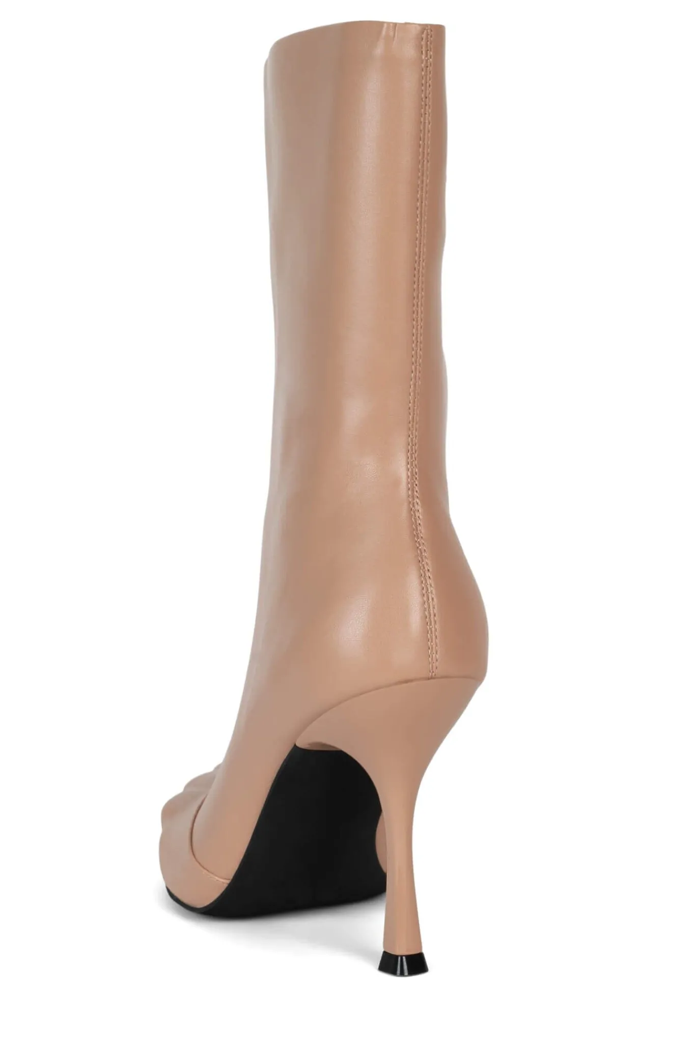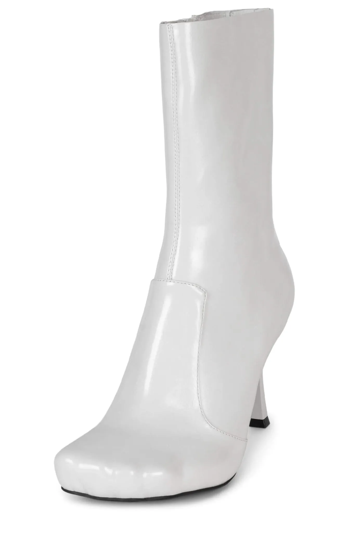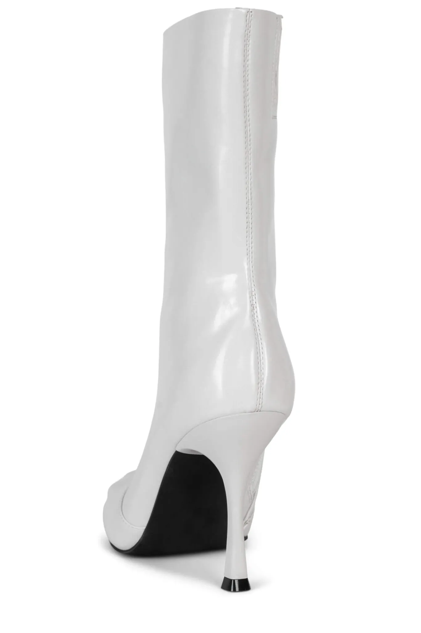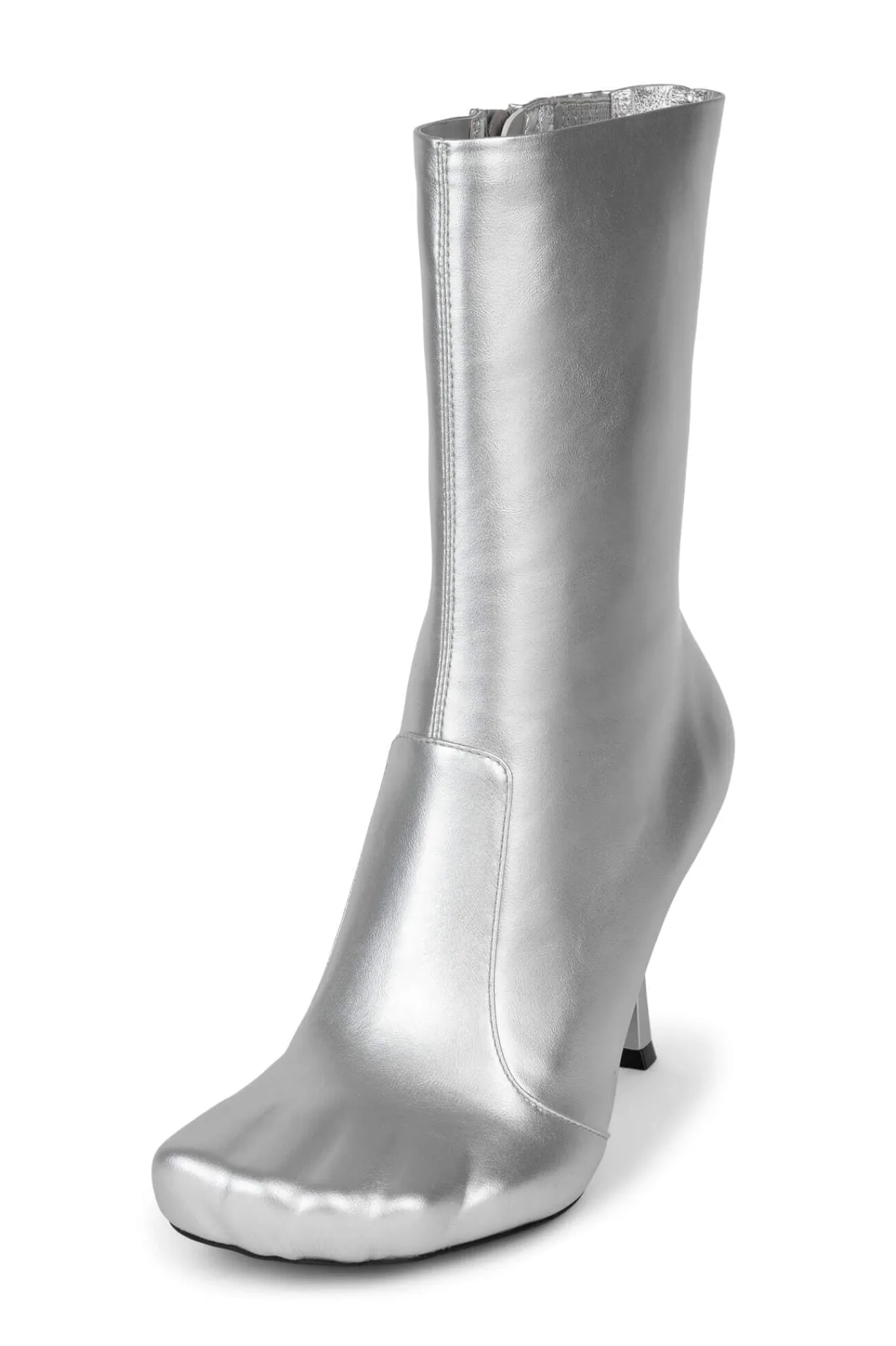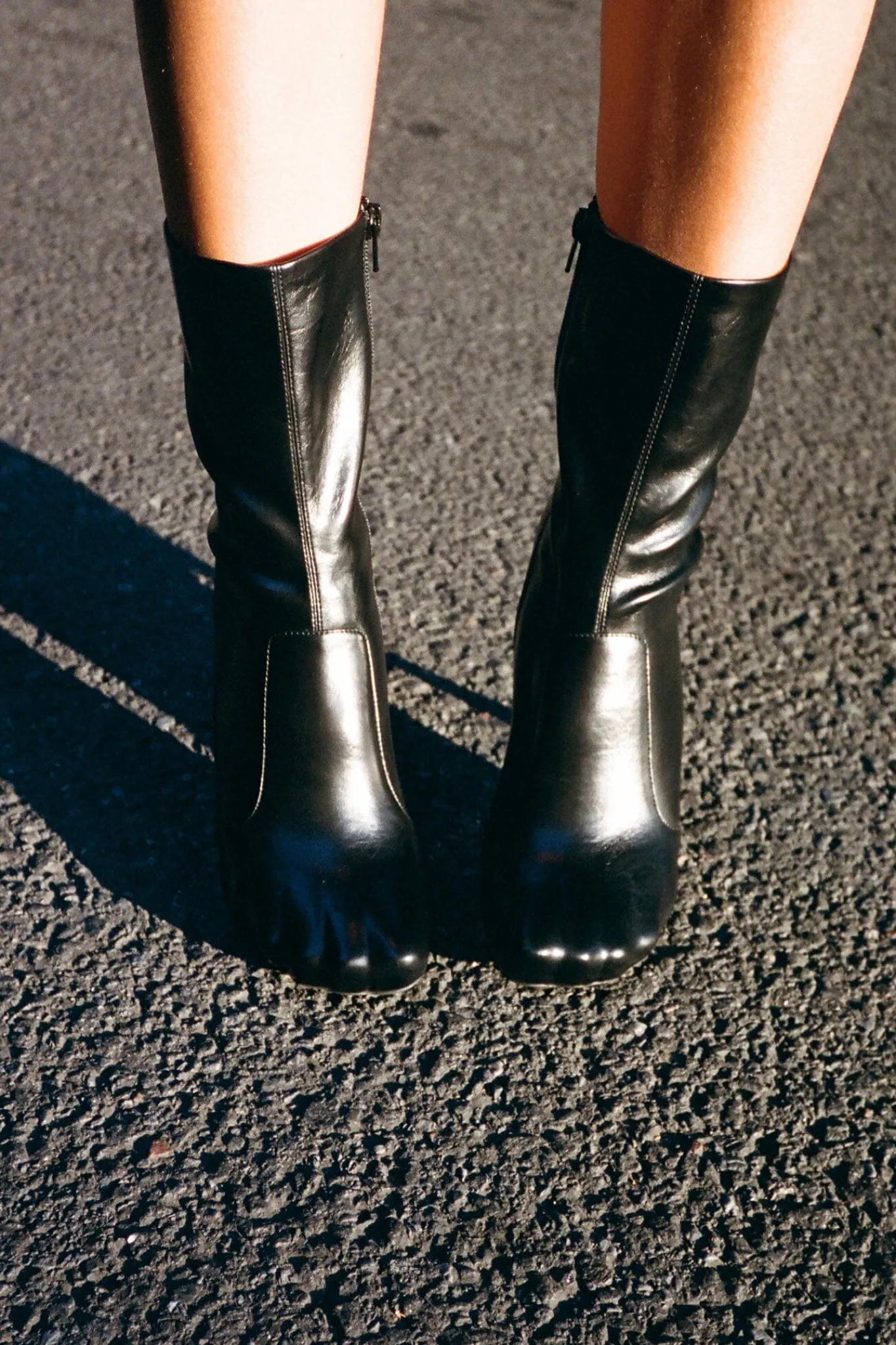 Mid-calf stiletto boot with embossed toesFits true to sizeMeasurements taken from a size 7 3.5″ Heel, 0.25″ Platform7.7…