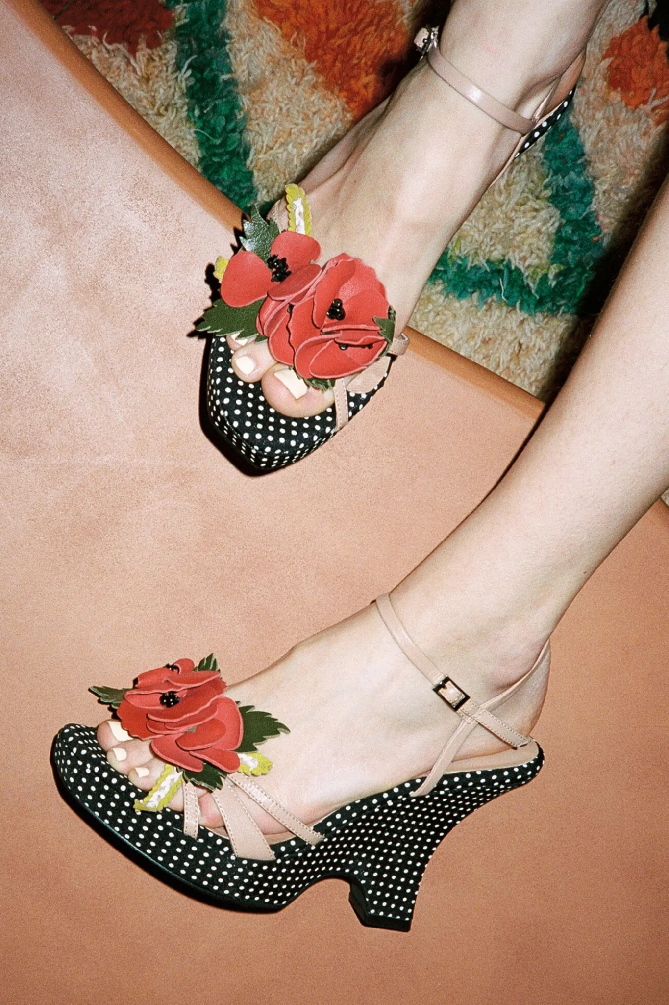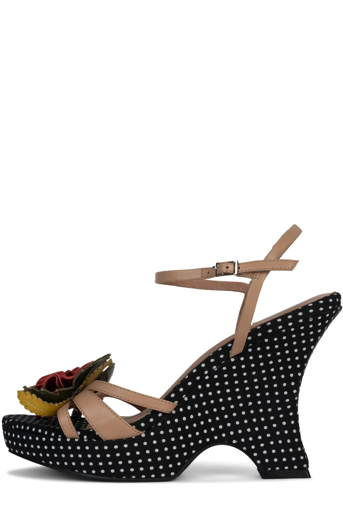 Sculpted wedge platform sandal with rose detail Fits true to sizeMeasurements taken from a size 7 4.25″ Heel, 1″ Platf…