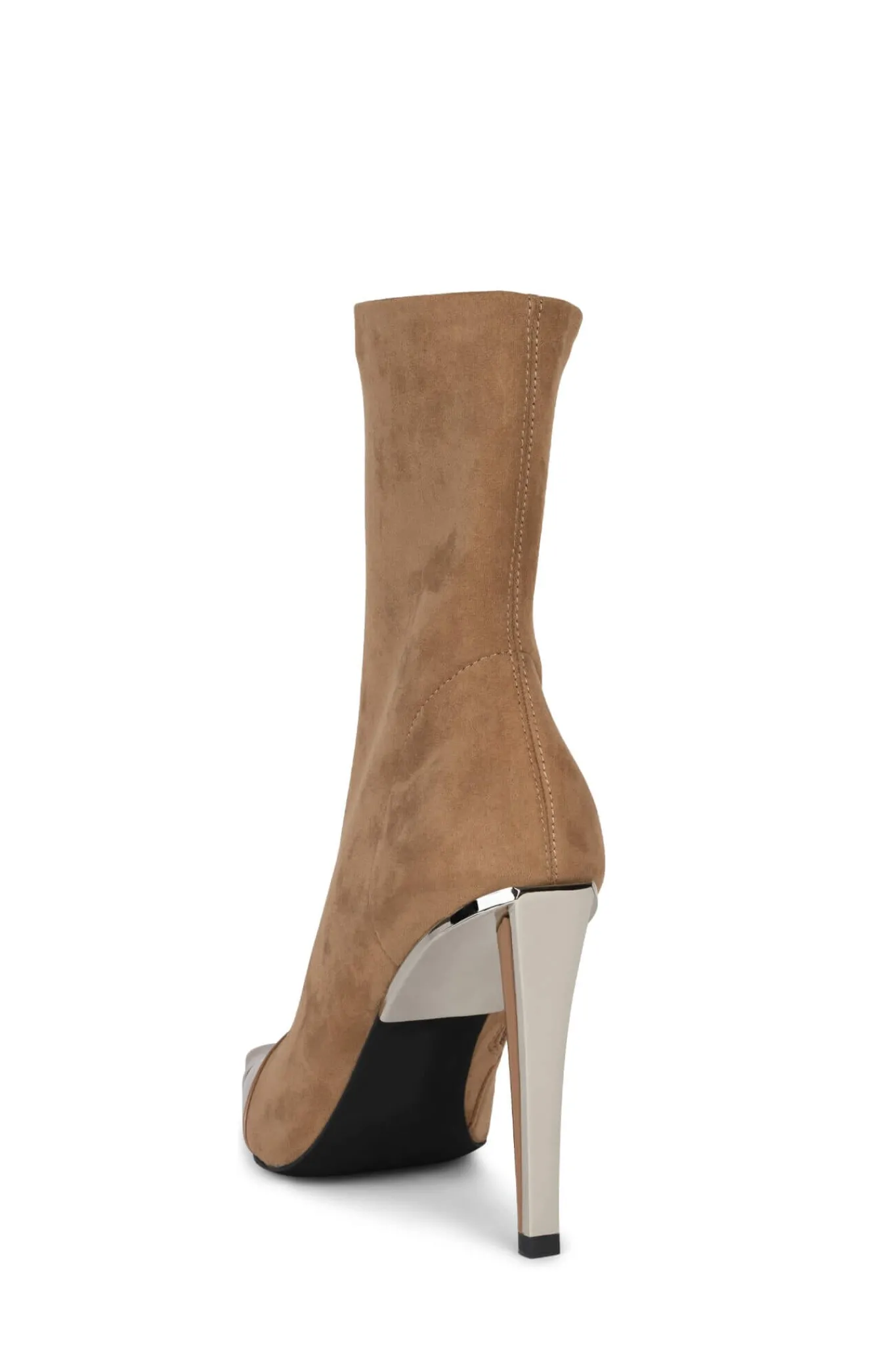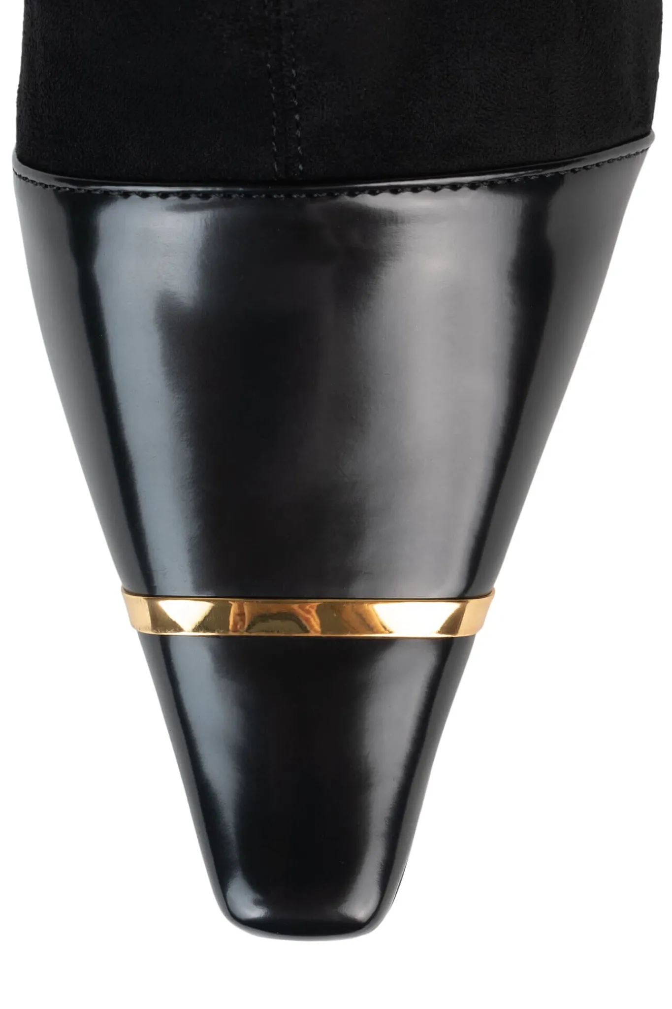 Mid-calf stiletto pointed-toe boot with metal contrast