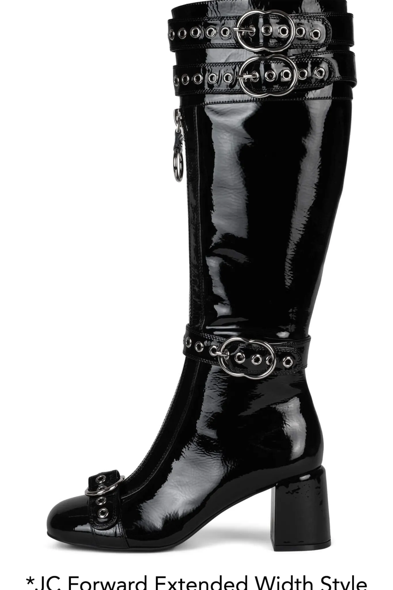 Block-heeled knee-high boot mod boot with buckle and zipper detail