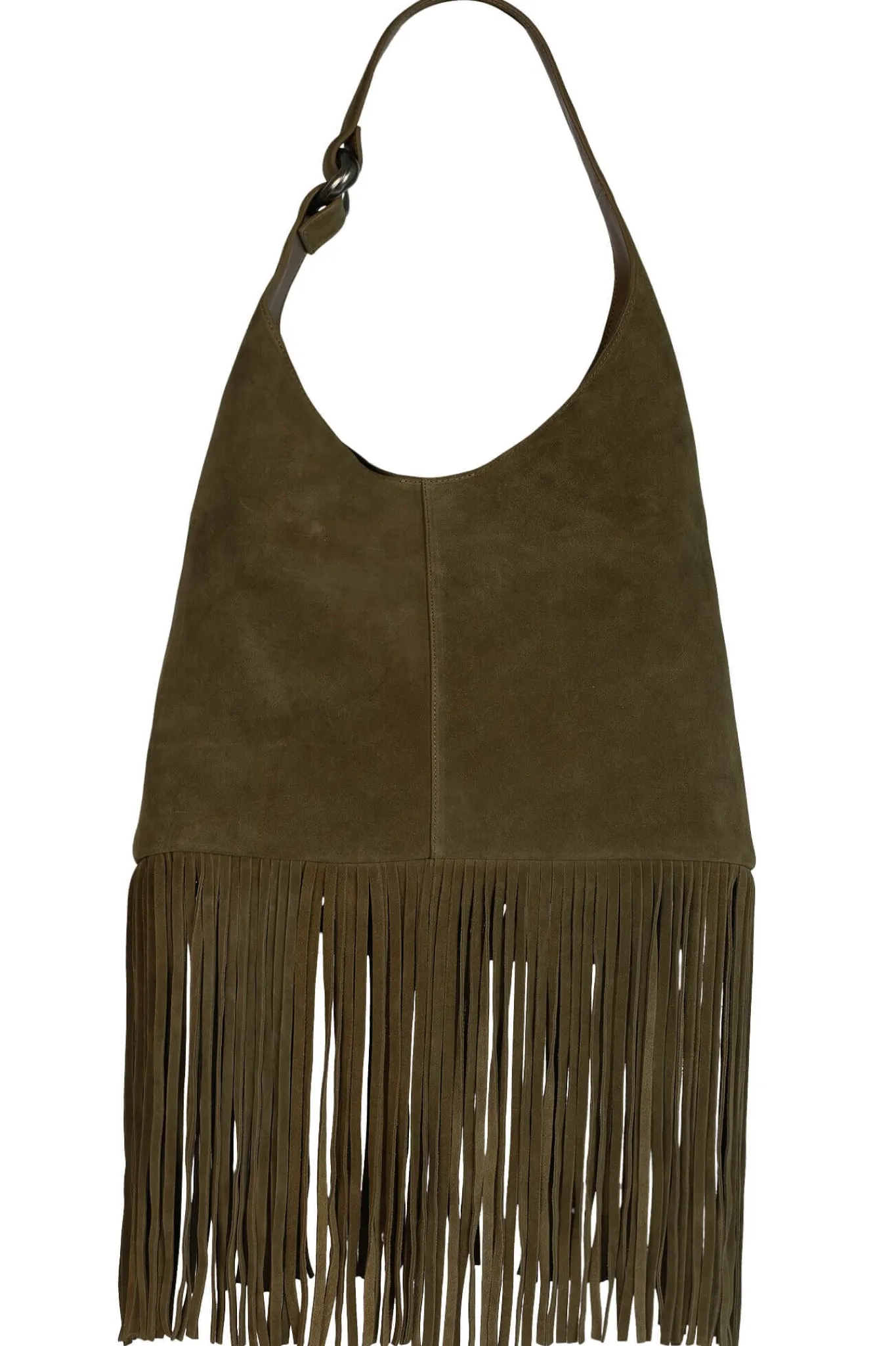 Fringe bucket bag with o-ring detail