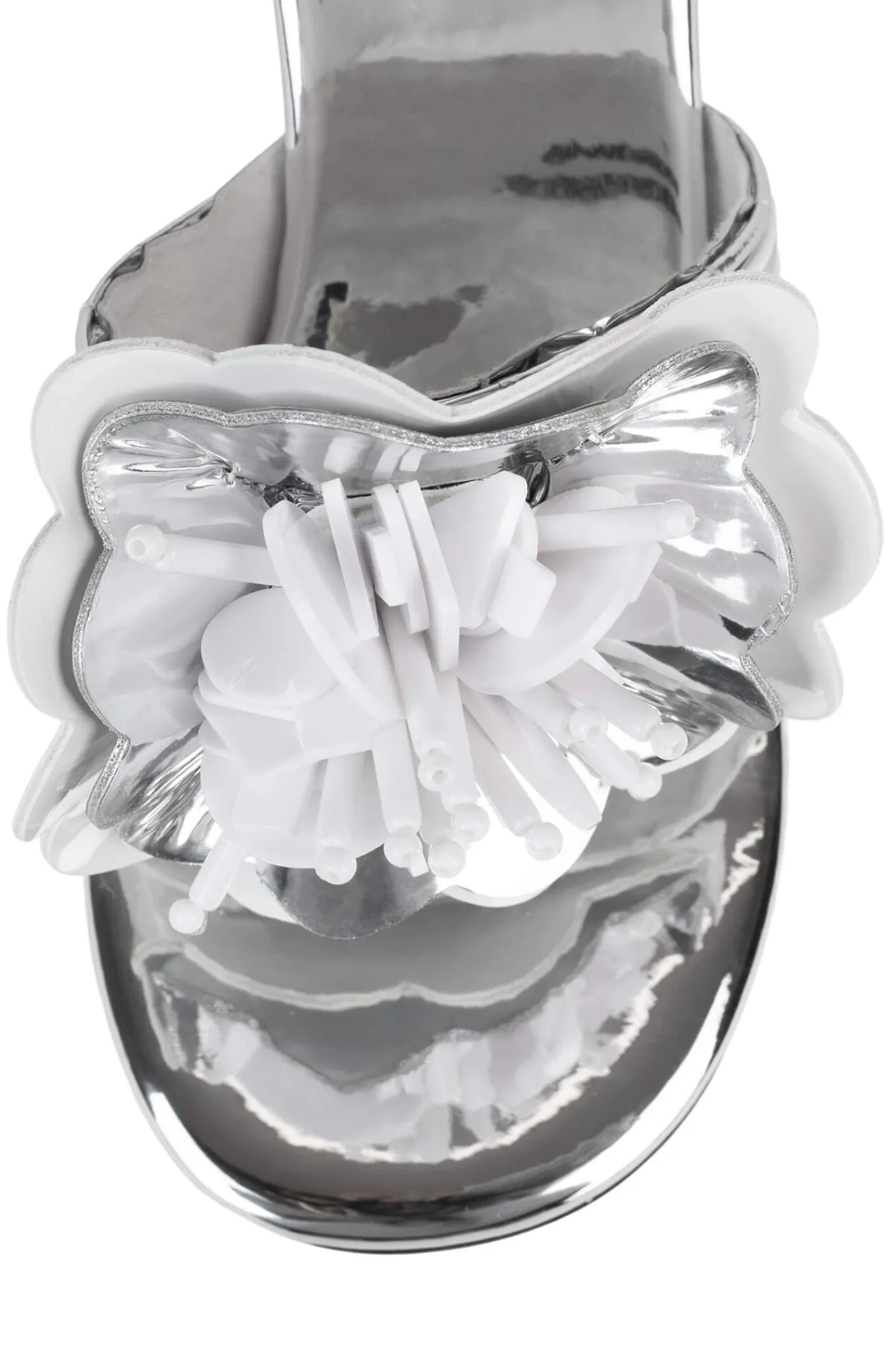 Heeled sandal with flower detail Fits true to sizeMeasurements taken from a size 7 3.5″ Heel, 0.25″ PlatformSynthetic …