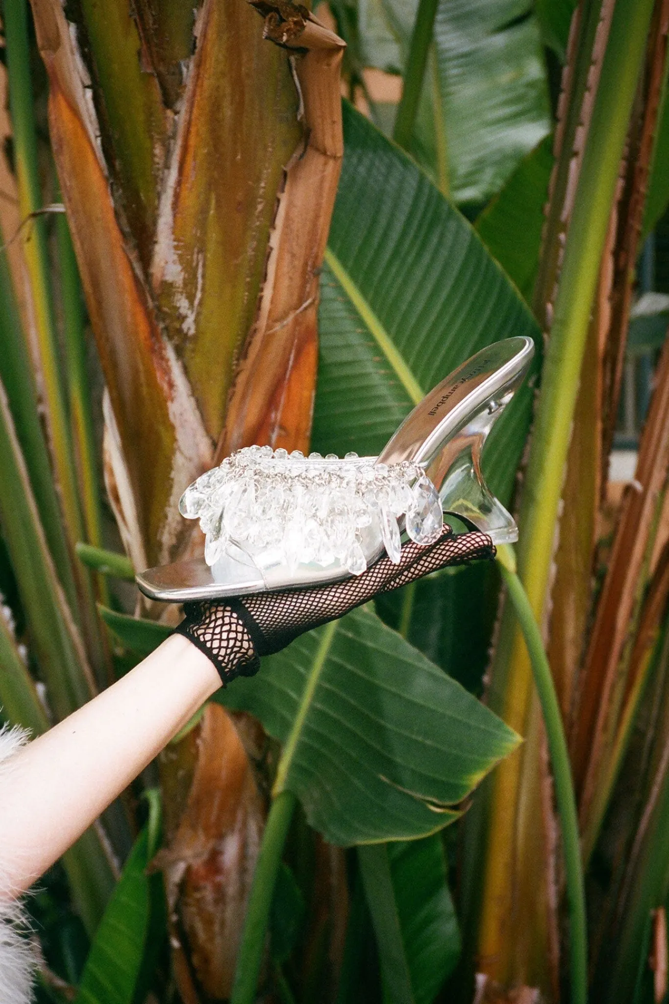 Sculpted lucite wedge with crystal beading