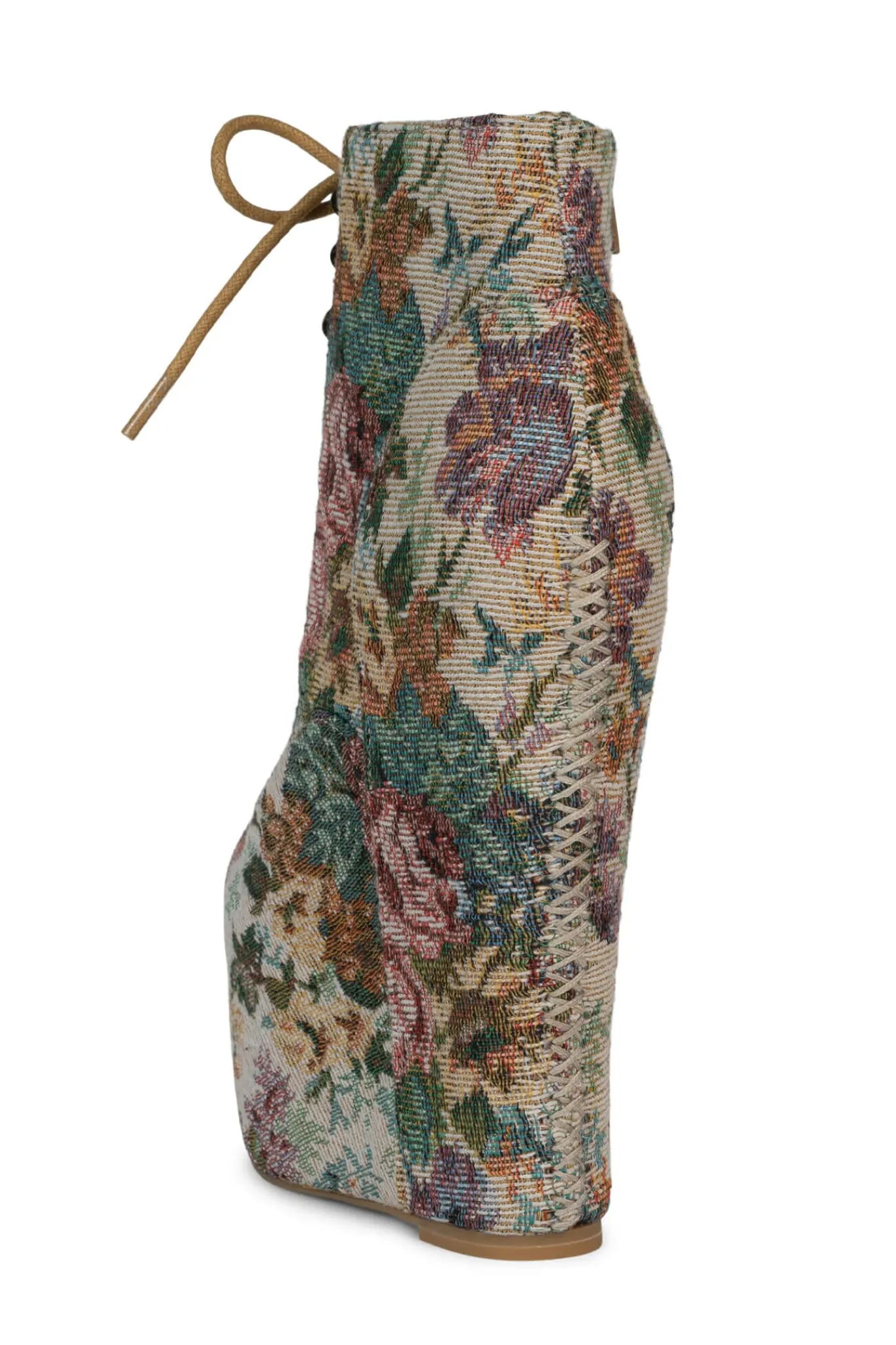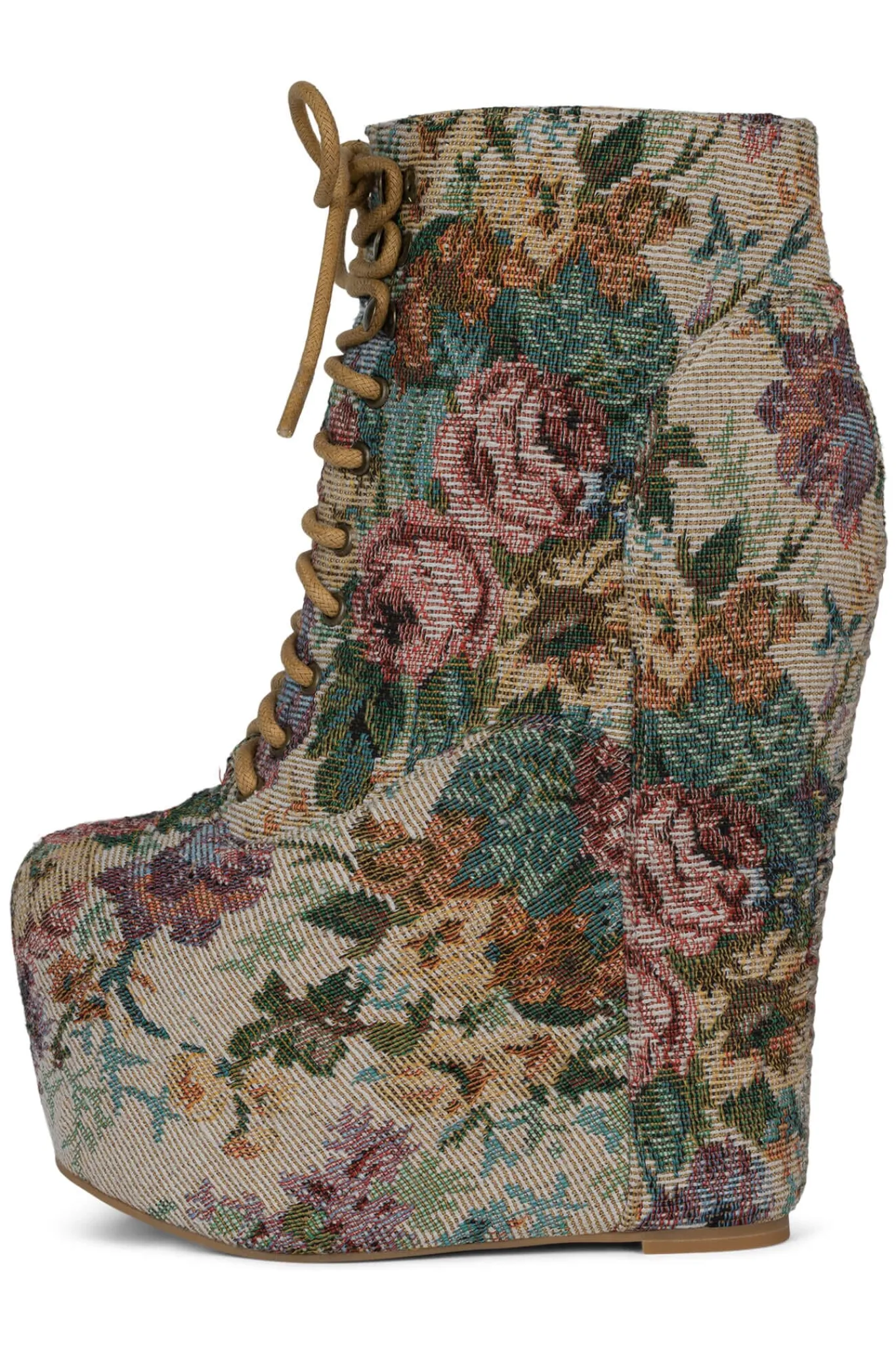 Platform tapestry wedge ankle boots