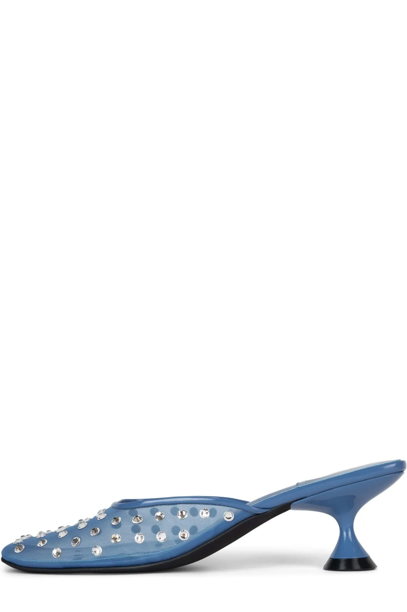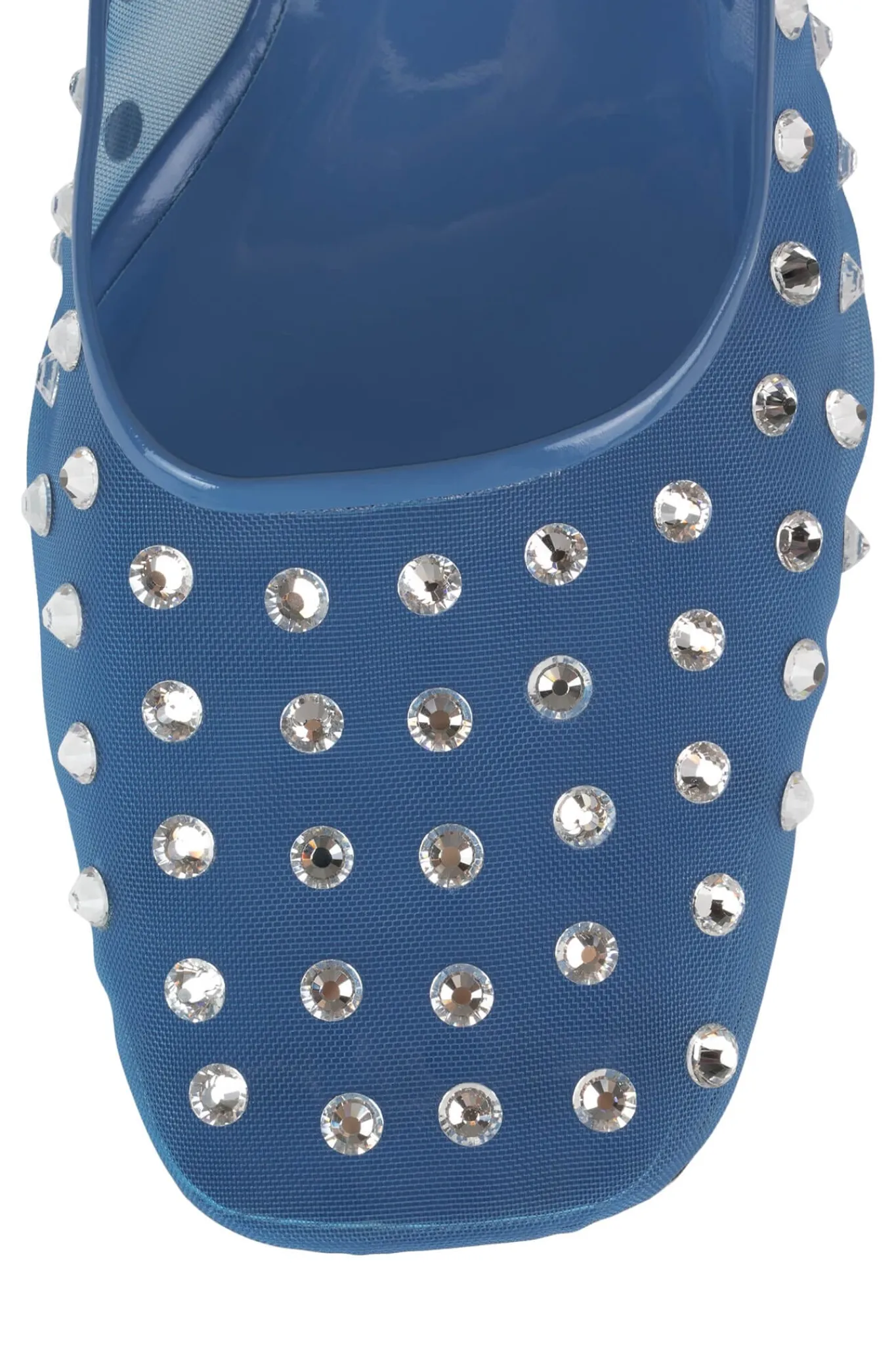 Square-toe, closed toe mesh mule with jewels.